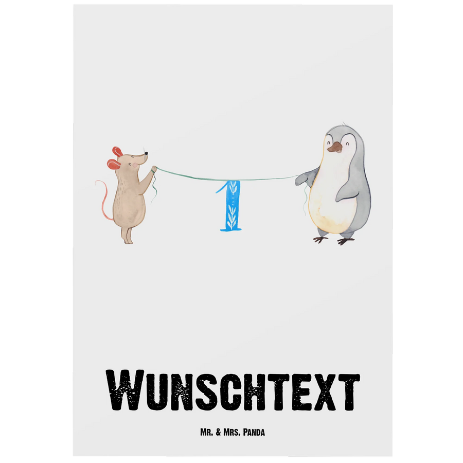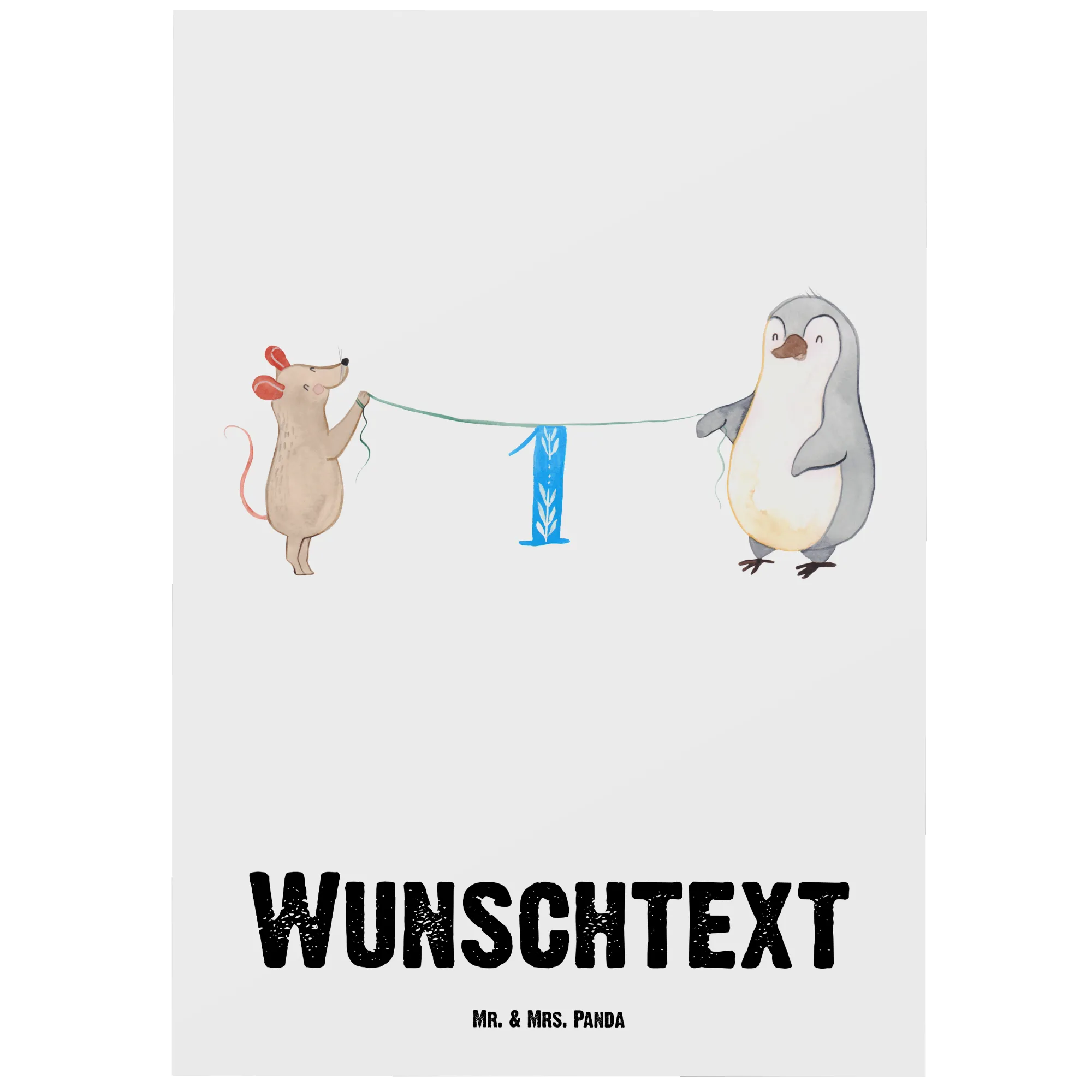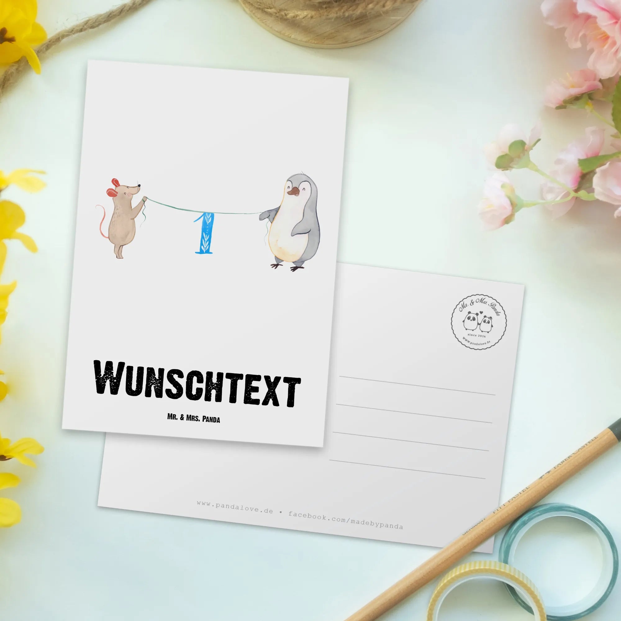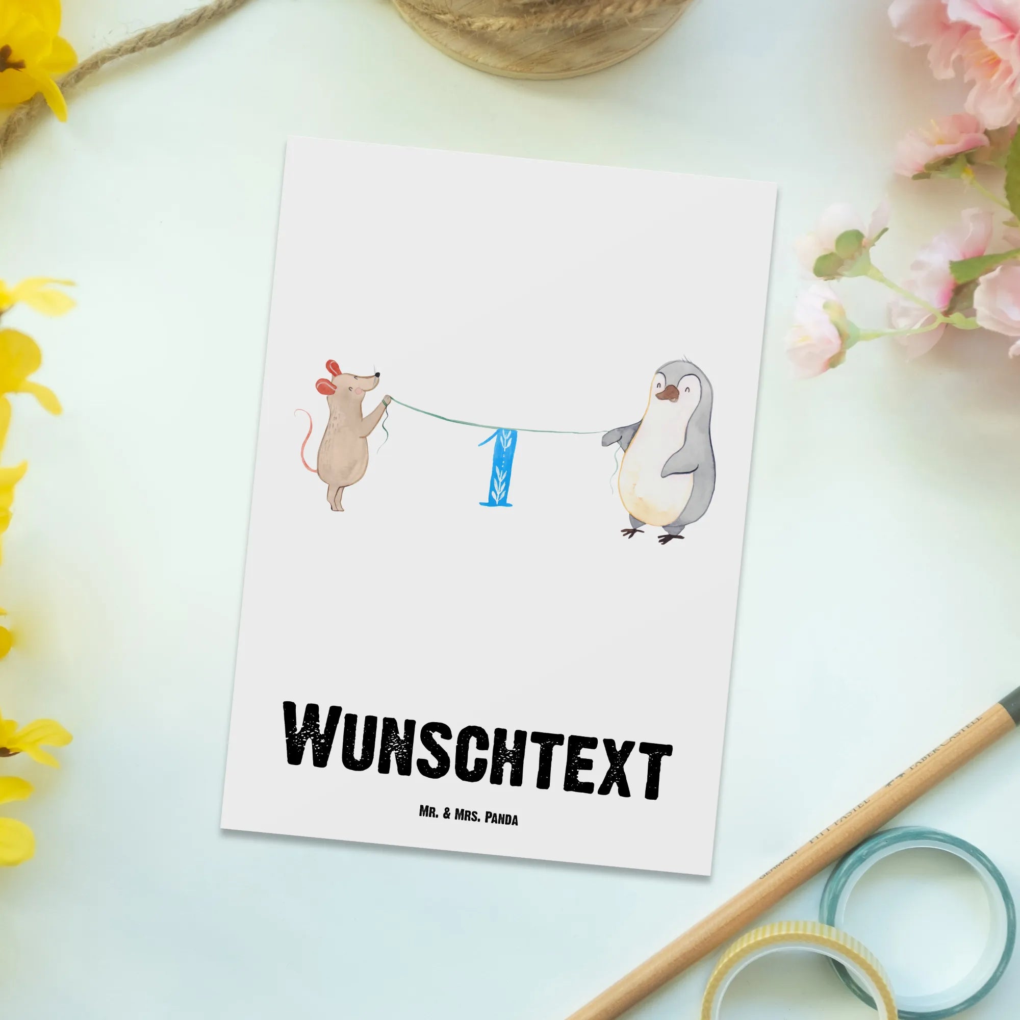 Personalizowana kartka pocztowa Pierwsze urodziny Mysz Pingwin Urodziny, prezent urodzinowy, prezent