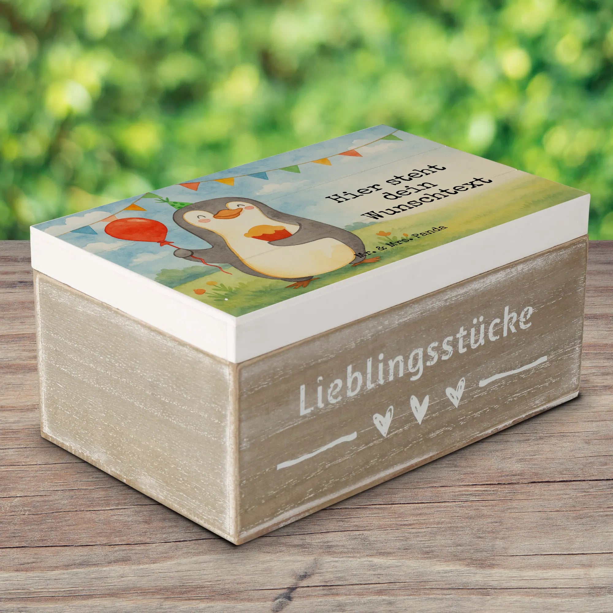 Personalizowane drewniane pudełko Pingwin Urodziny Design - 22 x 15 cm