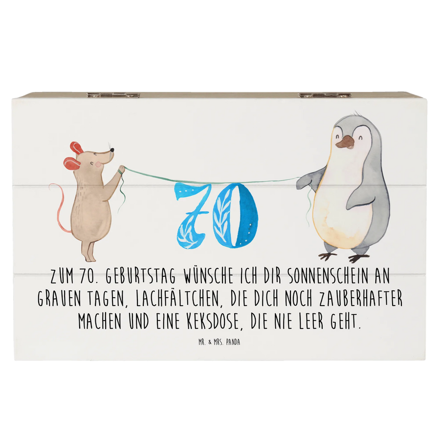 Skrzynia drewniana 70. urodziny Mysz Pingwin - 19 x 12 cm - z napisem