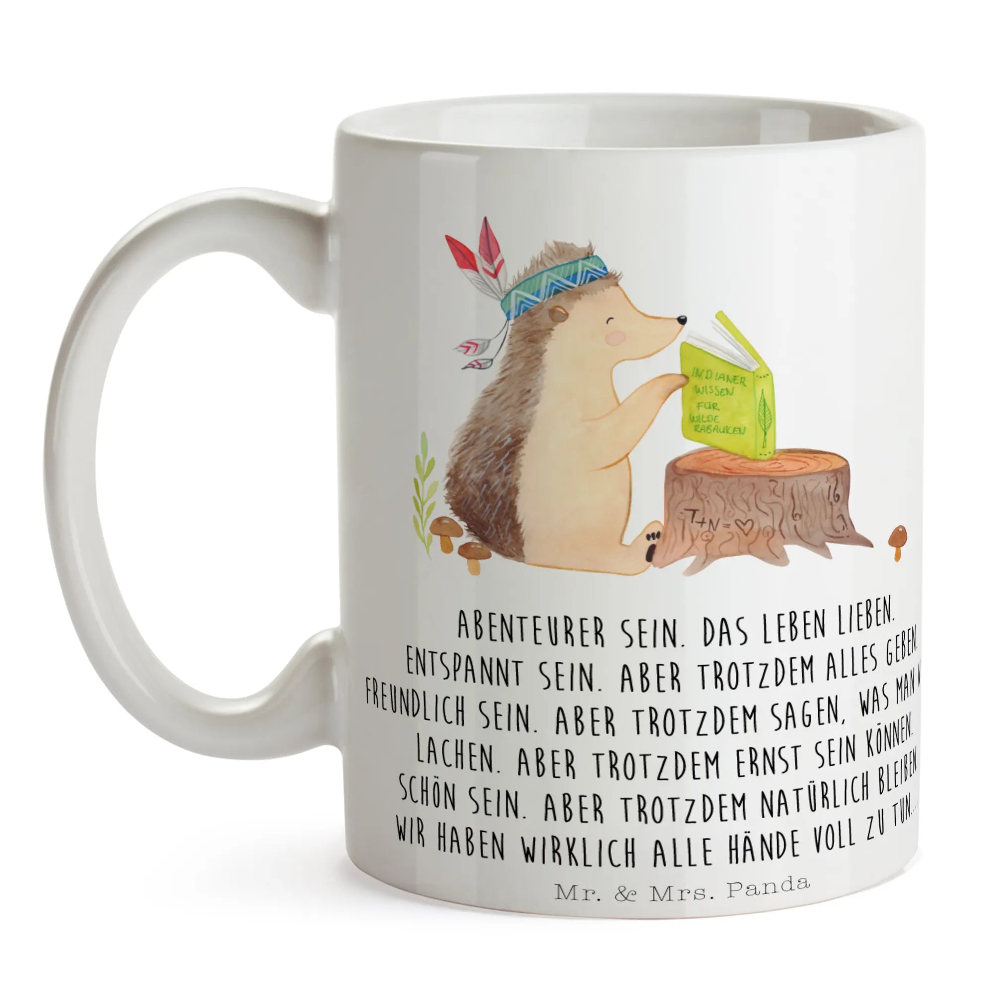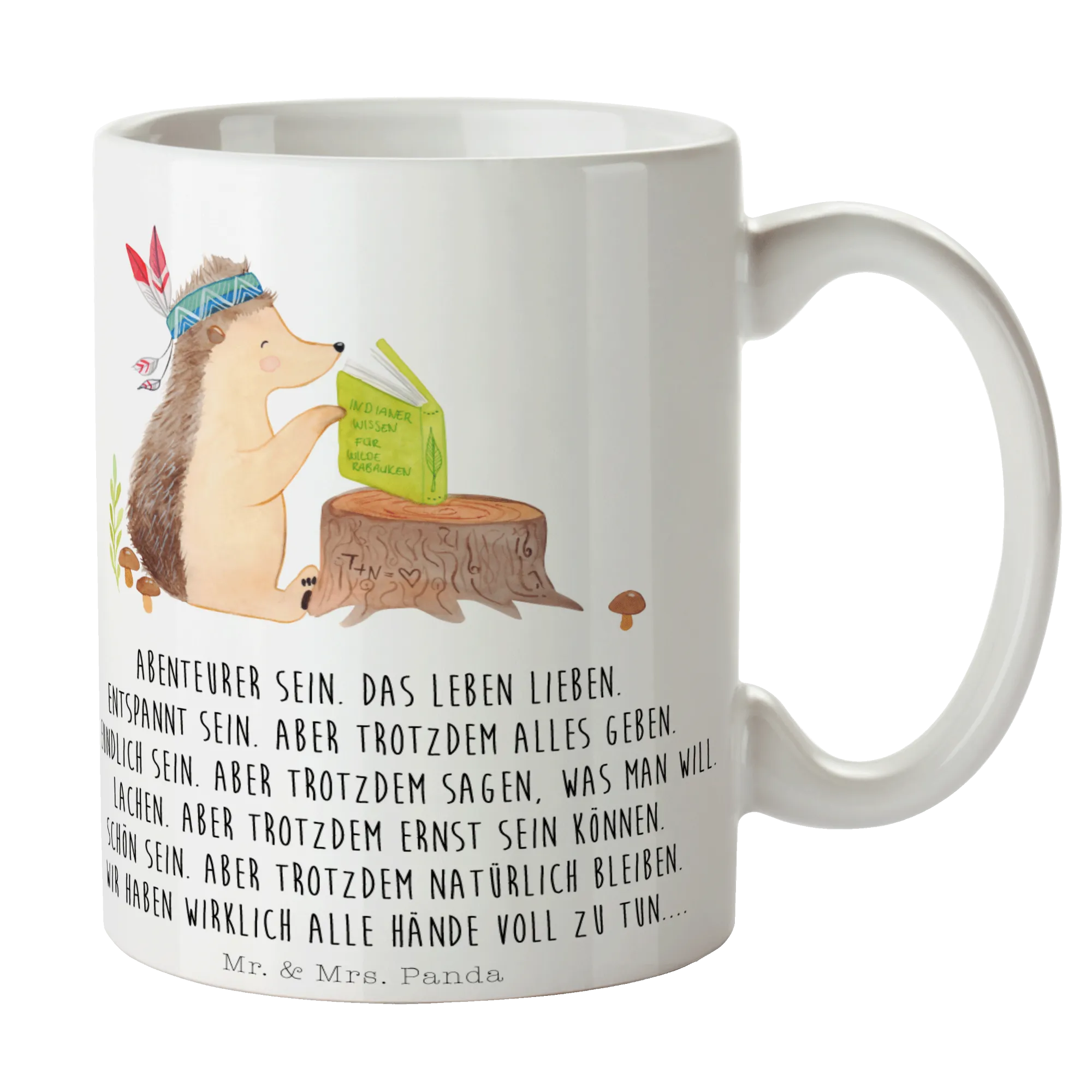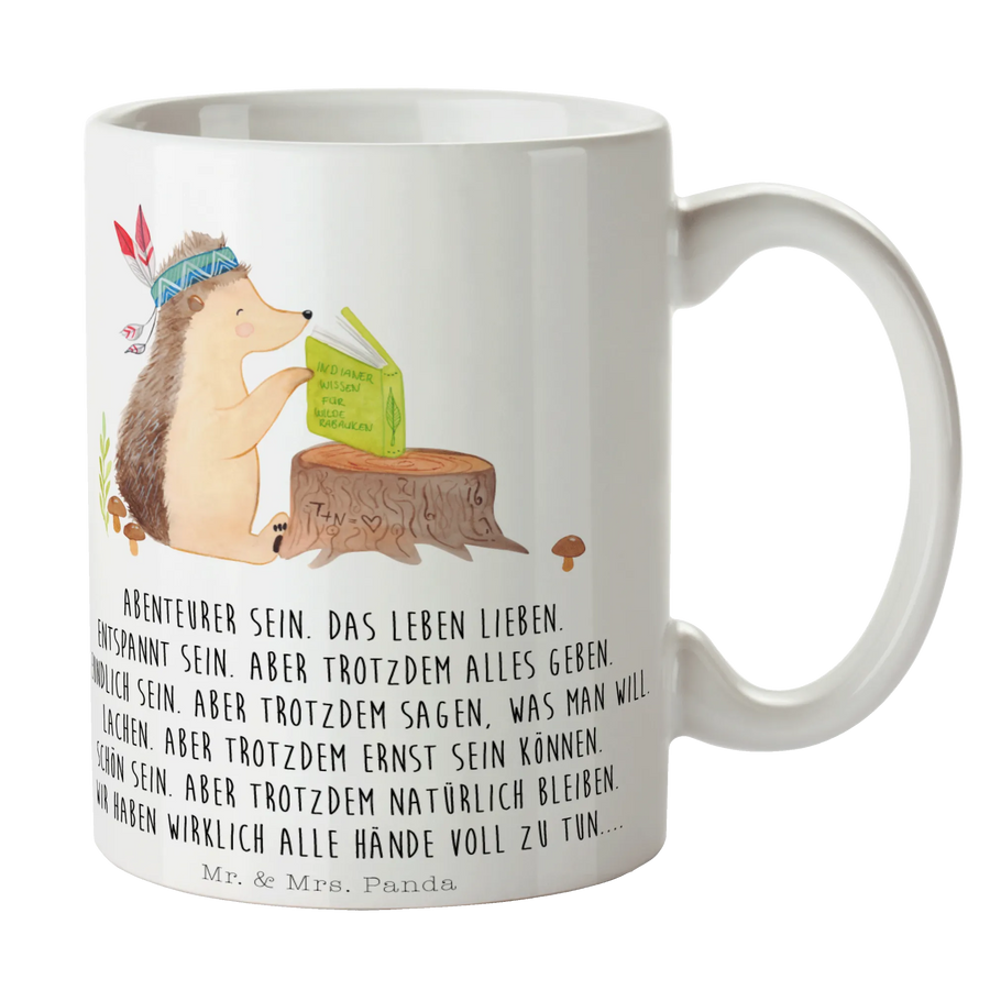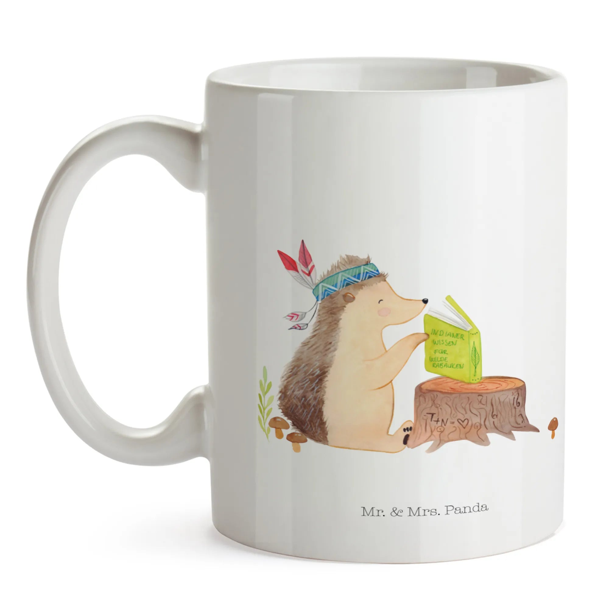 Kubek jeż Ozdoba z piór - z napisem - biały