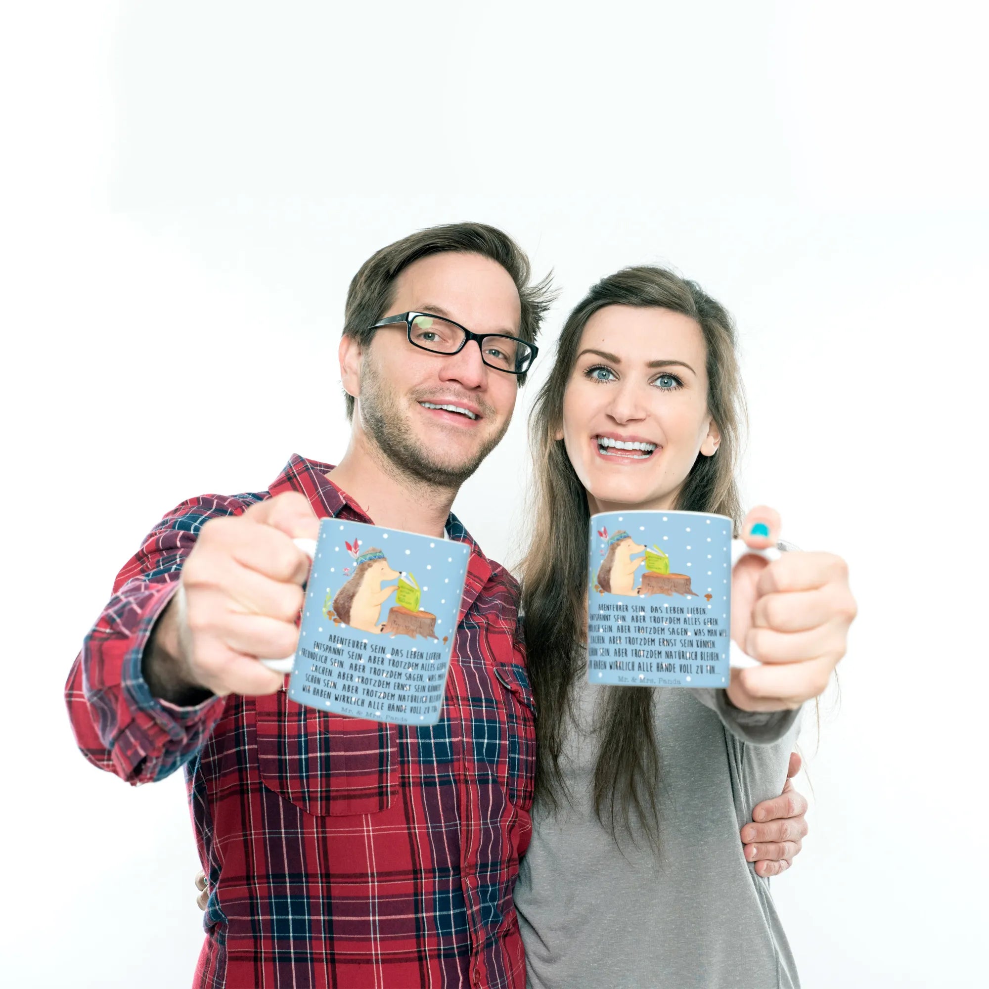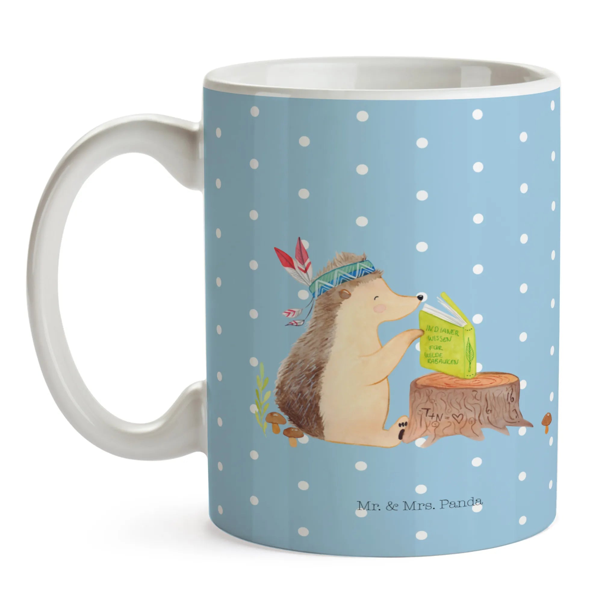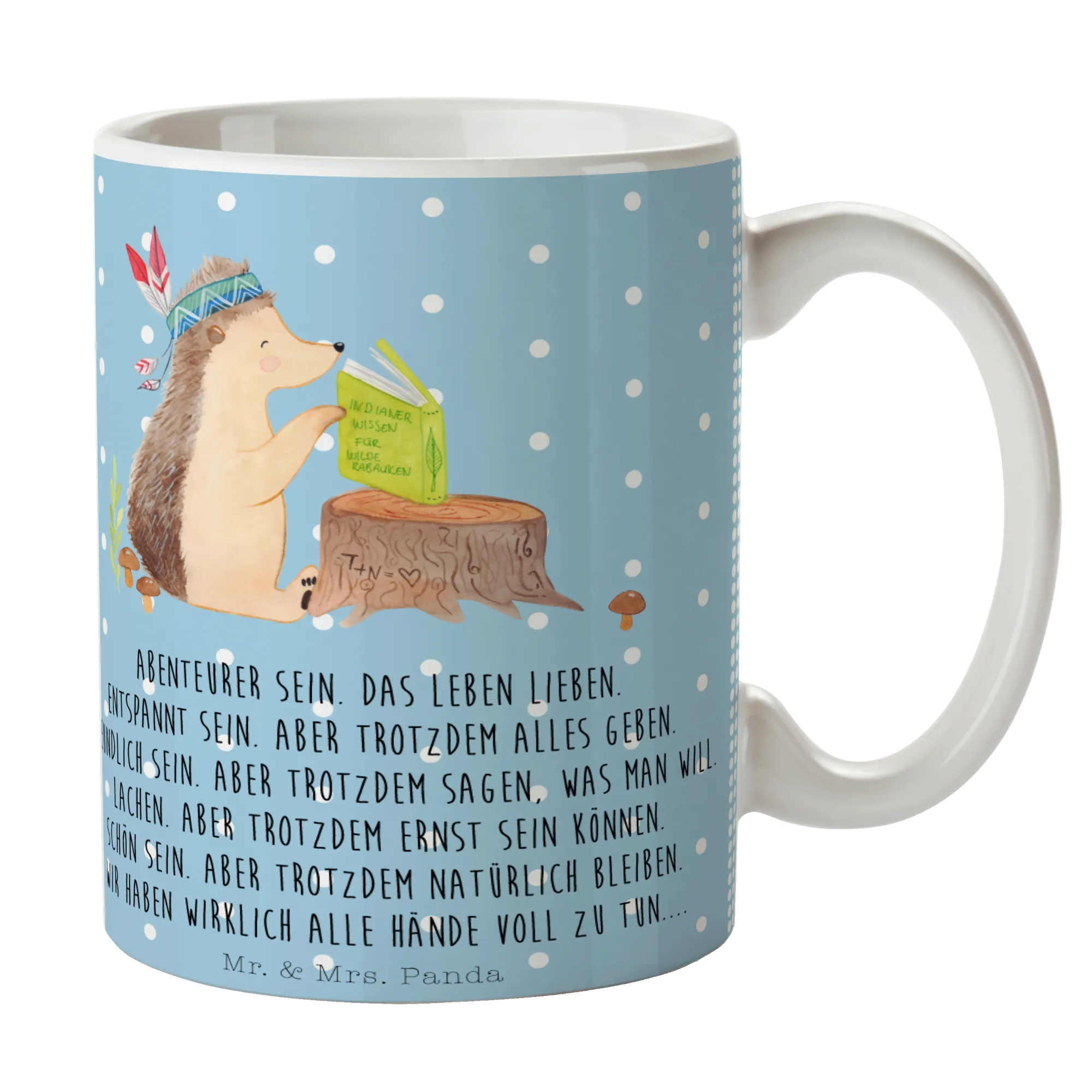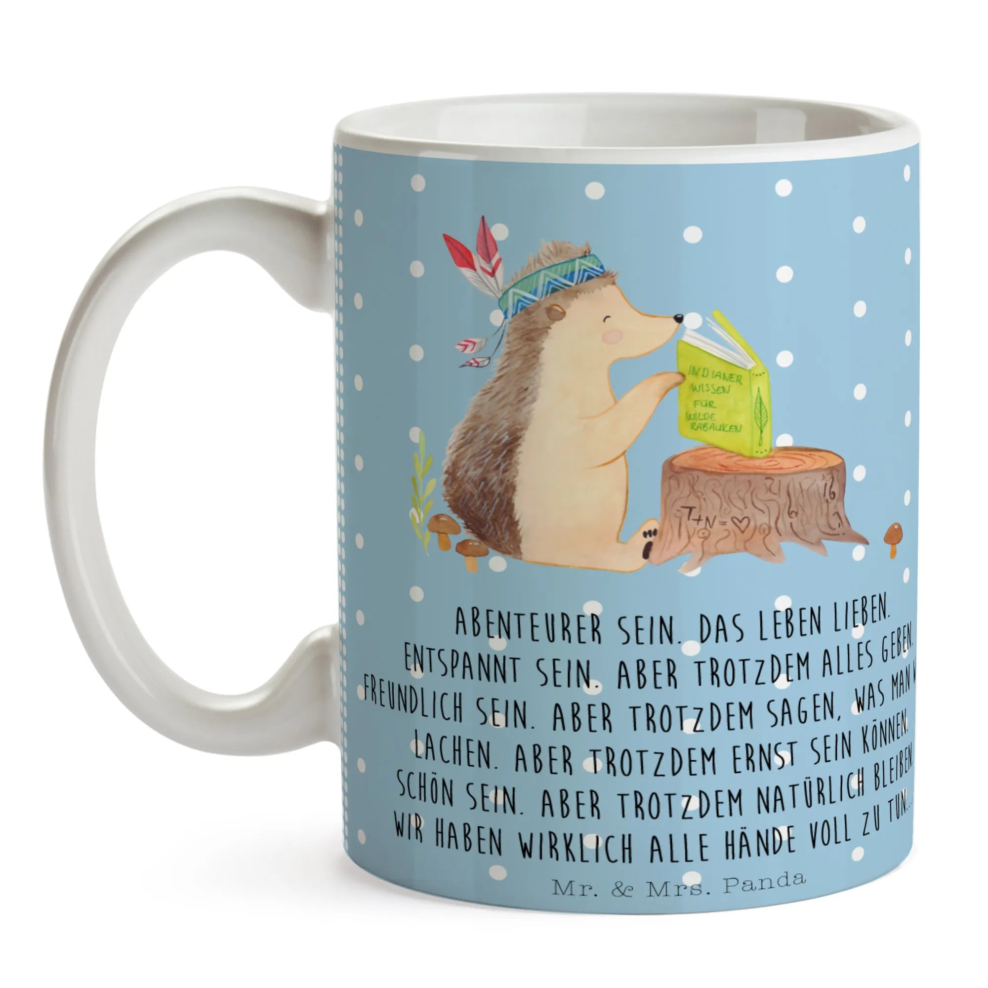 Kubek jeż Ozdoba z piór - z napisem - biały
