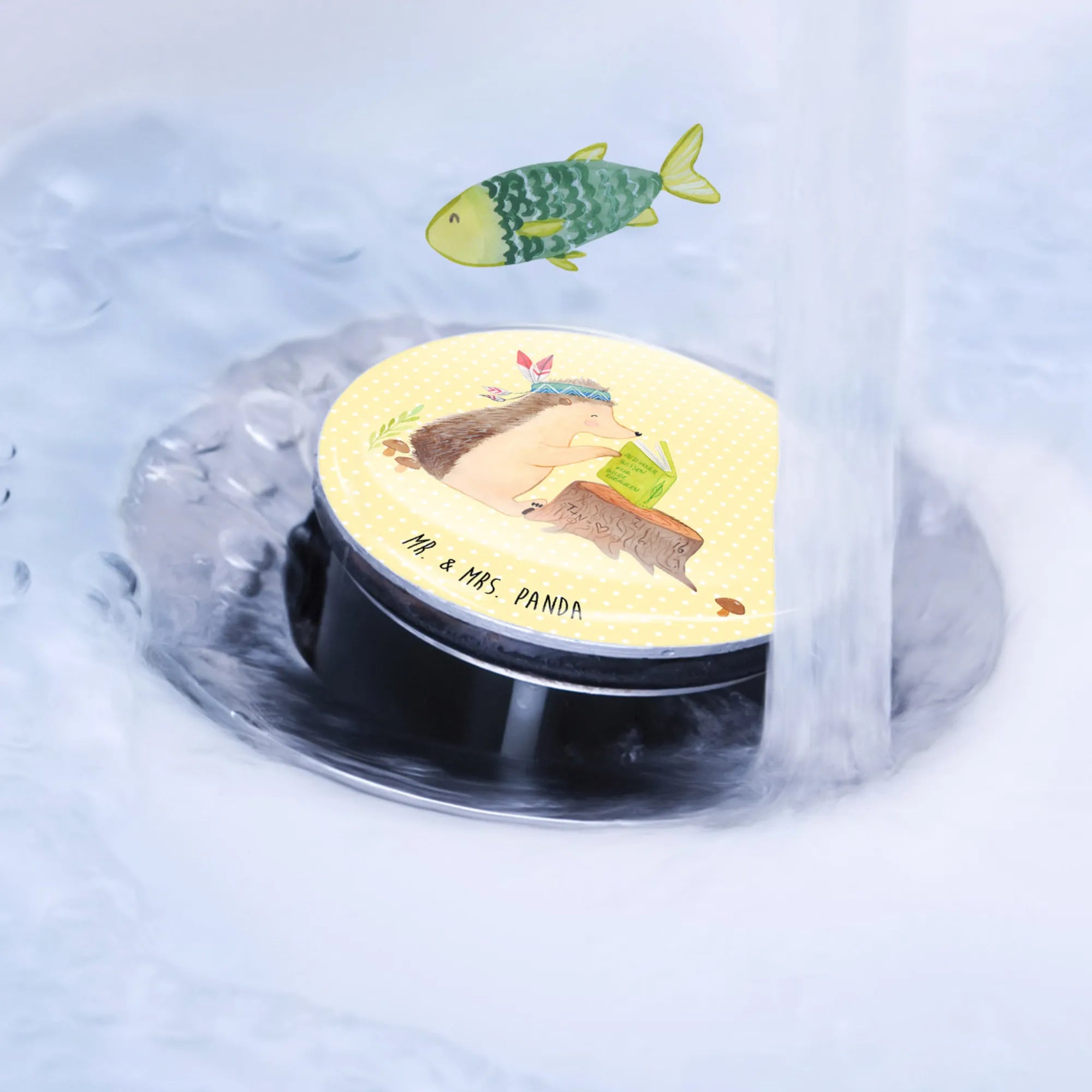 Korek do umywalki jeż Ozdoba z piór - Pastelowy niebieski
