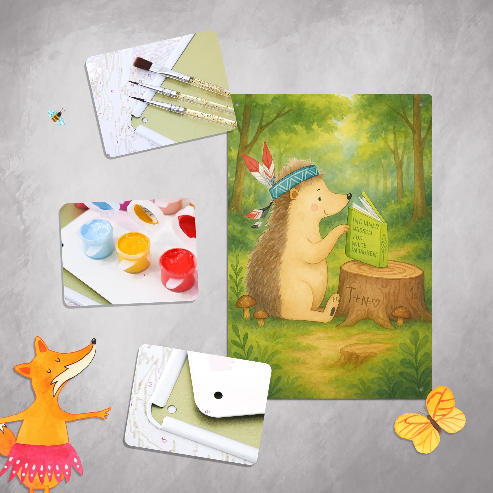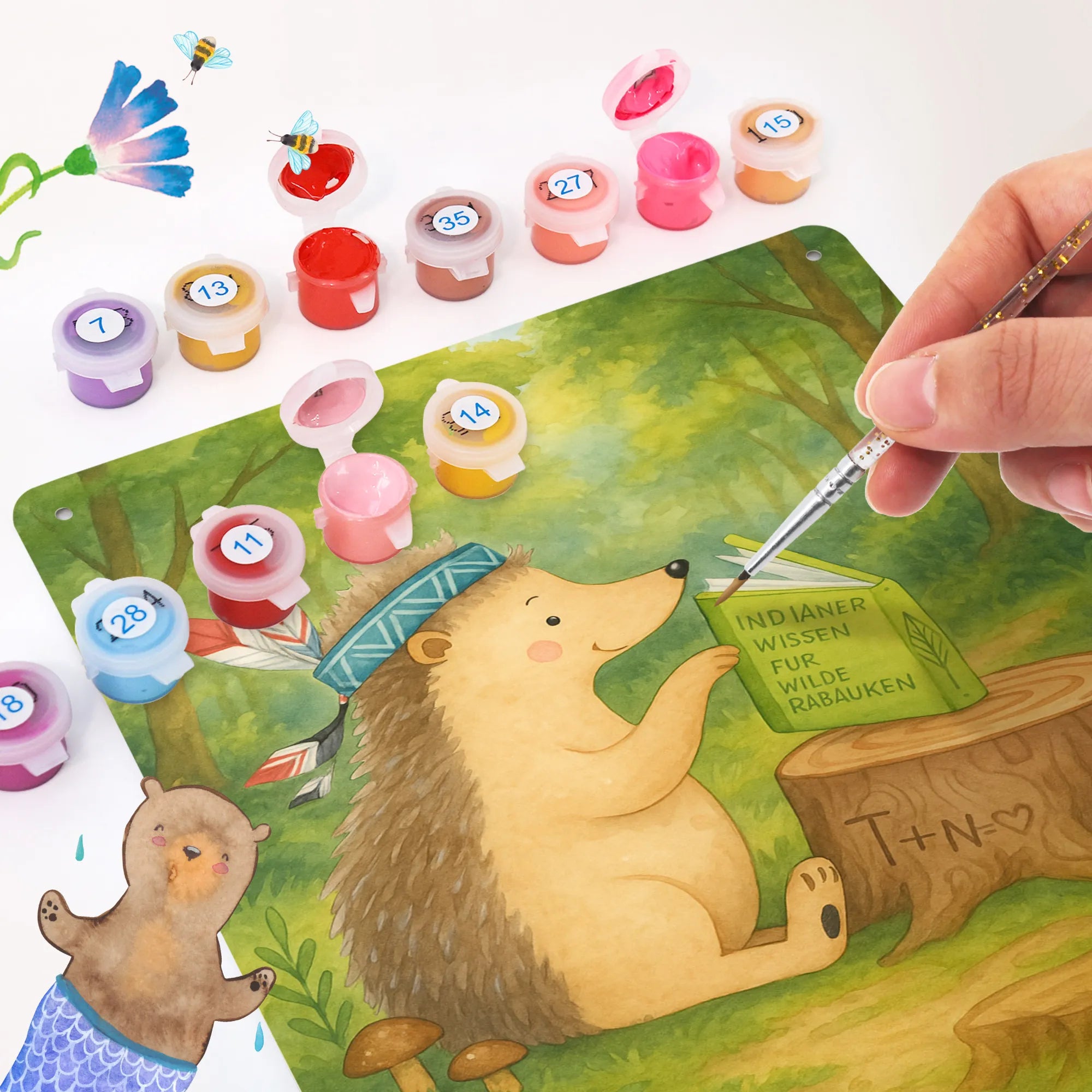 Metalowy szyld do malowania po numerach jeż Ozdoba z piór Design