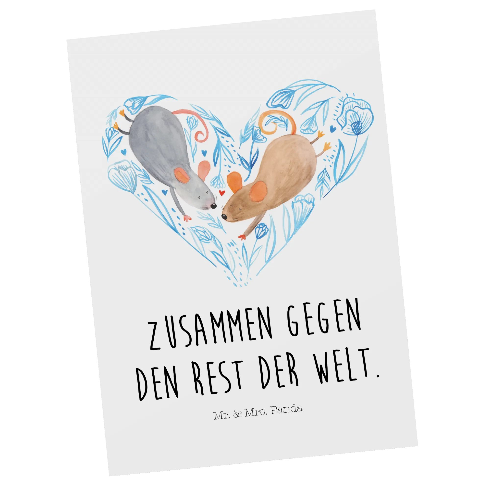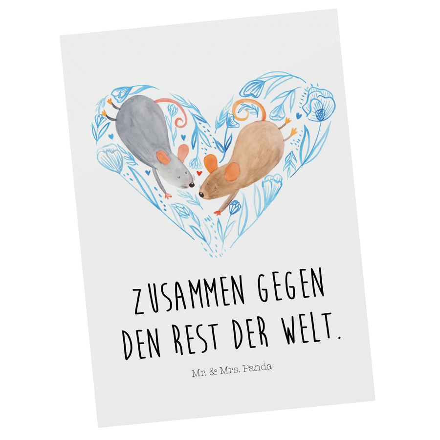 Stell dir eine liebevolle, fantasievolle Welt voller niedlicher Tiermotive und herzerwärmender Sprüche vor. Genau das bringst du dir nach Hause mit der einzigartigen Postkarte von Mr. & Mrs. Panda, die das wunderschöne Hochzeit Mäuse Herz-Motiv zeigt. 💗