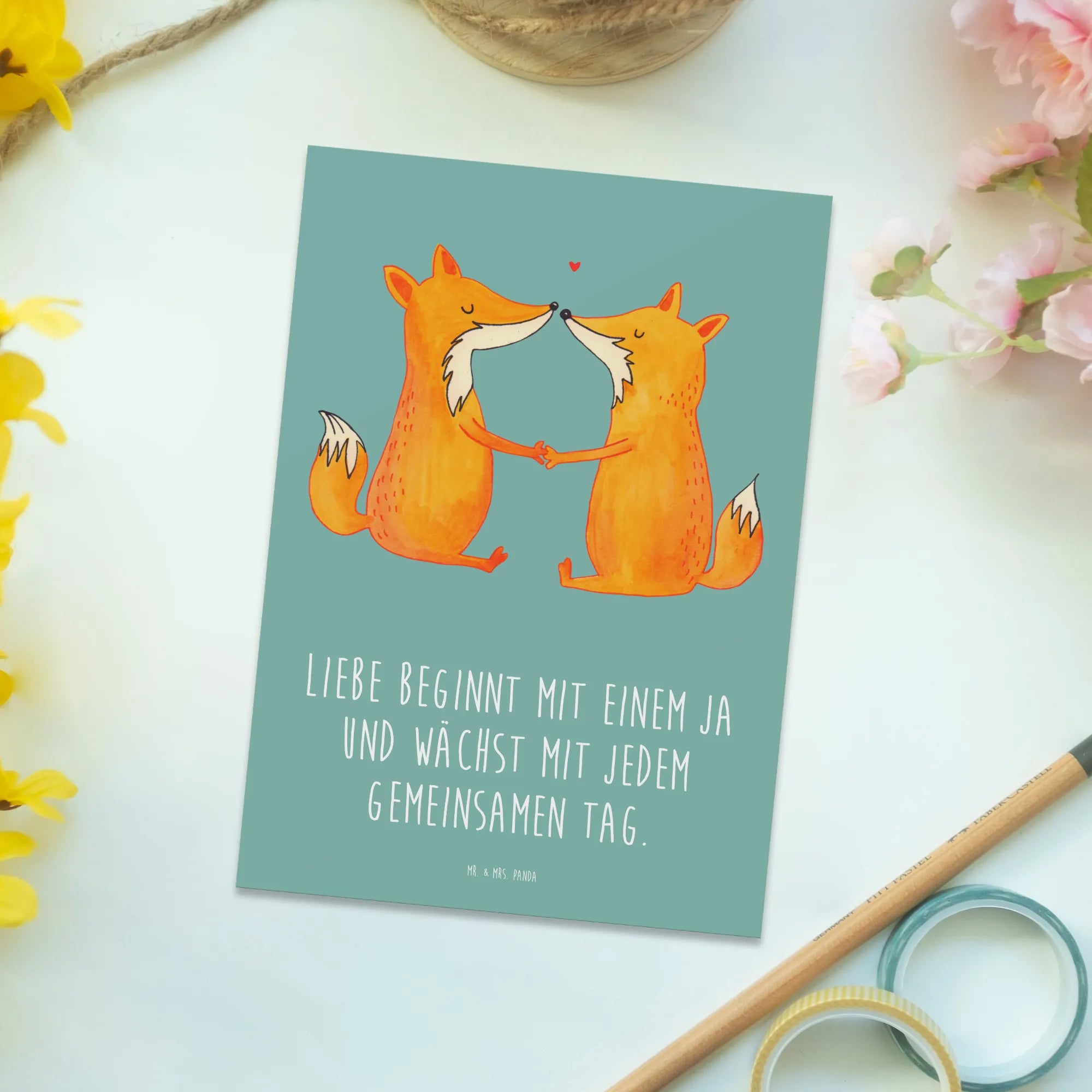 Diese Postkarte ist ideal für Hochzeiten, Verlobungen und als Dankeskarten für die Gäste. Bei Mr. & Mrs. Panda findest du alles, was dein Herz für besondere Anlässe begehrt. Verleihe deiner Gratulation einen persönlichen Touch und mach diesen Tag für das Brautpaar unvergesslich. Die Karte ist 150 mm groß und lässt sich perfekt in standardmäßige Umschläge einlegen – bereit, um Freude zu verbreiten!