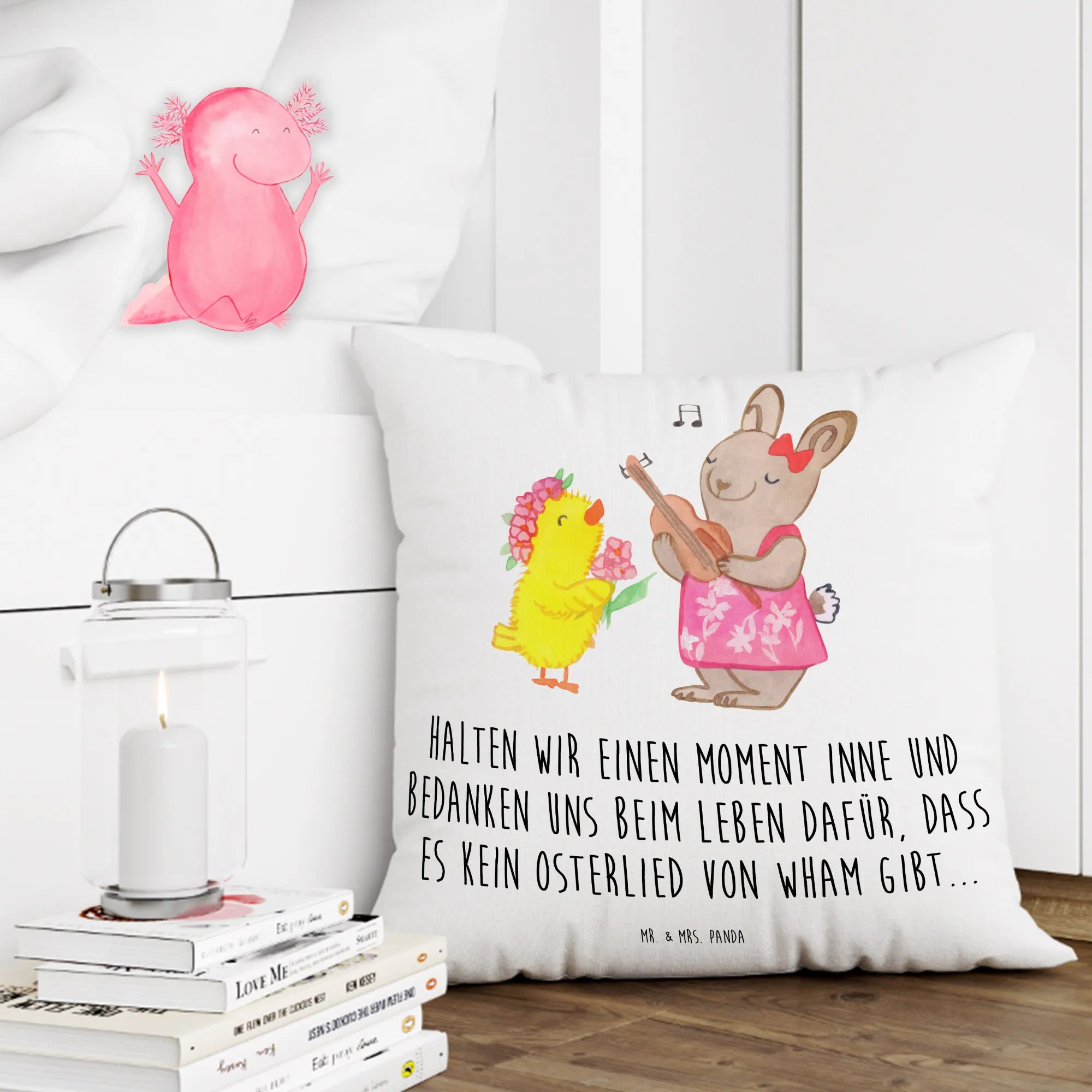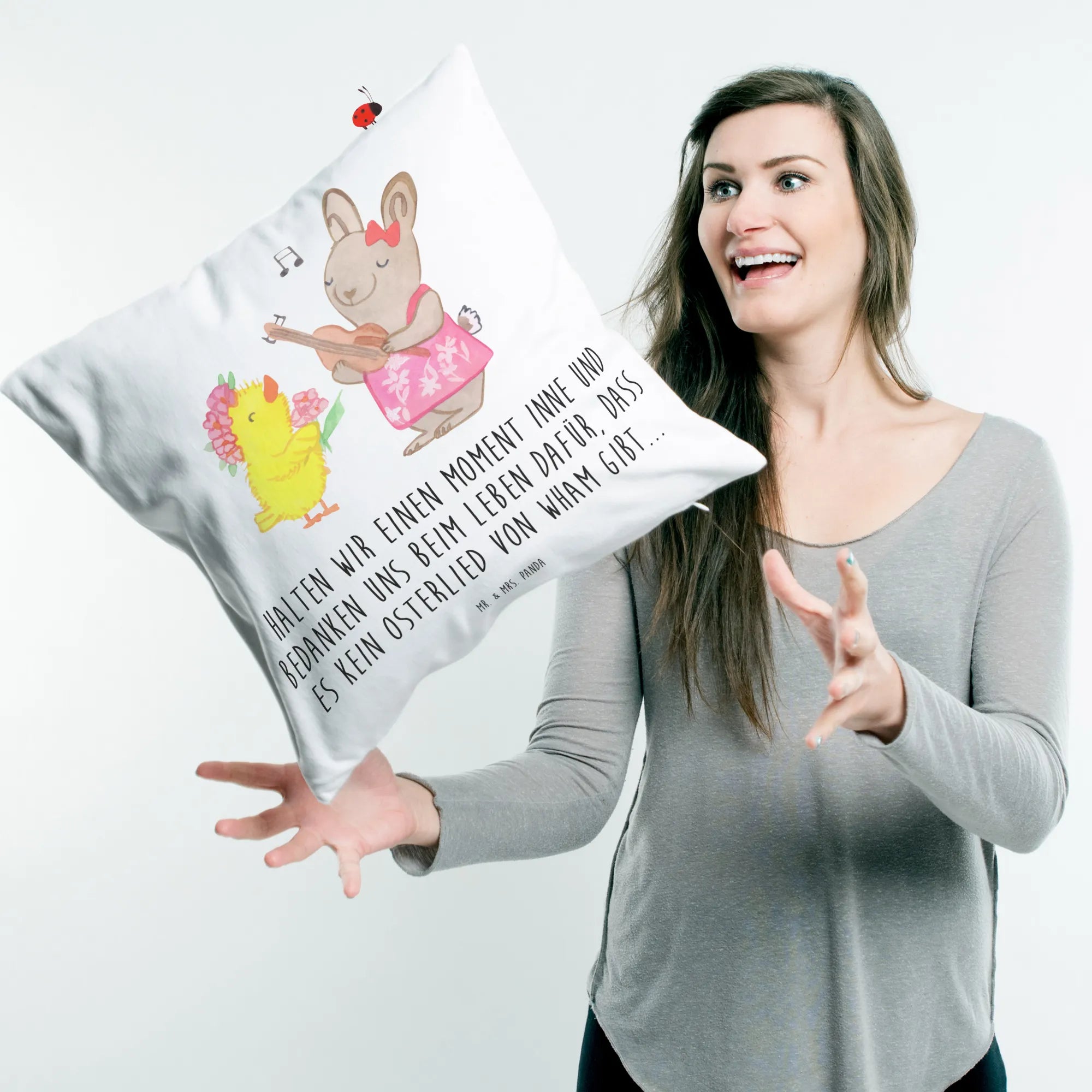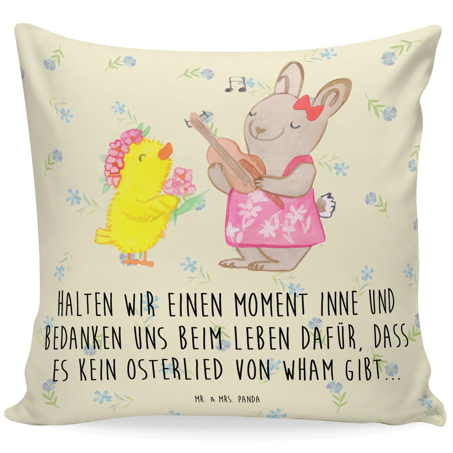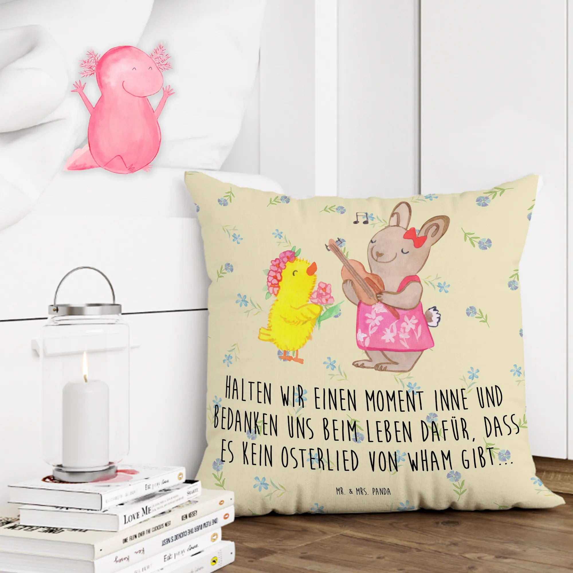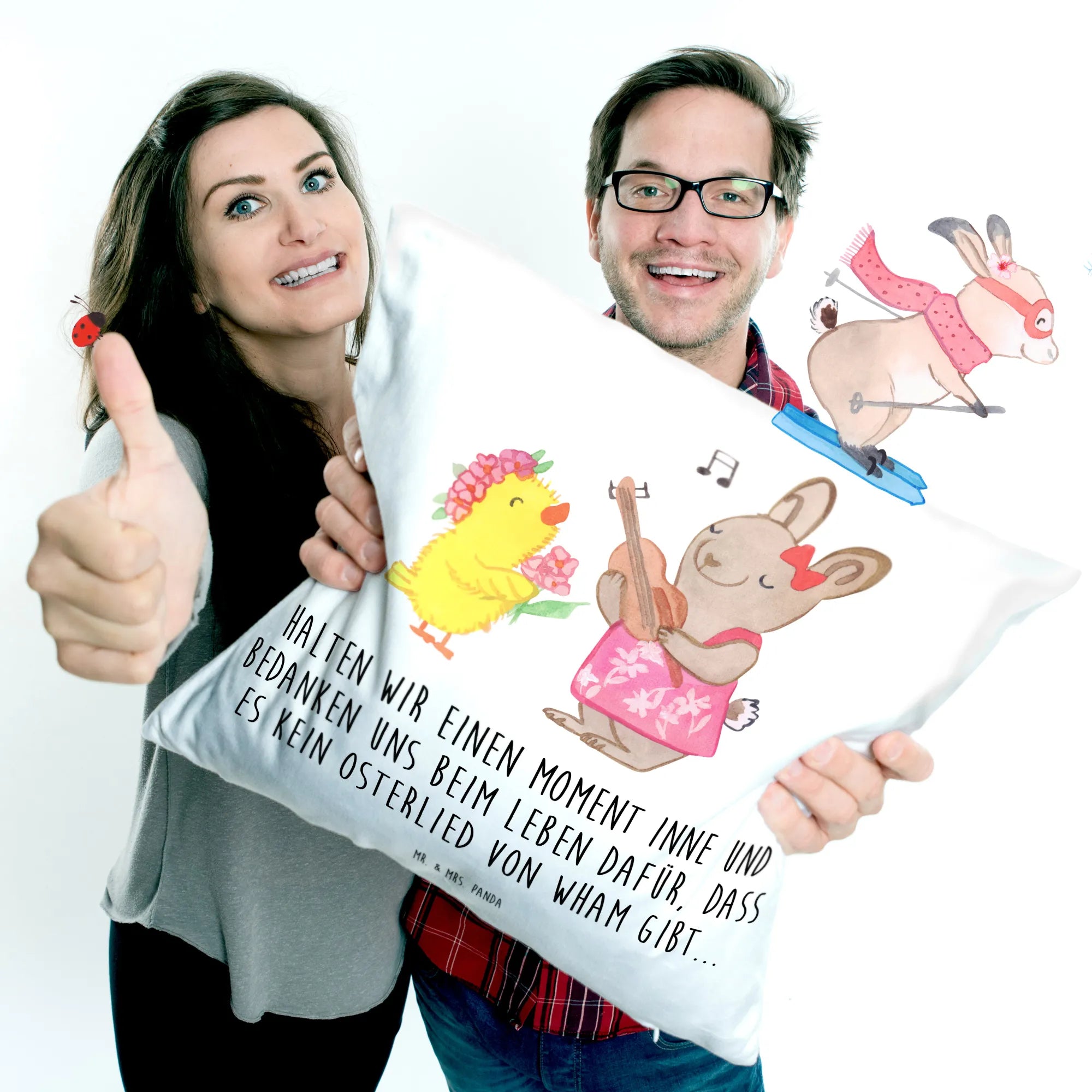 Das 40x40 Kissen "Ostern Frühlingsgefühle" aus der Ostern - Kollektion von Mr. & Mrs. Panda ist das perfekte Geschenk für alle, die die Freude und die Farben des Frühlings und Ostens in ihr Zuhause bringen möchten. Mit einem zauberhaften Design zeigt das Kissen einen süßen Hase im Sommerkleid, der einem kleinen, niedlichen Küken auf seiner Gitarre ein Lied vorspielt. Dieses liebevoll gestaltete Motiv bringt ein fröhliches Gefühl in jedes Wohn- oder Kinderzimmer und versüßt die Osterzeit.