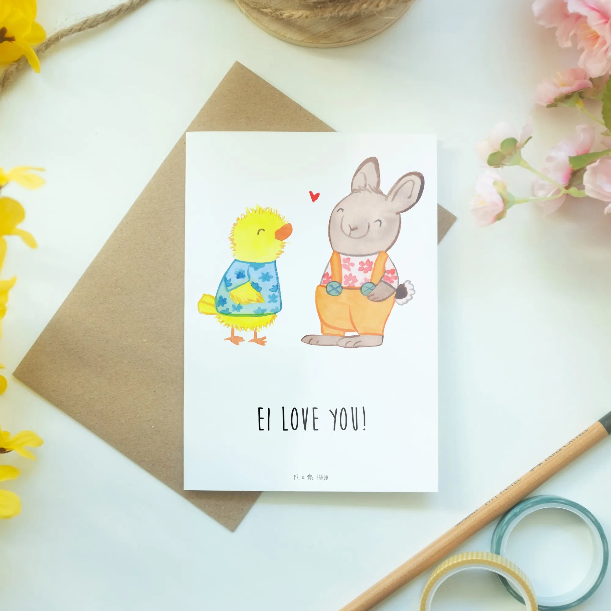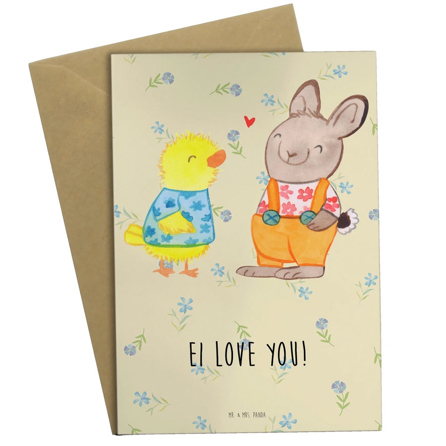Bereite Dich darauf vor, das Osterfest mit einer liebevollen Geste zu einem besonderen Ereignis zu machen! Bring den Frühling in Dein Leben, indem Du die schönen Motive aus unserer Ostern Kollektion nutzt. Egal ob als Osterkarte, Glückwunschkarte oder einfach als nette Geste – diese Karte wird sicher in Erinnerung bleiben. Verschenke Freude, Liebe und Freundschaft – mit Mr. & Mrs. Panda! Lass Deine Freunde wissen, wie sehr Du sie schätzt und verschicke die "Ostern Freundschaft" Grußkarte noch heute!
