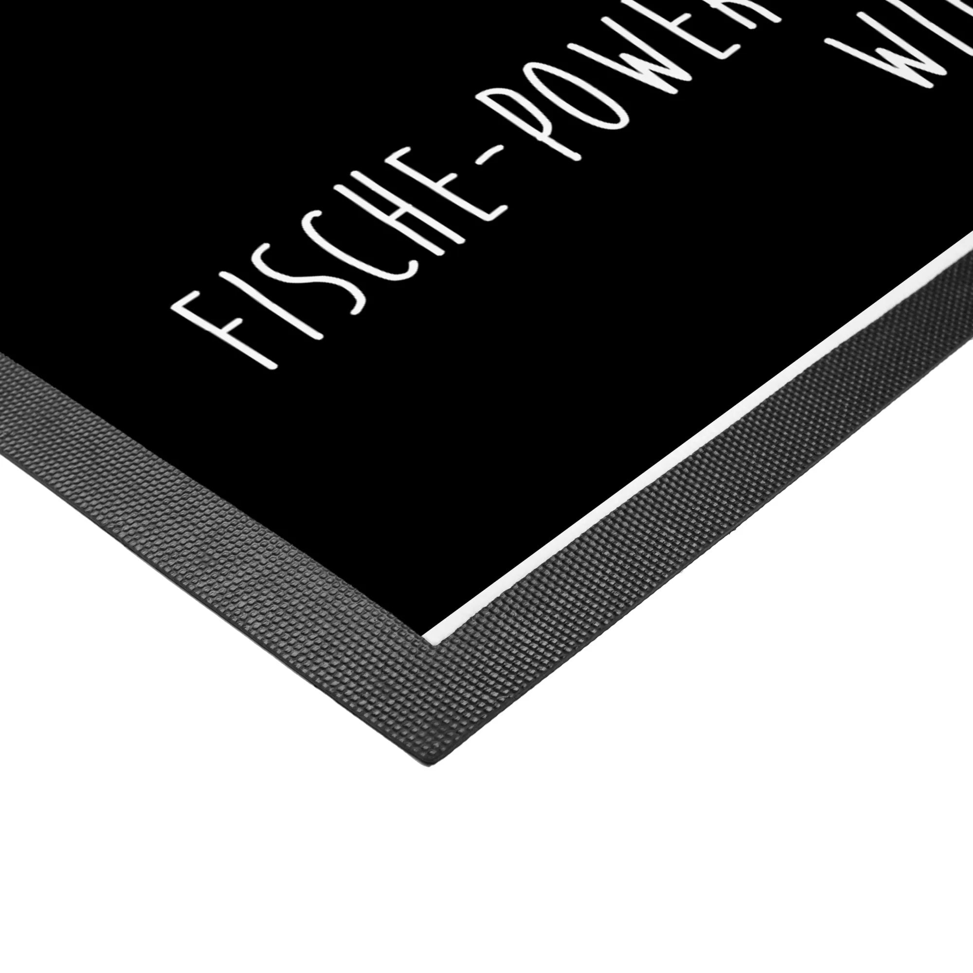 Die liebevoll handgezeichnete Illustration und die Worte "Fische-Power: Tief wie der Ozean, frei wie der Fluss" auf der Matte geben jedem Eintritt in dein Zuhause ein fröhliches Gefühl. Diese niedliche Fußmatte ist nicht nur ein praktischer Schmutzfänger, sondern auch ein wahres Kunstwerk, das jedem Besucher ein Lächeln ins Gesicht zaubert.