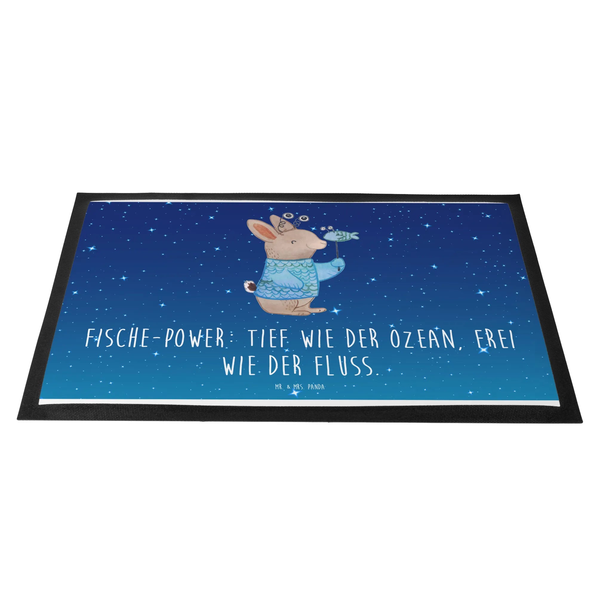 Die Fußmatte mit dem Motif "Fische Astrologie" von Mr. & Mrs. Panda ist das perfekte Geschenk für alle, die mit den Sternen und der Astrologie verbunden sind. Mit einem charmanten Design, das ein fröhliches Kaninchen in einem Fischkostüm zeigt, bringt diese Schmutzmatte eine besondere Note in jeden Flur.