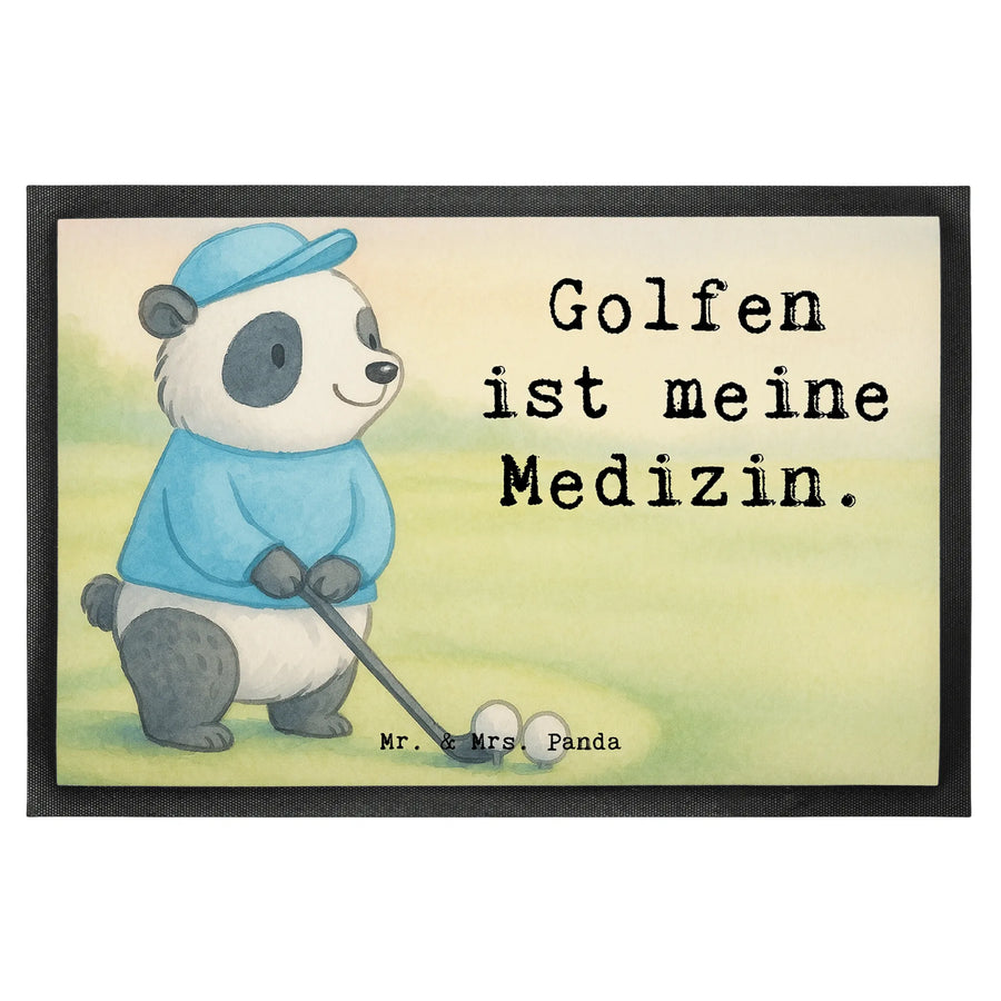 Mr. & Mrs. Panda Fußmatte „Panda Golfen Medizin“ – der perfekte Türvorleger für alle, die Golf lieben. Dieser charmante Fußabtreter zeigt einen niedlichen Panda im Golfoutfit und bringt gute Laune an deine Haustür oder ins Wohnzimmer. Als Schmutzmatte und Schmutzfänger hält sie Rasen, Sand und Schmutz fern und sorgt dafür, dass Böden sauber bleiben.