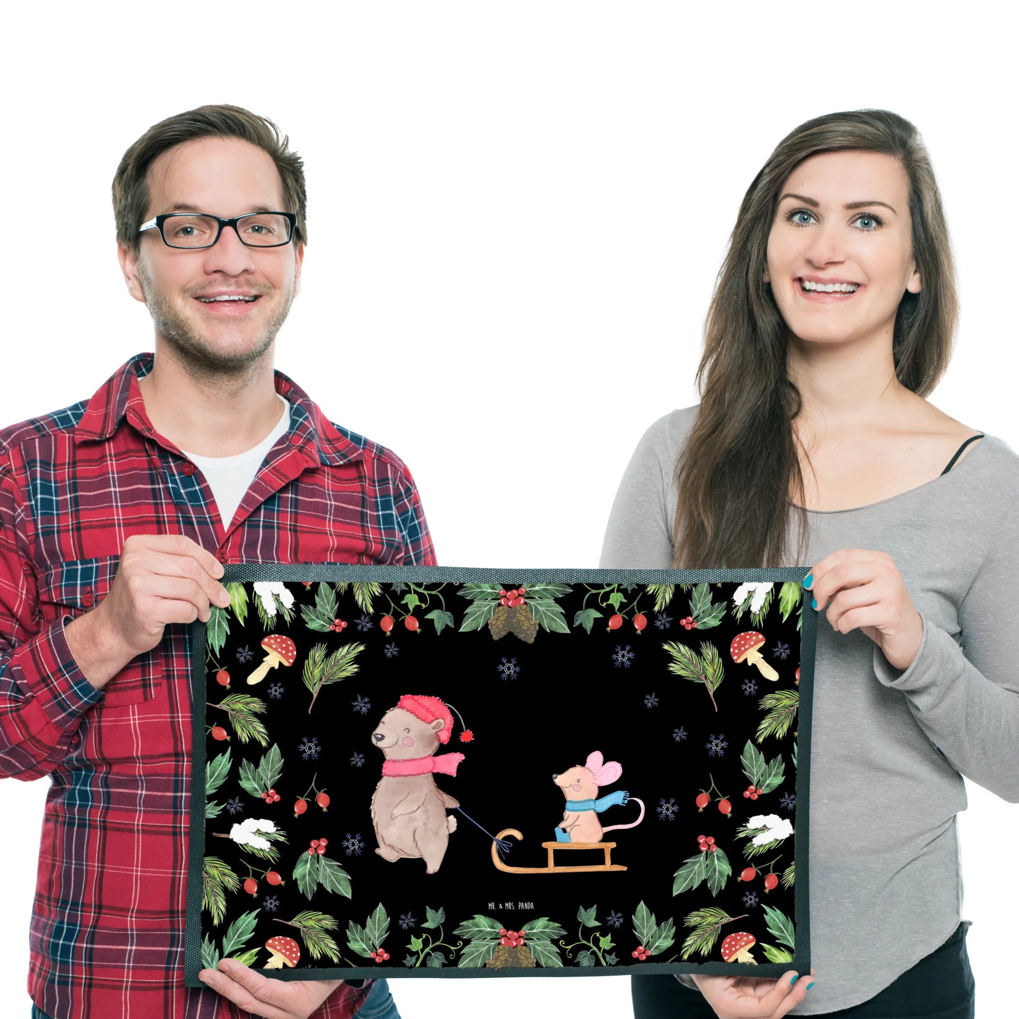 wycieraczka Niedźwiedź i Mysz sanie - 50 x 75 cm - z napisem - Czarny