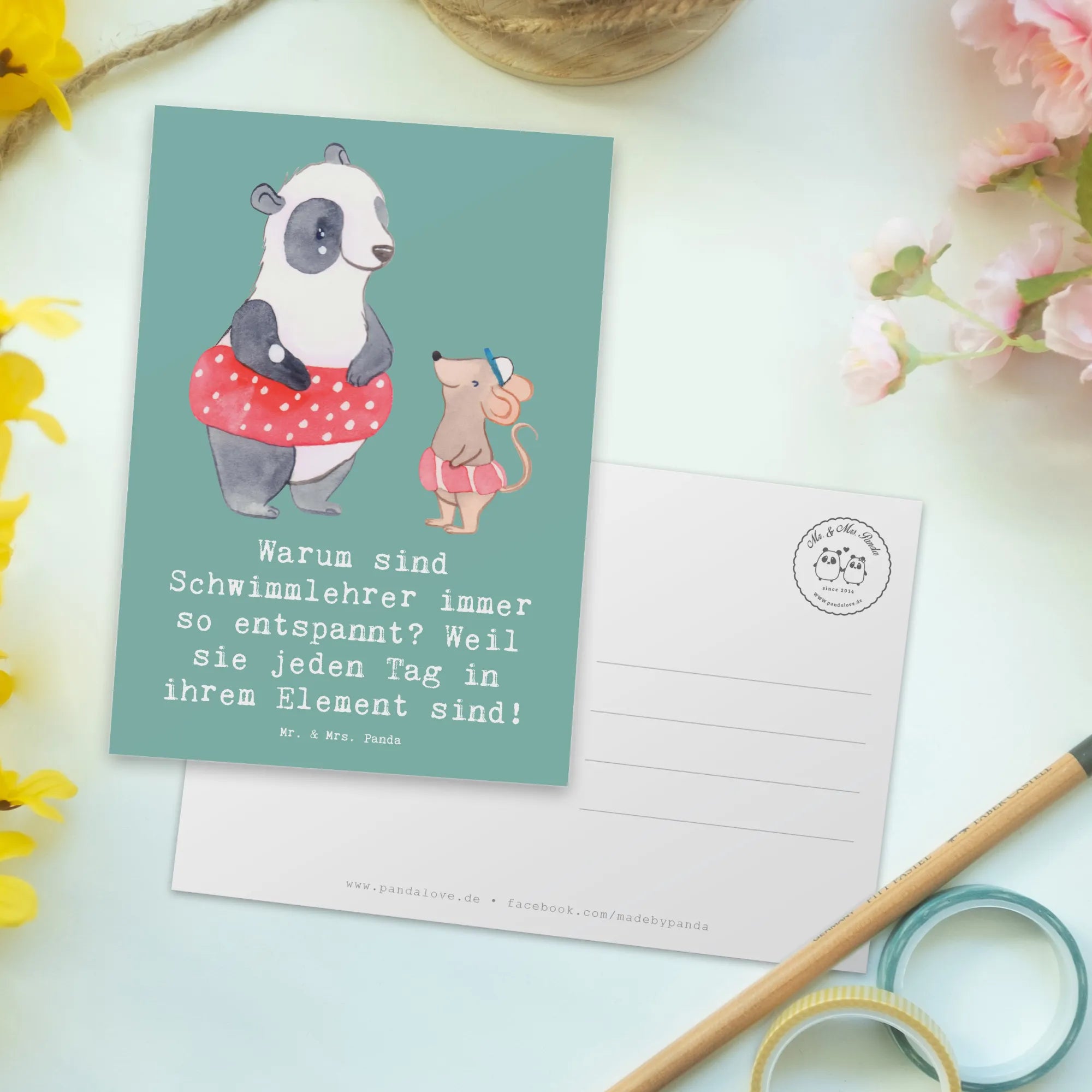 Postkarte Entspannte Schwimmlehrer – Mr. & Mrs. Panda