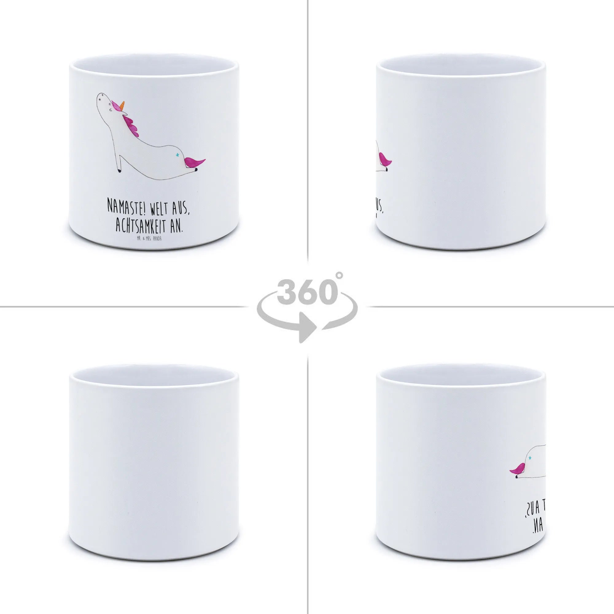 Einhorn Yoga - der XL Blumentopf von Mr. & Mrs. Panda ist nicht nur ein Pflanzgefäß, sondern ein wahrhaft zauberhaftes Stückchen Einhorn-Magie für dein Zuhause!