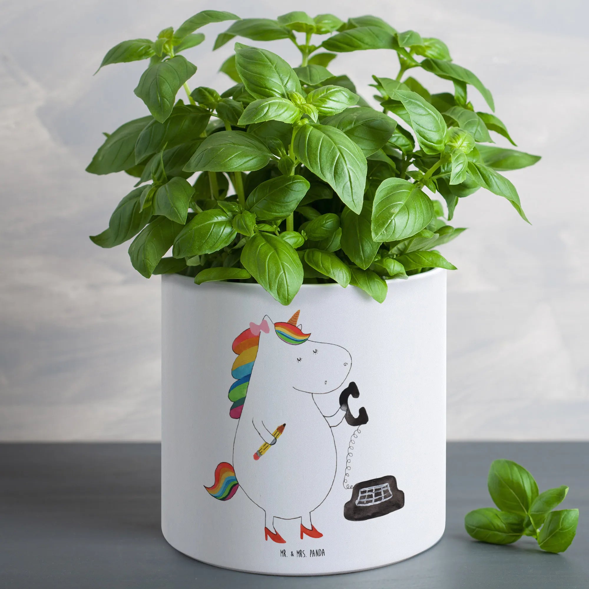 Der XL Blumentopf 'Einhorn Sekretärin' von Mr. & Mrs. Panda ist die perfekte Geschenkidee für alle, die Einhörner und einen kreativen Arbeitsplatz lieben. Mit seinen niedlichen handgezeichneten Motiven bringt er Farbe und Freude in jedes Büro und zu jeder Pflanze.