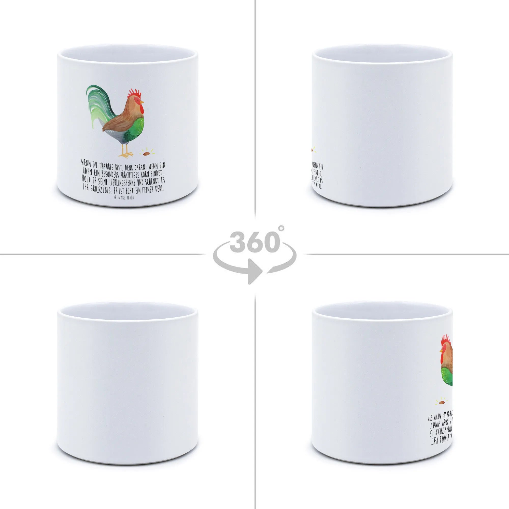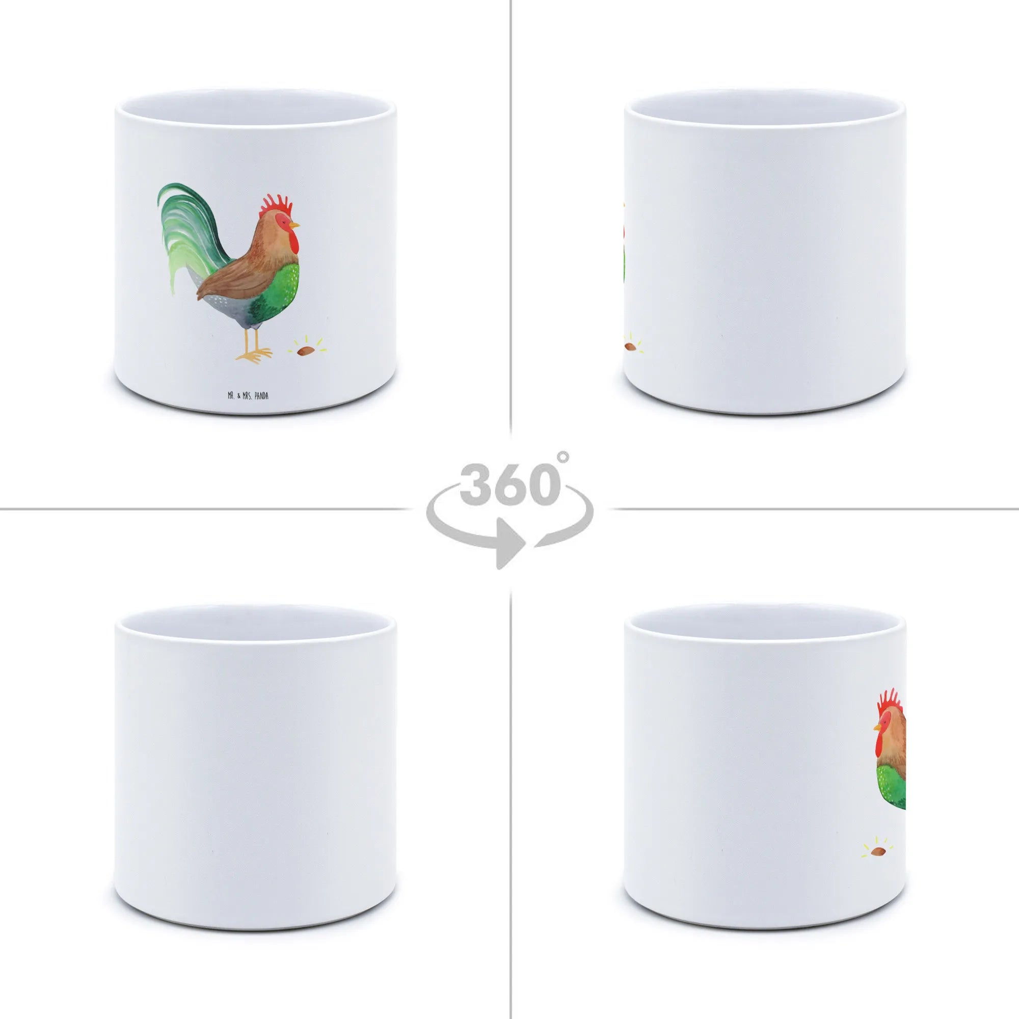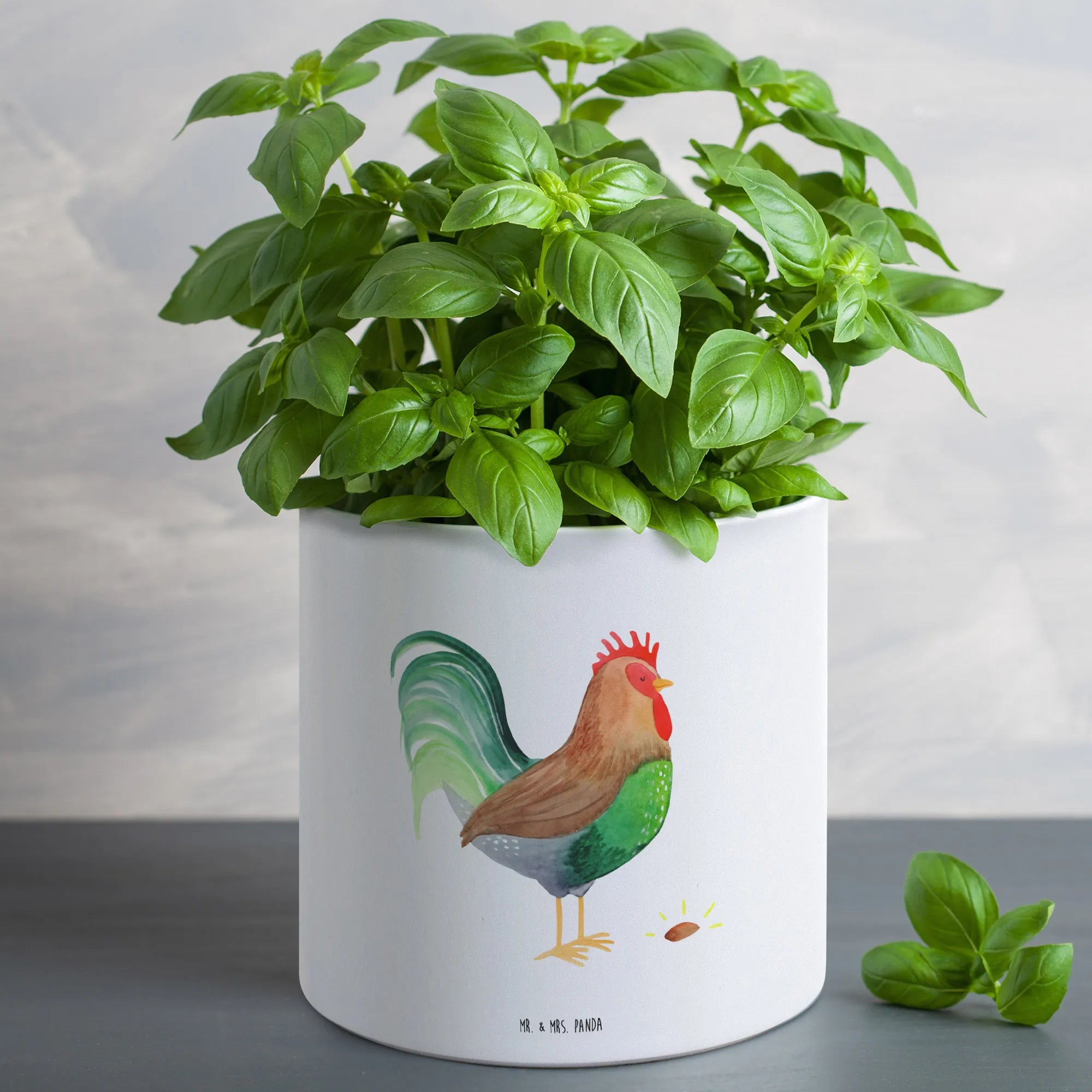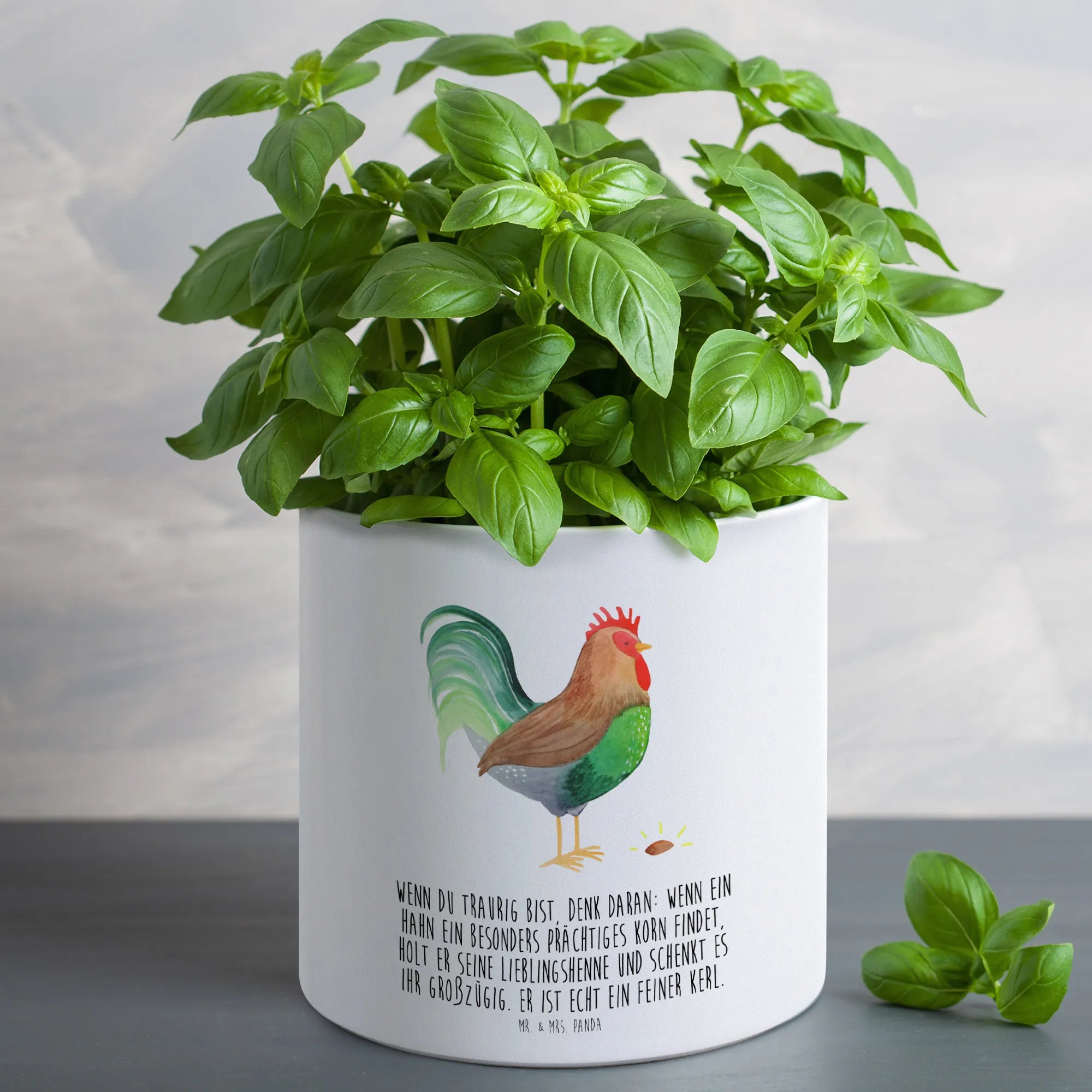 Der XL Blumentopf "Hahn mit Korn" aus der Bauernhof Kollektion von Mr. & Mrs. Panda ist das perfekte Geschenk für Tierliebhaber und Naturliebhaber! Mit seinem liebevoll von Hand gezeichneten Motiv eines stolzen Hahns, der großzügig ein prächtiges Korn teilt, bringt dieser Pflanztopf nicht nur Farbe, sondern auch Freude in jedes Zuhause.