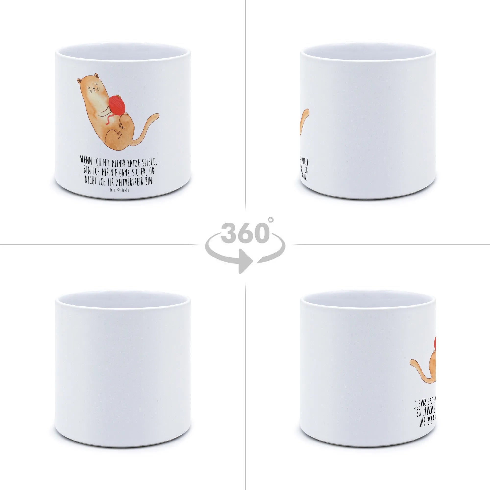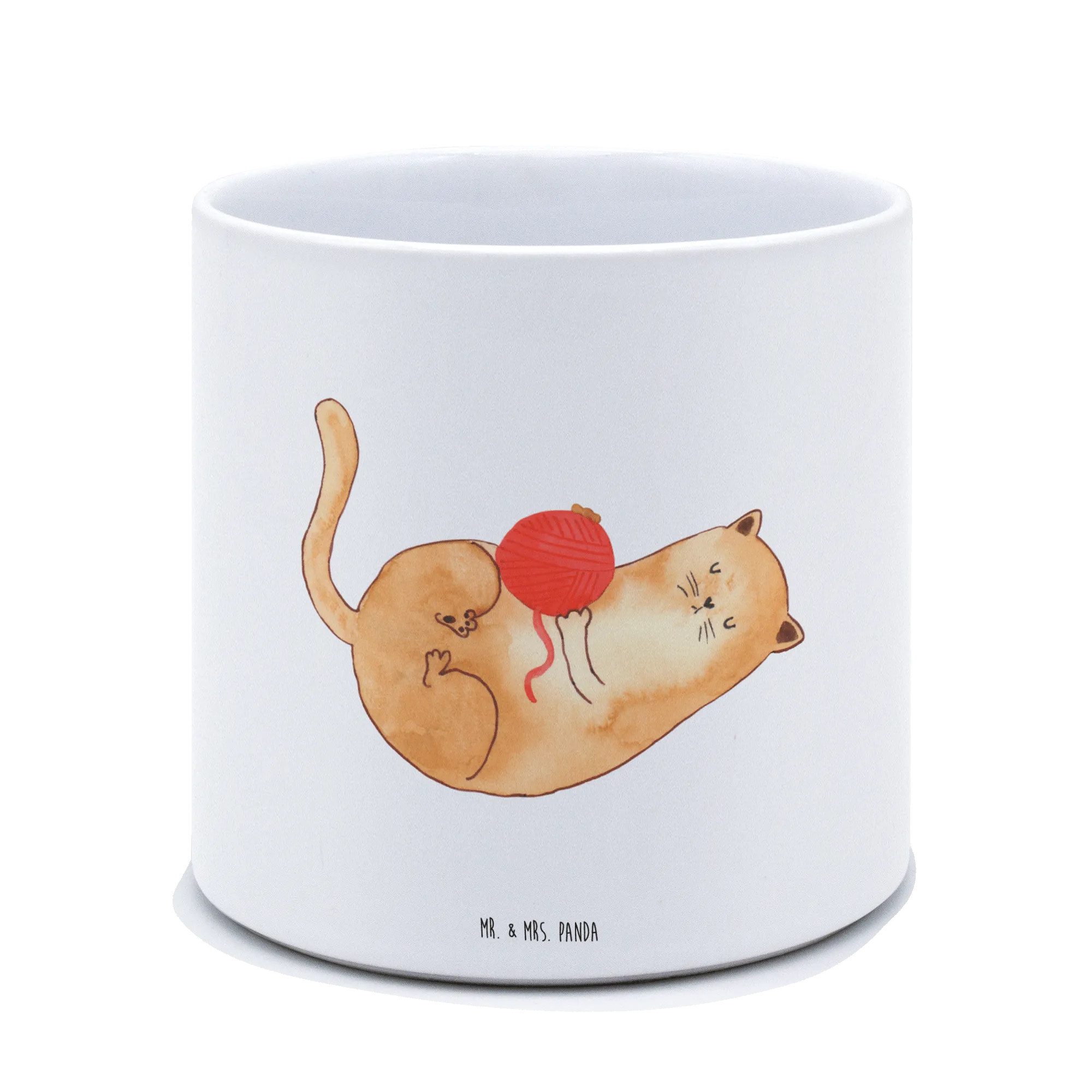 Entdecke unseren zauberhaften XL Blumentopf mit dem süßen Katzenmotiv "Katzen Wollknäul" aus der exklusiven Katzen-Kollektion von Mr. & Mrs. Panda. Dieser einzigartige Blumentopf ist nicht nur ein richtiger Blickfang, sondern auch perfekt für alle Katzenliebhaber!