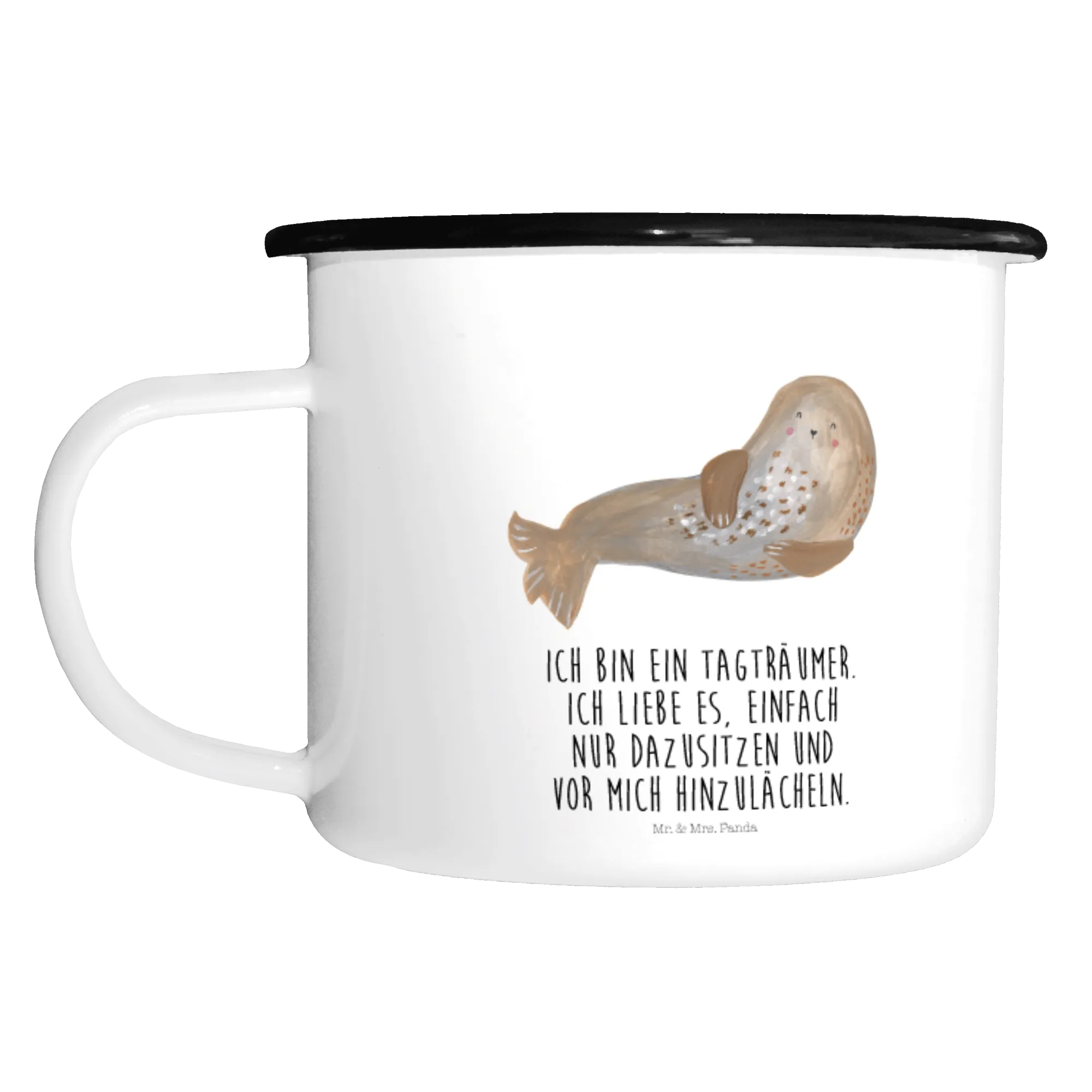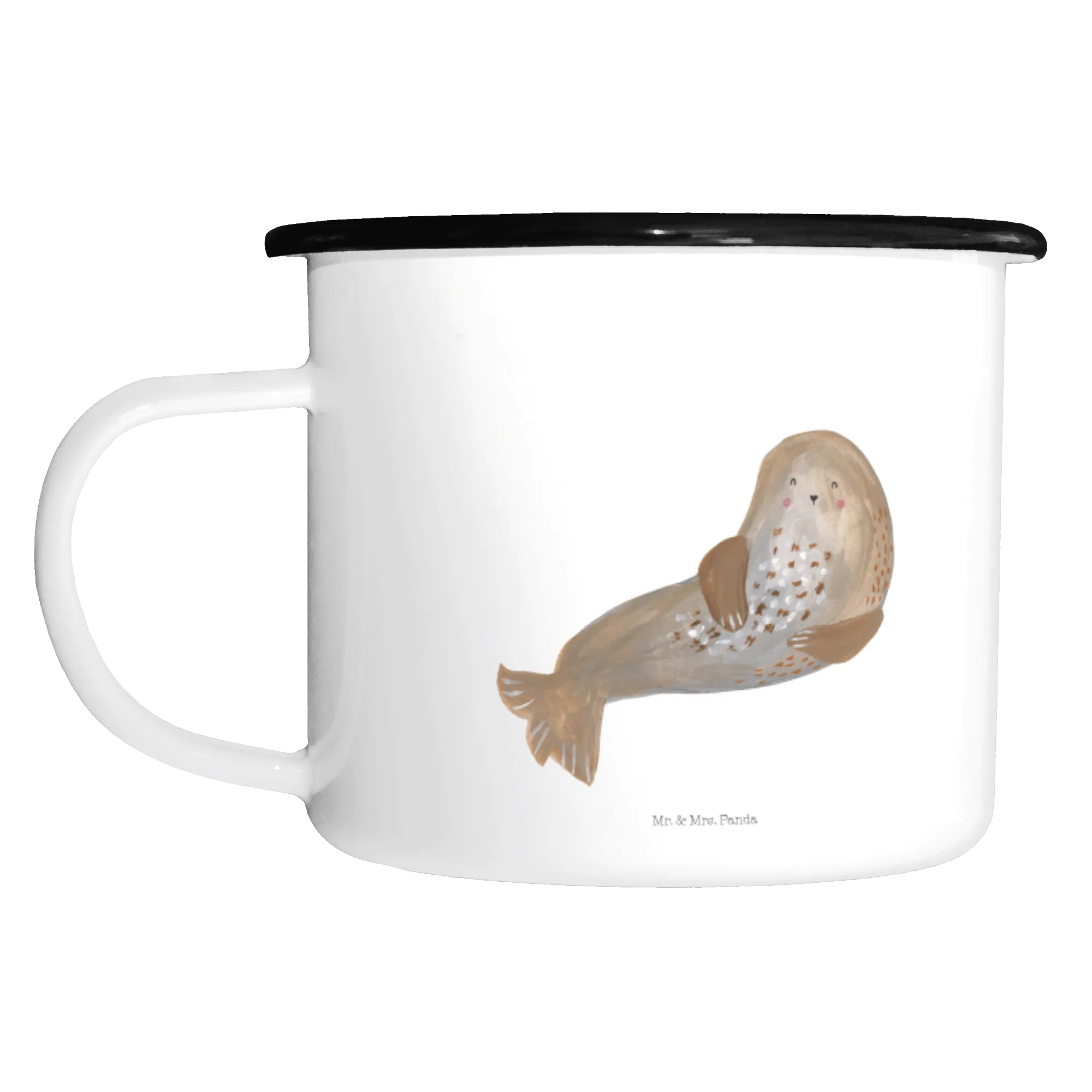 XL emaliowany kubek foka śmiech - z napisem - biały