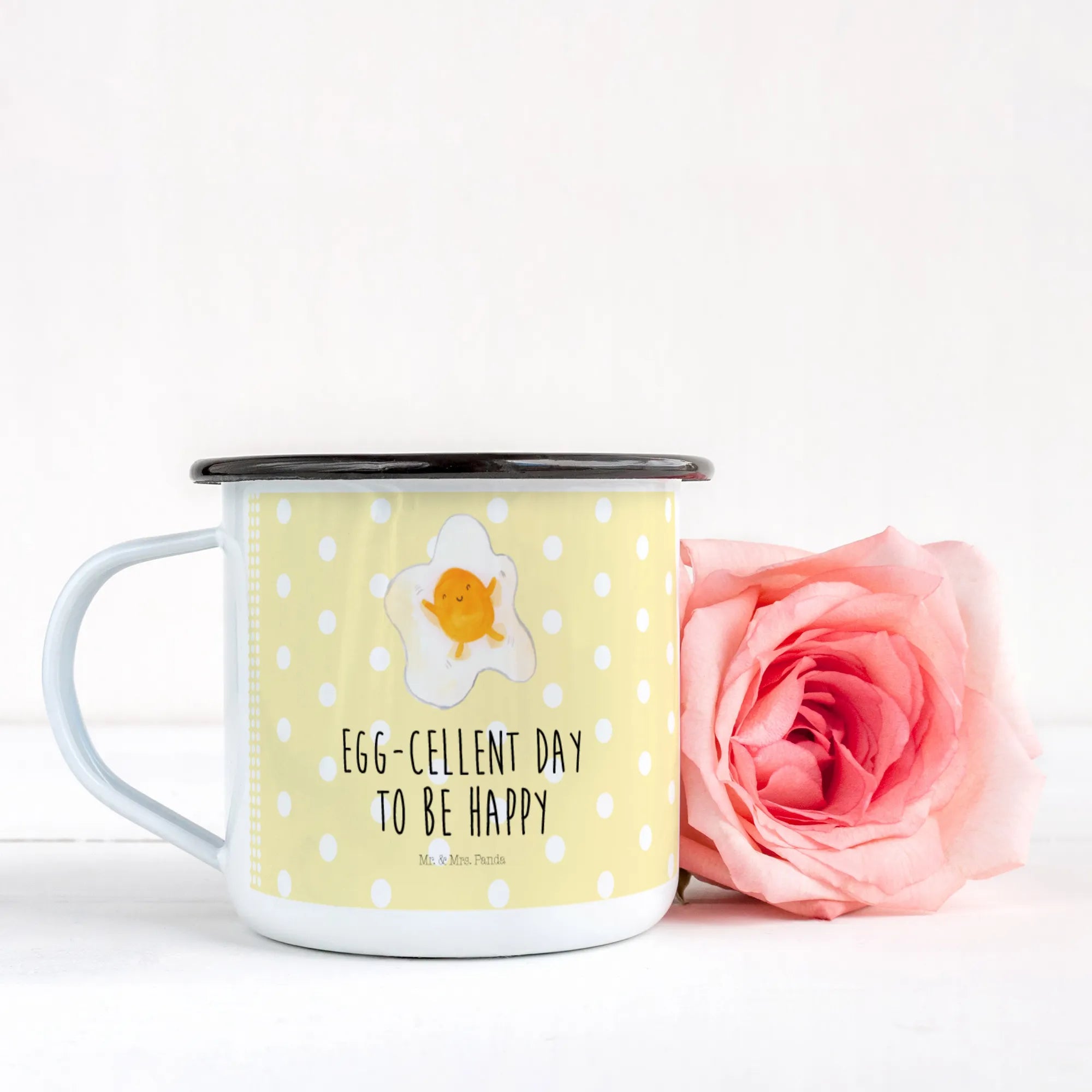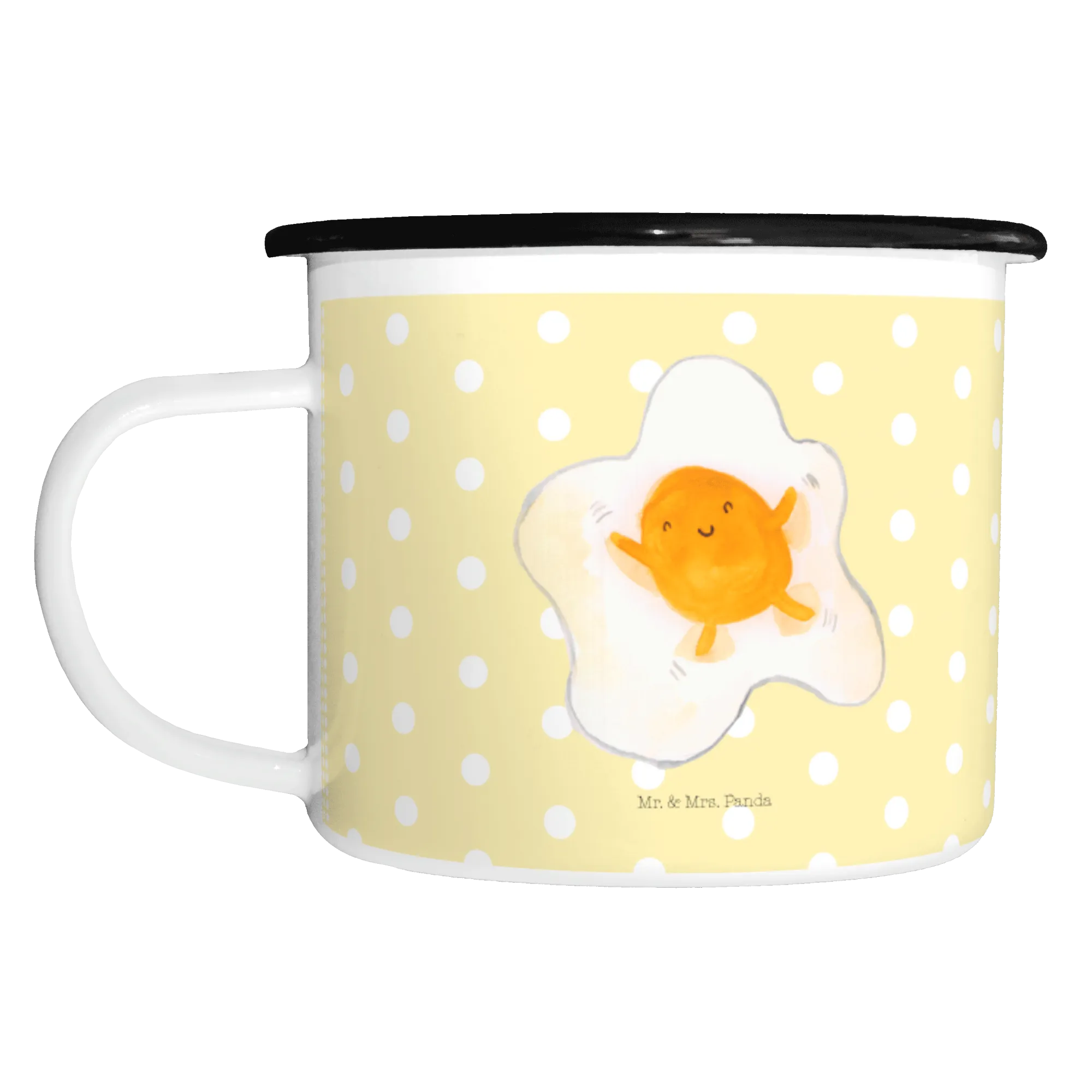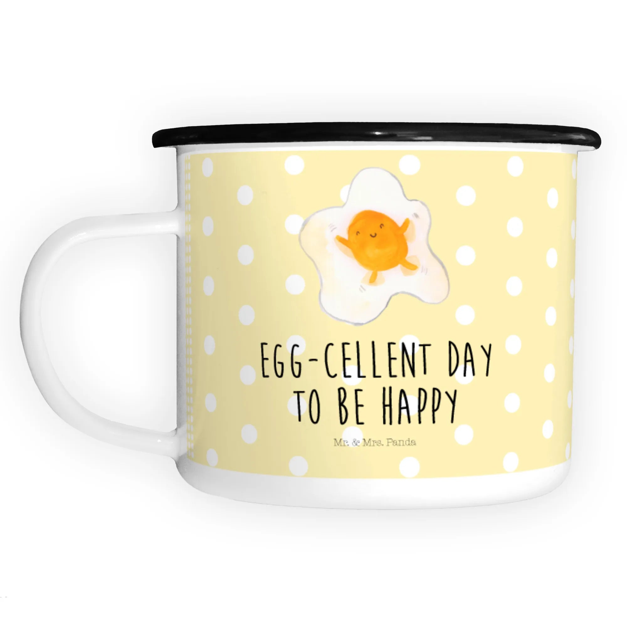 XL emaliowany kubek jajko sadzone jajko - z napisem - biały