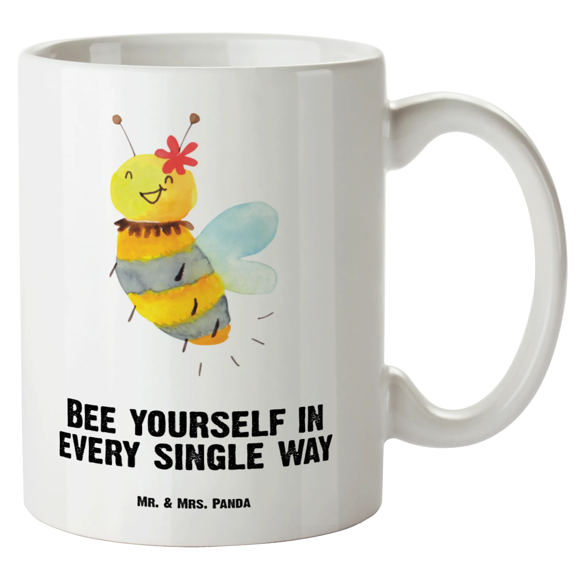 Die XL Tasse Biene Blume aus der zauberhaften Bienen Kollektion von Mr. & Mrs. Panda ist der perfekte Begleiter für alle, die ihren Kaffee oder Tee mit einer Portion Lebensfreude genießen möchten. Mit ihrem großzügigen Füllvolumen von 500 ml lädt sie dazu ein, sich Zeit zu nehmen und den Moment zu genießen.