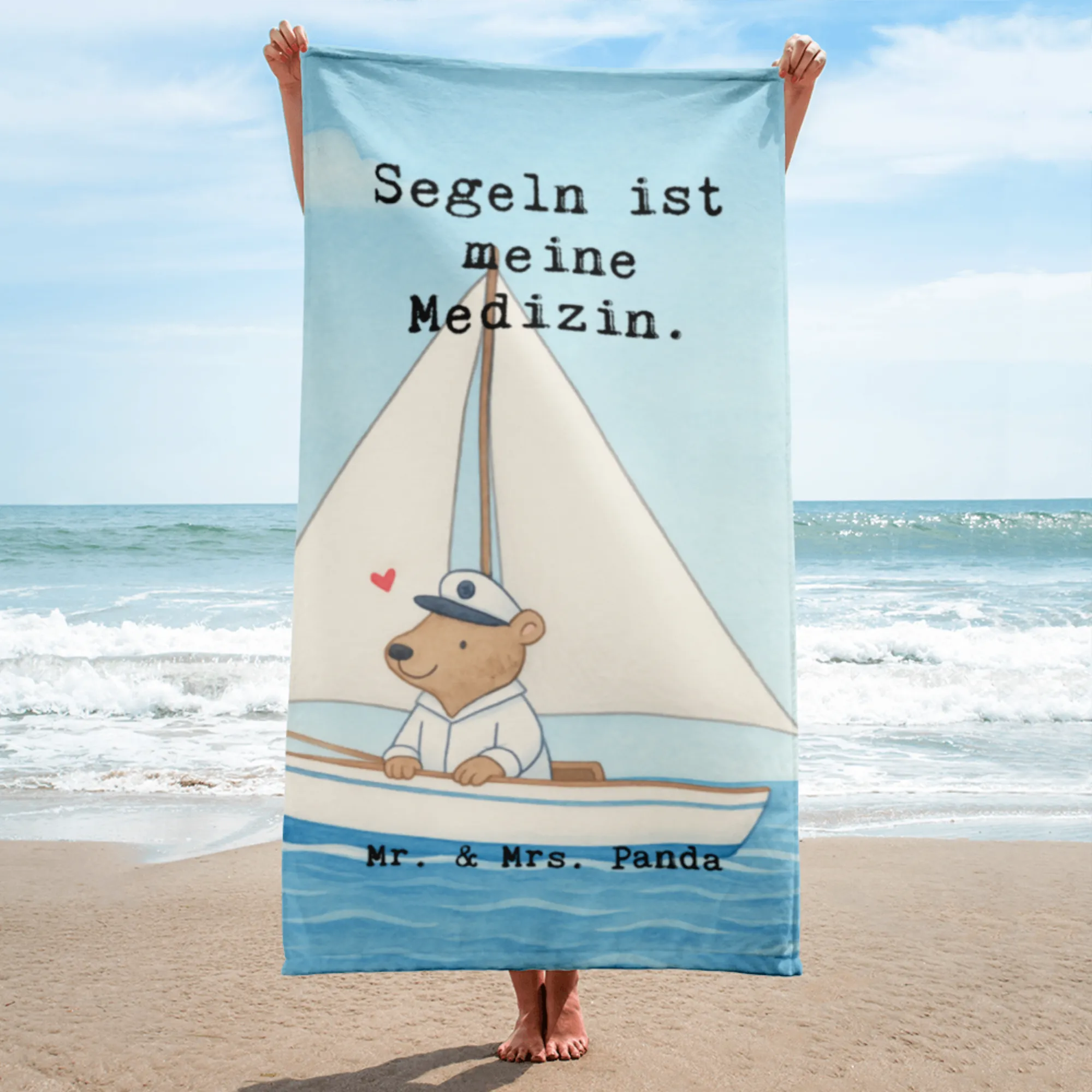 XL Badehandtuch Bär Segeln Design - mit Spruch