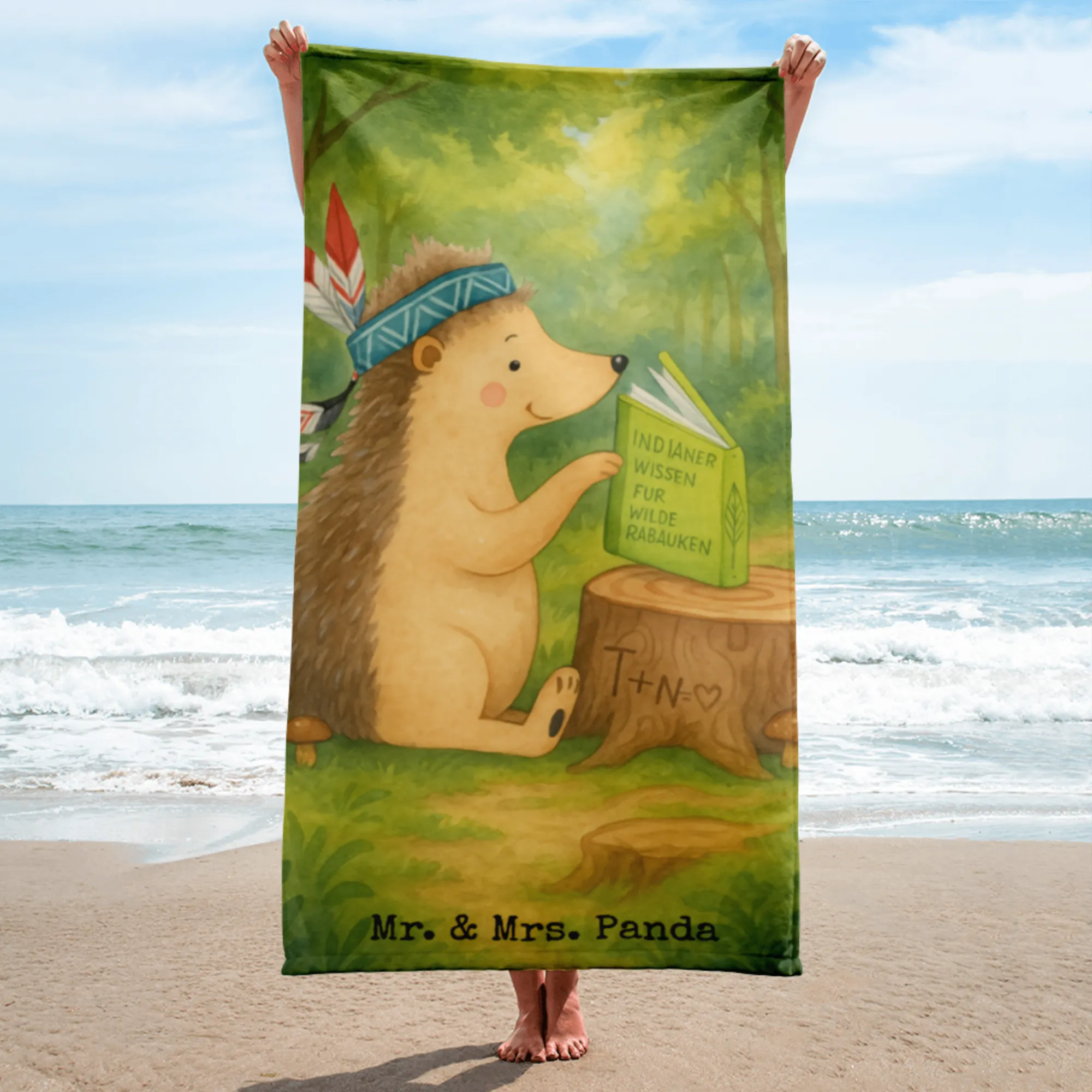 XL Badehandtuch Igel Federschmuck Design