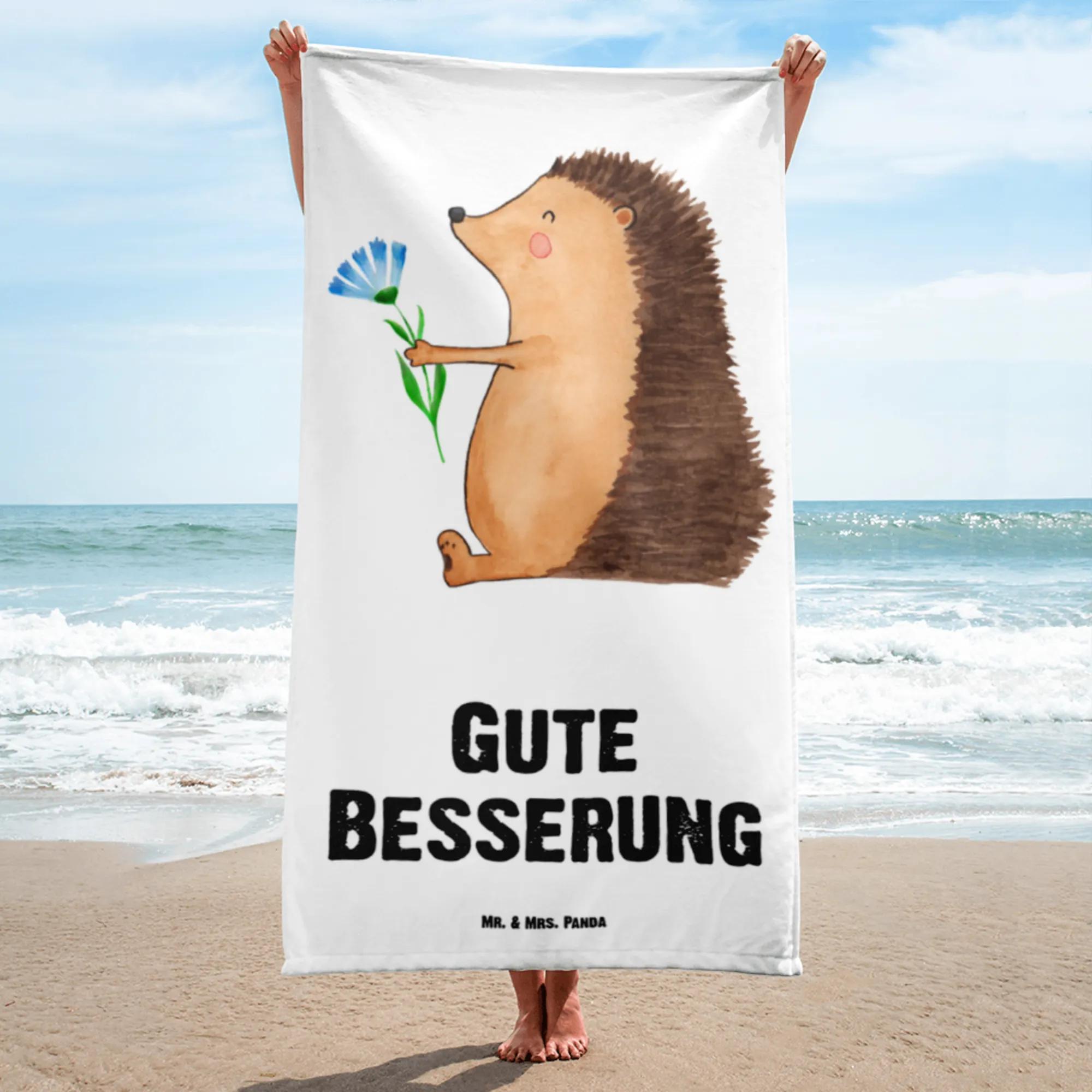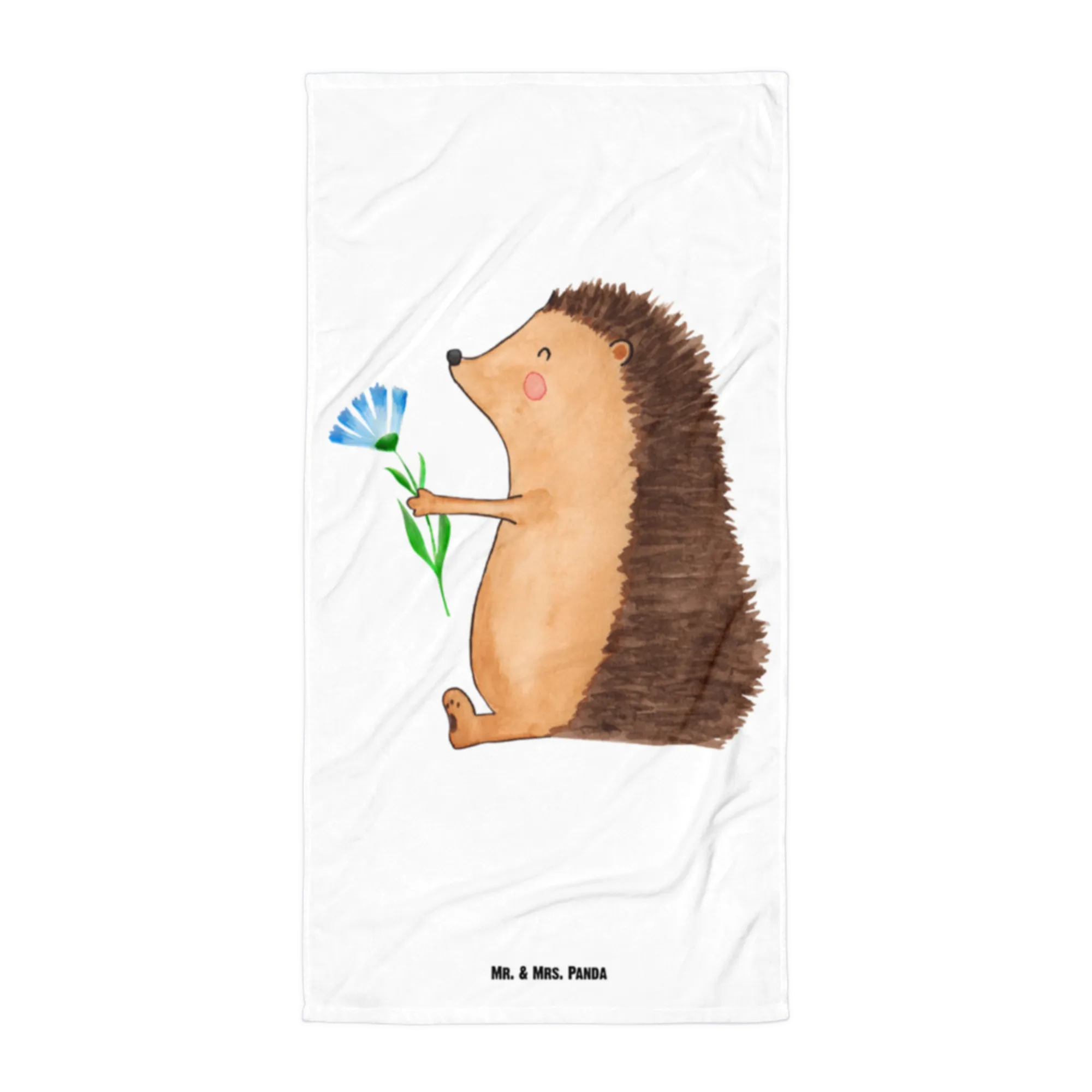 XL ręcznik kąpielowy jeż Kwiaty - z napisem - Biały
