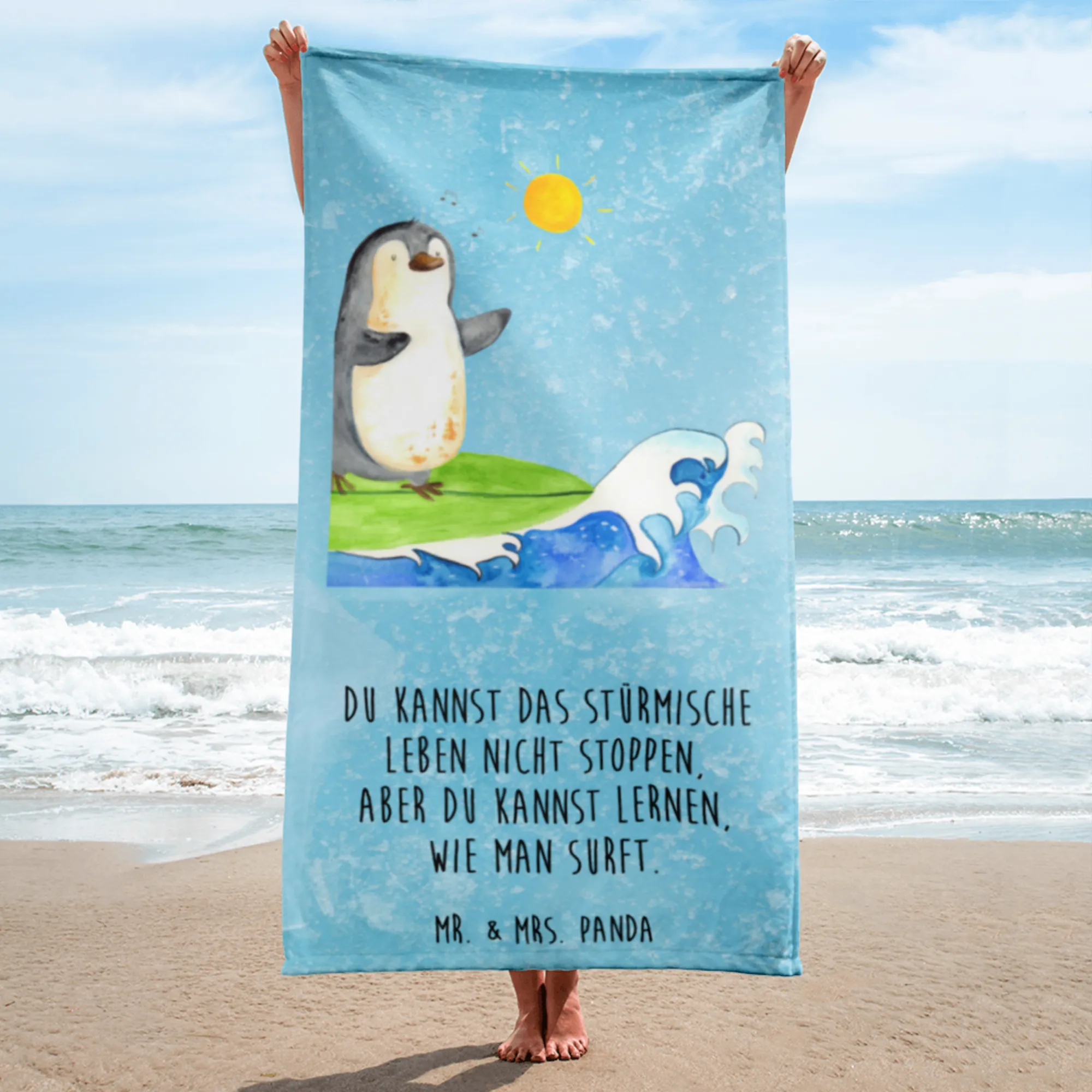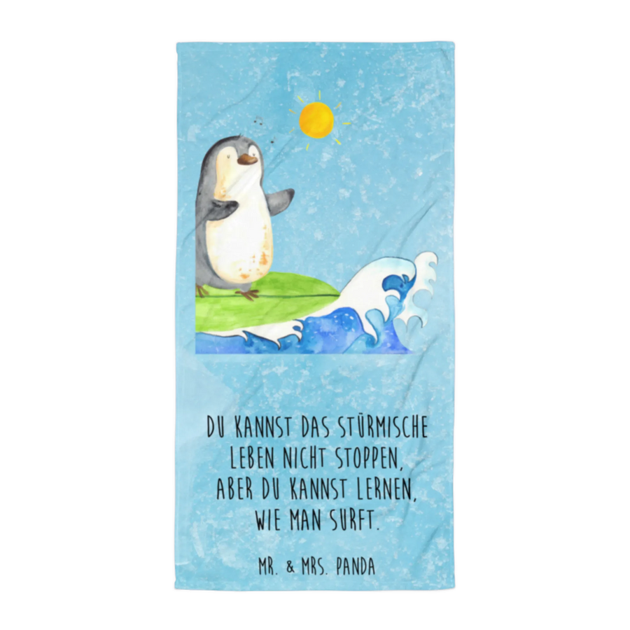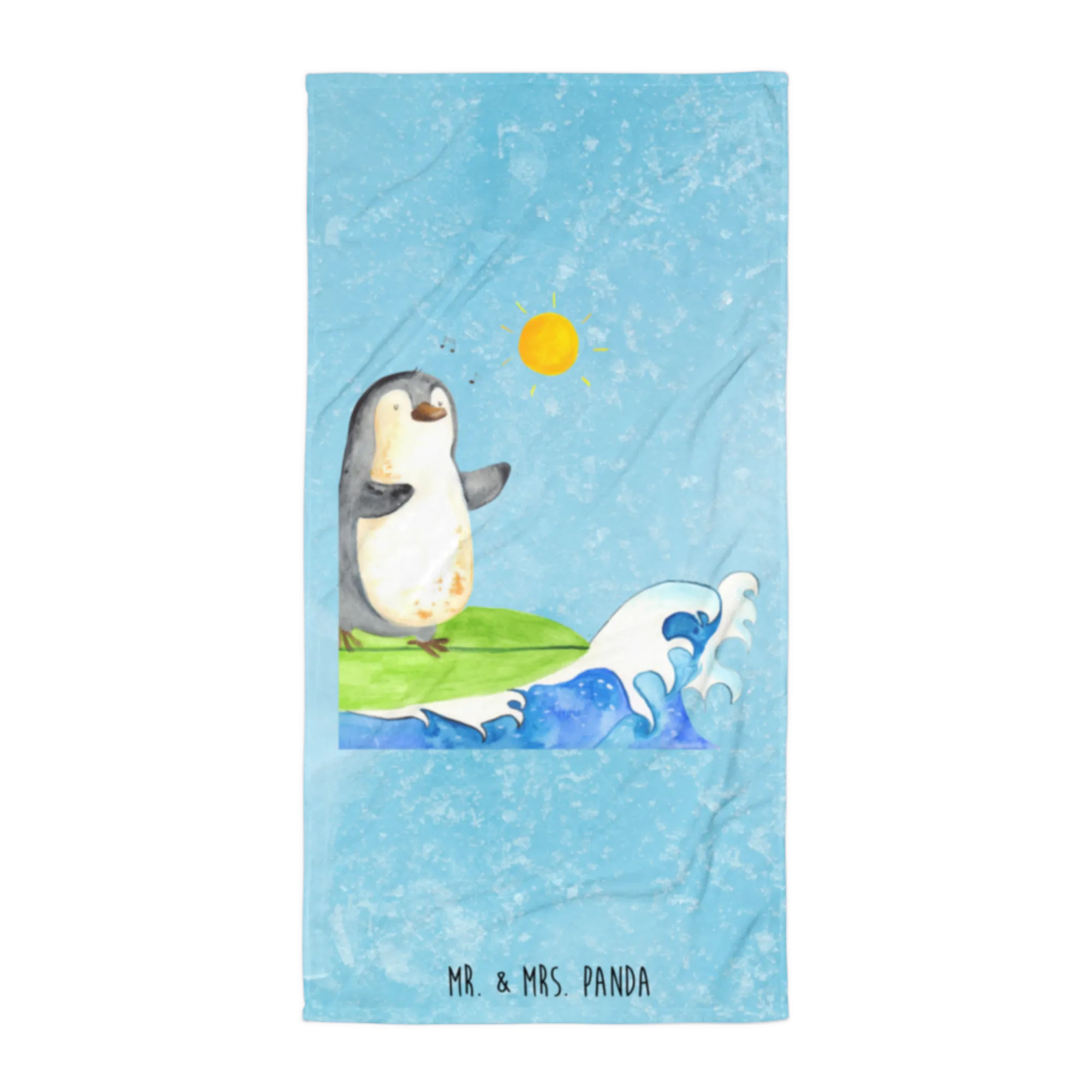 XL ręcznik kąpielowy Pingwin surfista - z napisem - Eisblau