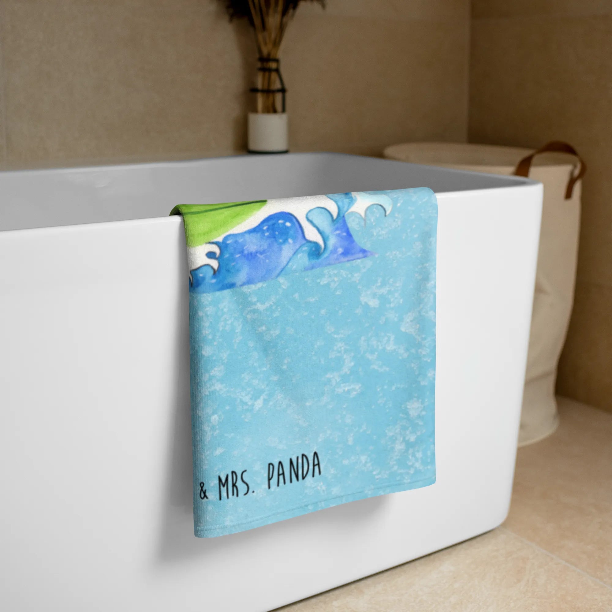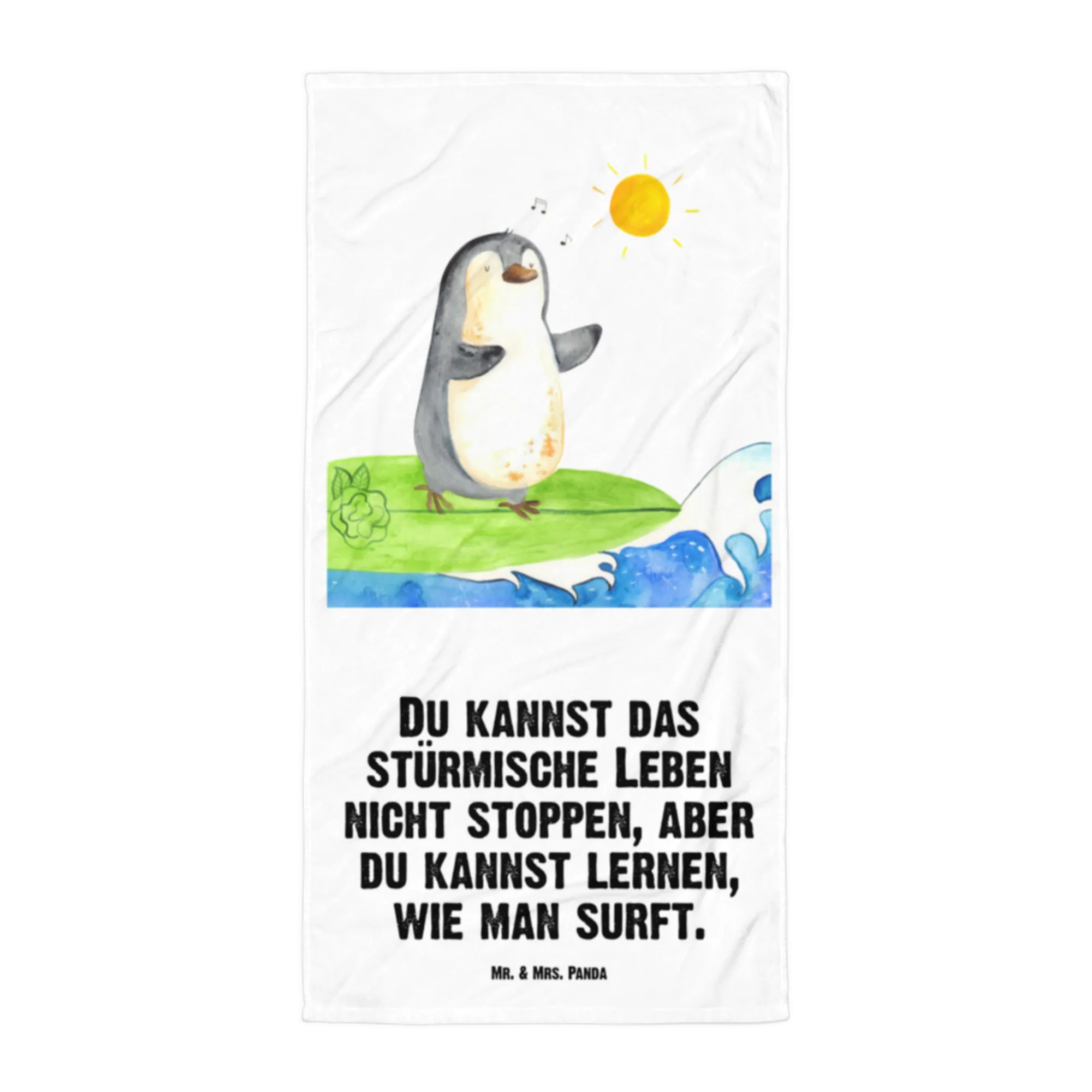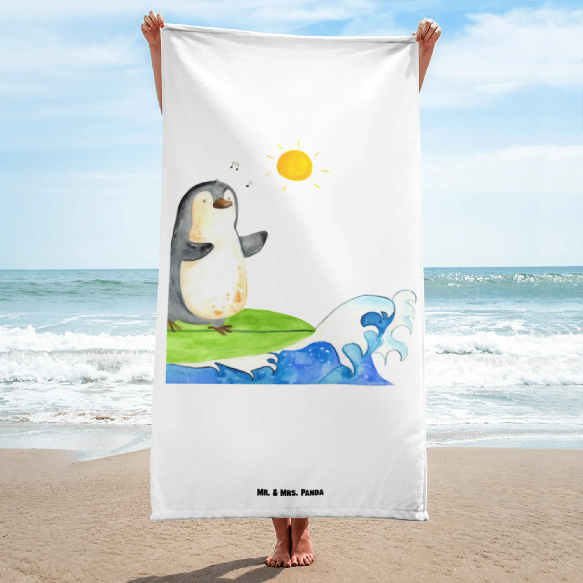 XL ręcznik kąpielowy Pingwin surfista - z napisem - Eisblau