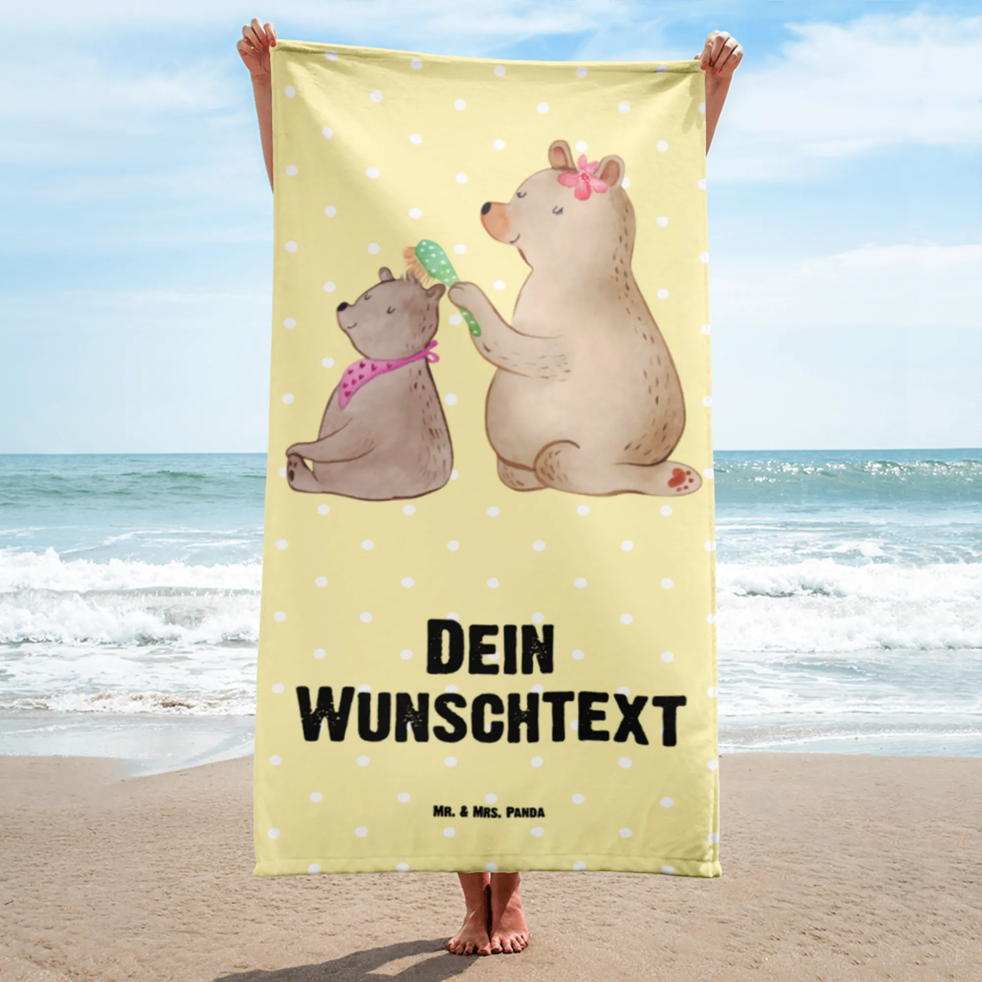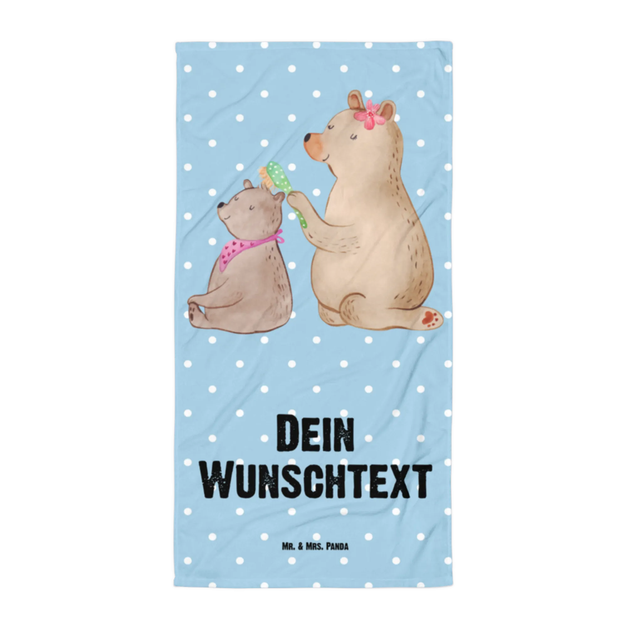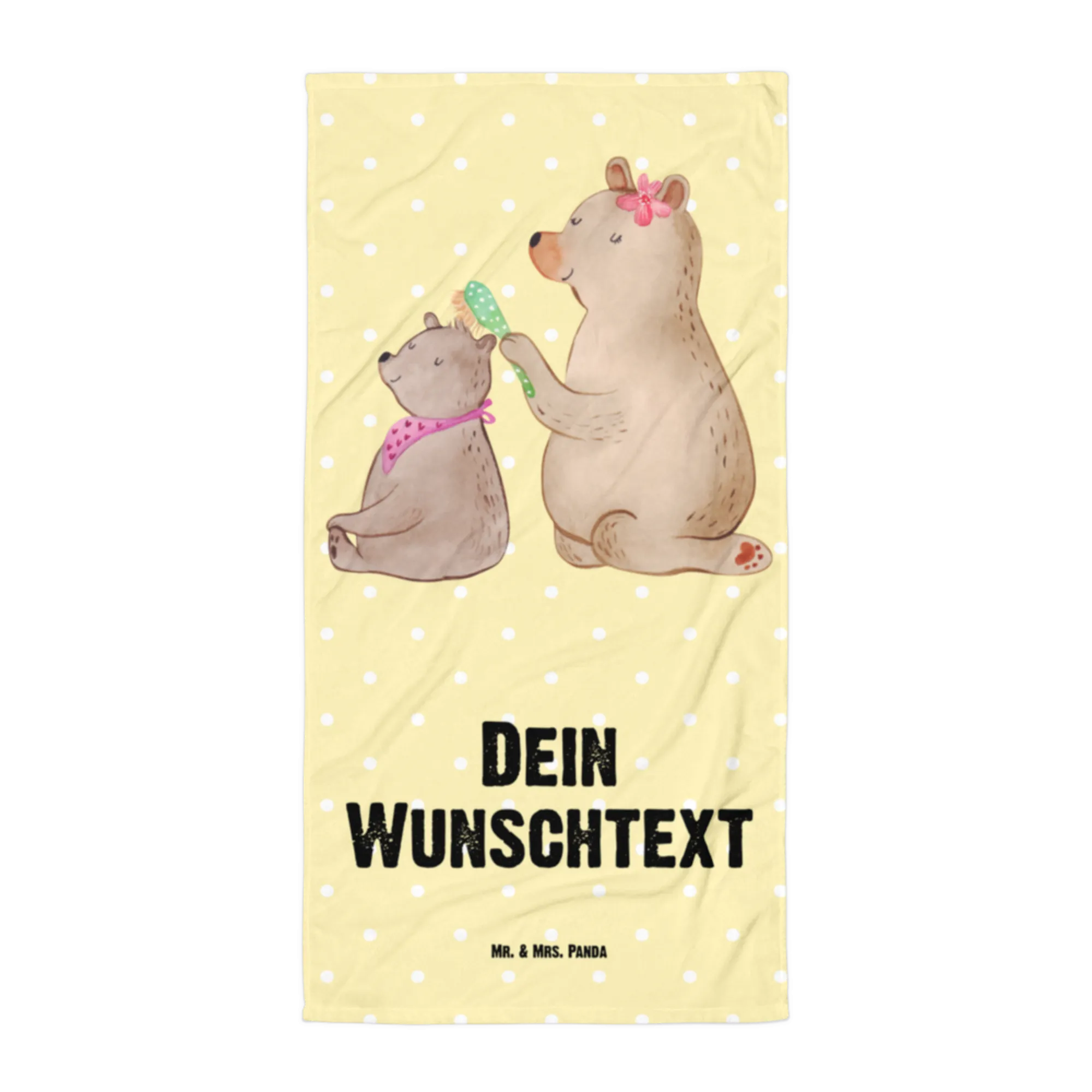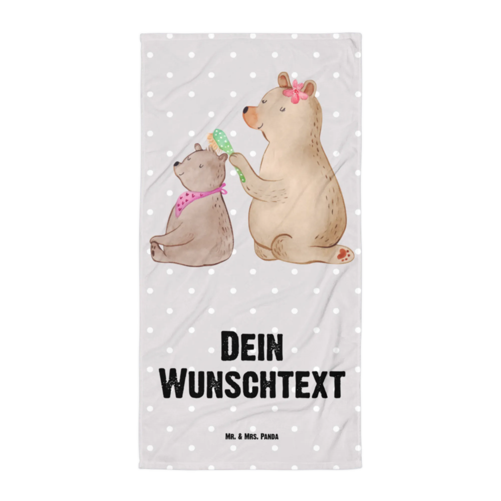 Das personalisierte Handtuch mit Namen von Mr. & Mrs. Panda ist der perfekte Begleiter für jeden Anlass! Mit dem wunderbaren Motiv Bär mit Kind aus unserer Familien Kollektion wird dieses Handtuch zum idealen Geschenk für all die tollen Mamas da draußen – sei es zum Muttertag, Geburtstag oder einfach nur, um "Danke" zu sagen.