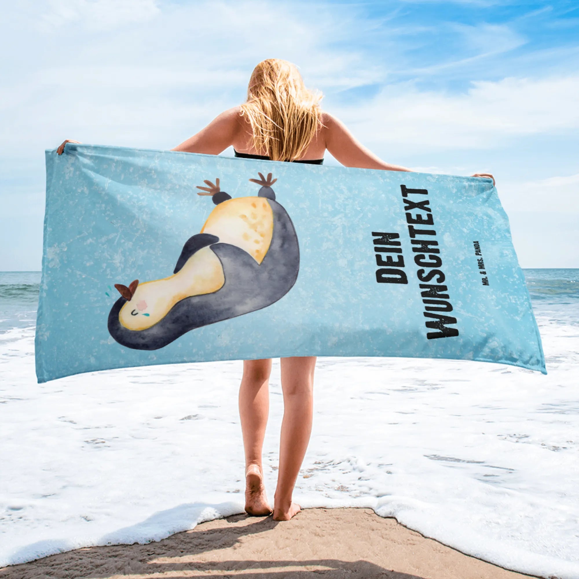 XXL ręcznik kąpielowy z imieniem pingwin Śmiech