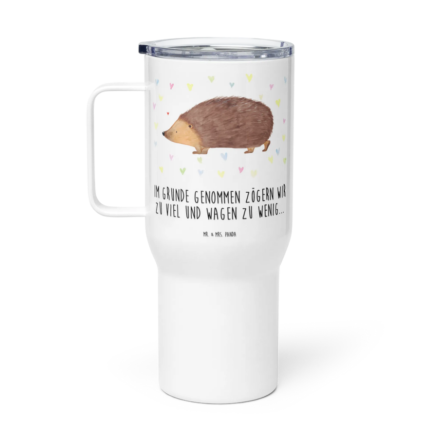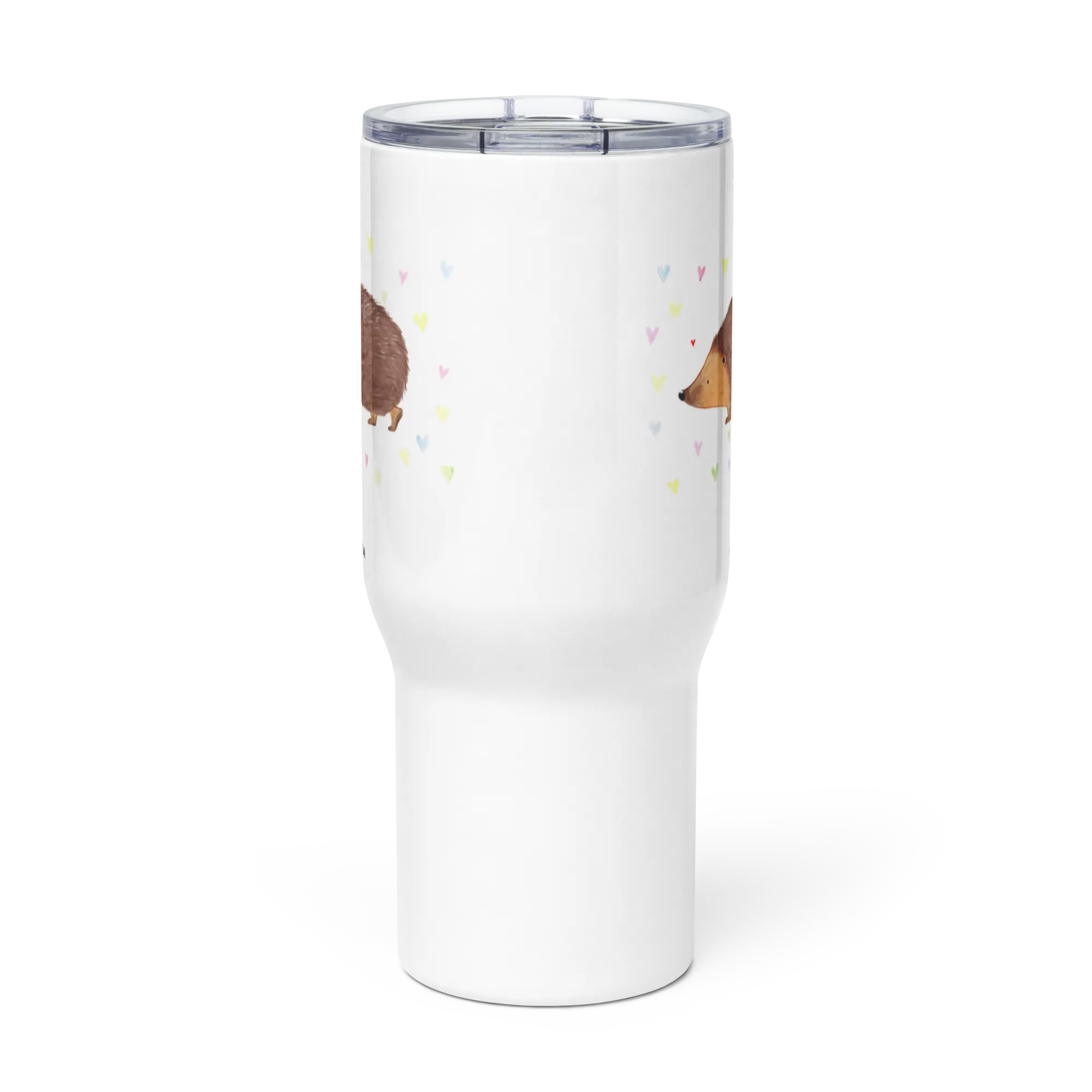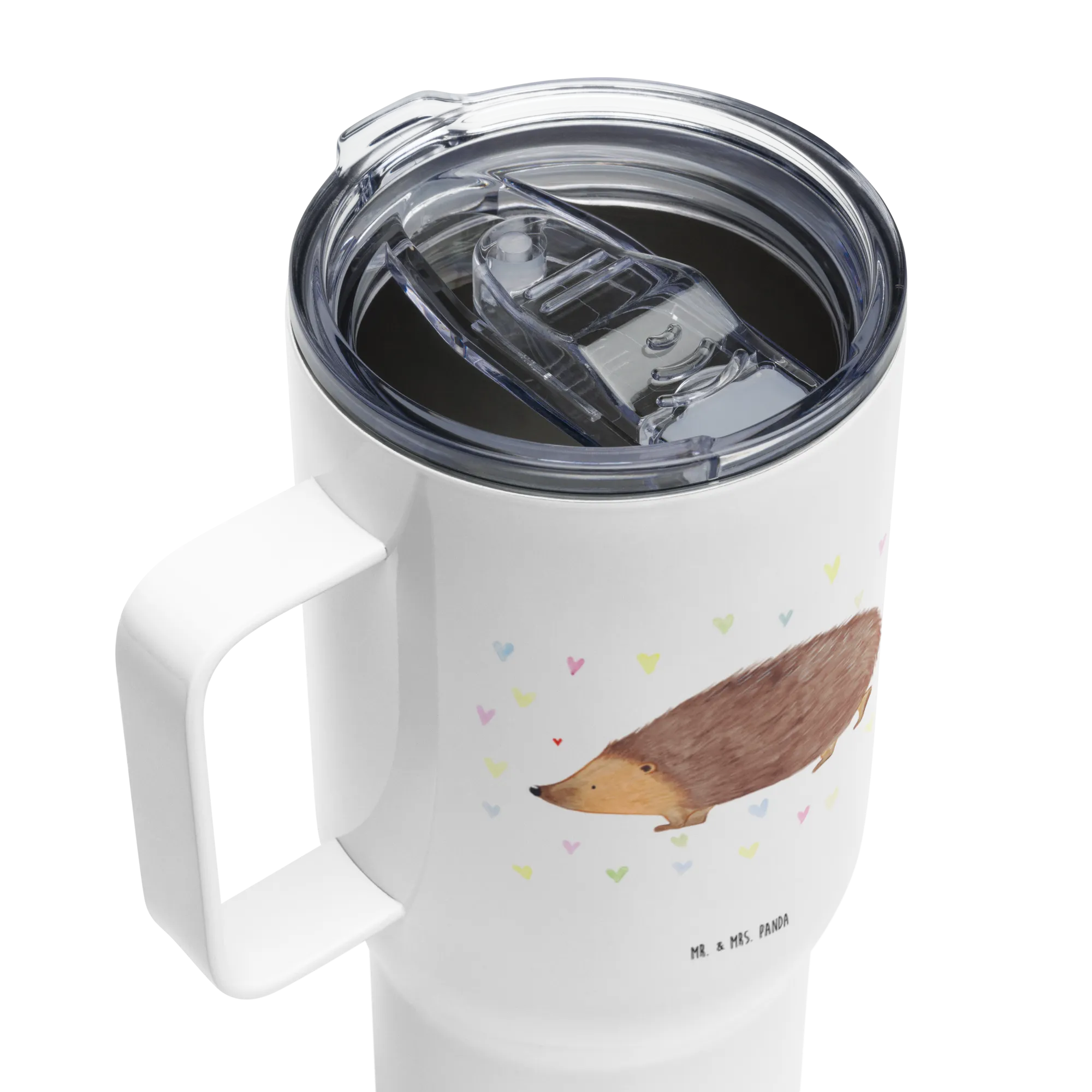 Dein neuer bester Freund für die Reise – der XXL Thermobecher mit dem zauberhaften Igel Herzen-Motiv aus der Small World Kollektion von Mr. & Mrs. Panda!