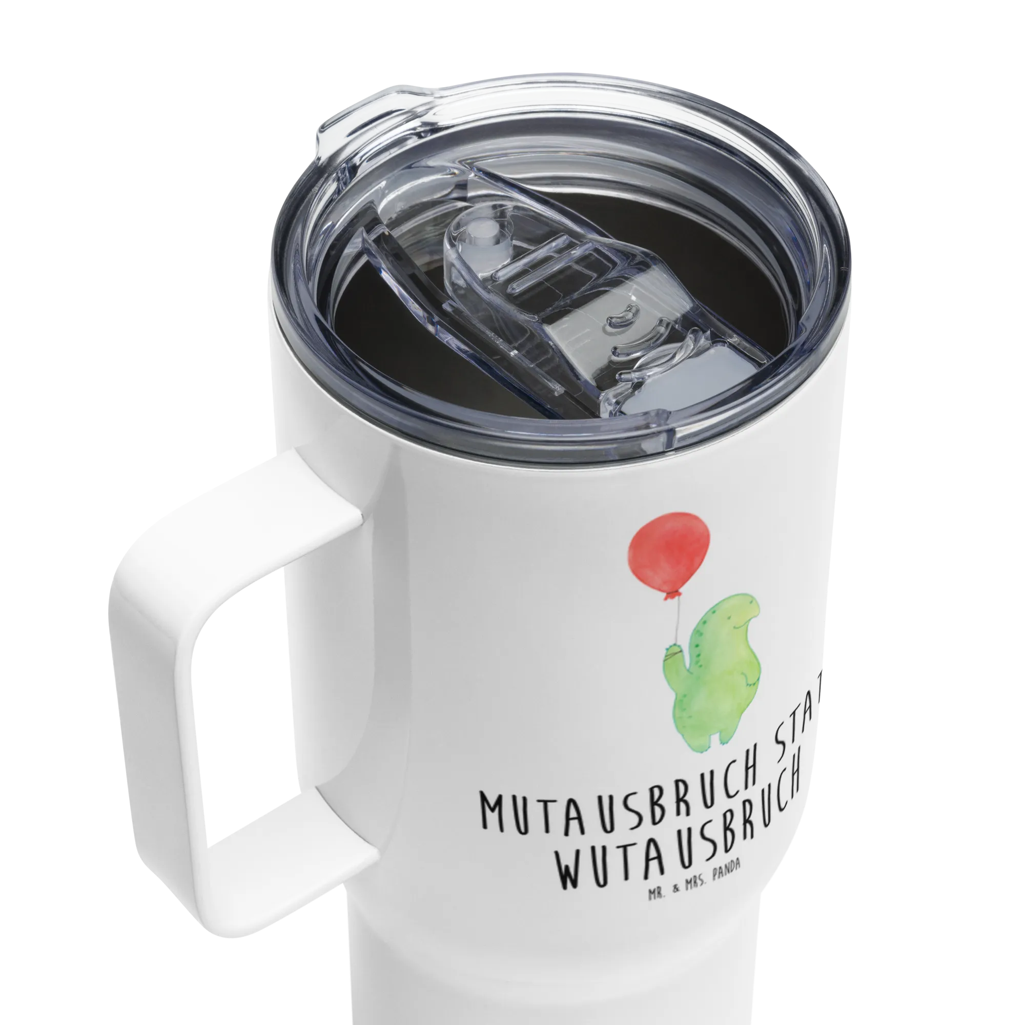 Die süße Schildkröte, die majestätisch an ihrem Luftballon schwebt, zaubert jedem ein Lächeln ins Gesicht. Der Slogan "Mutausbruch statt Wutausbruch" spricht besonders Menschen an, die einen positiven Lebensstil pflegen und Veränderungen mit Freude annehmen. Verschenke diesen einzigartigen Reisebecher an Freunde oder Familie, die die Natur und ihre Tierfreunde lieben. Ob für die nächste Reise, beim Pendeln zur Arbeit oder einfach beim Relaxen zu Hause – dieser Jumbo Becher ist ein treuer Begleiter in allen Lebenslagen.
