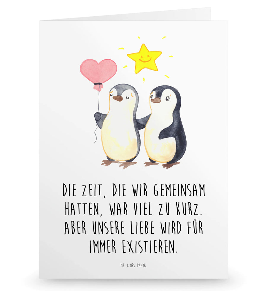 Die Botschaft "Die Zeit, die wir gemeinsam hatten, war viel zu kurz. Aber unsere Liebe wird für immer existieren." bringt die Gedanken und Gefühle auf den Punkt, die man oft in solch schwierigen Momenten ausdrücken möchte. Wenn du also jemanden kennst, der diese schwere Zeit durchlebt, ist diese Klappkarte das perfekte Geschenk, um Trost zu spenden.