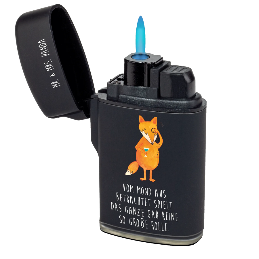 Entdecke das einzigartige Feuerzeug "Fuchs Lord" aus der zauberhaften Fuchs Kollektion von Mr. & Mrs. Panda! Dieses hochwertige Sturmfeuerzeug ist nicht nur ein praktisches Zubehör, sondern auch ein kleines Kunstwerk mit einem liebevoll gestalteten Motiv. Der stattliche Fuchs, der mit einem Monokel am Auge den Betrachter anlacht, wird dich jedes Mal erfreuen, wenn du es benutzt. Handgezeichnet und mit viel Liebe zum Detail, strahlt dieses Feuerzeug Charakter und Stil aus. Es ist ideal für alle, die ihre Freunde mit einem einzigartigen Geschenk überraschen möchten oder sich selbst etwas Gutes tun wollen!
