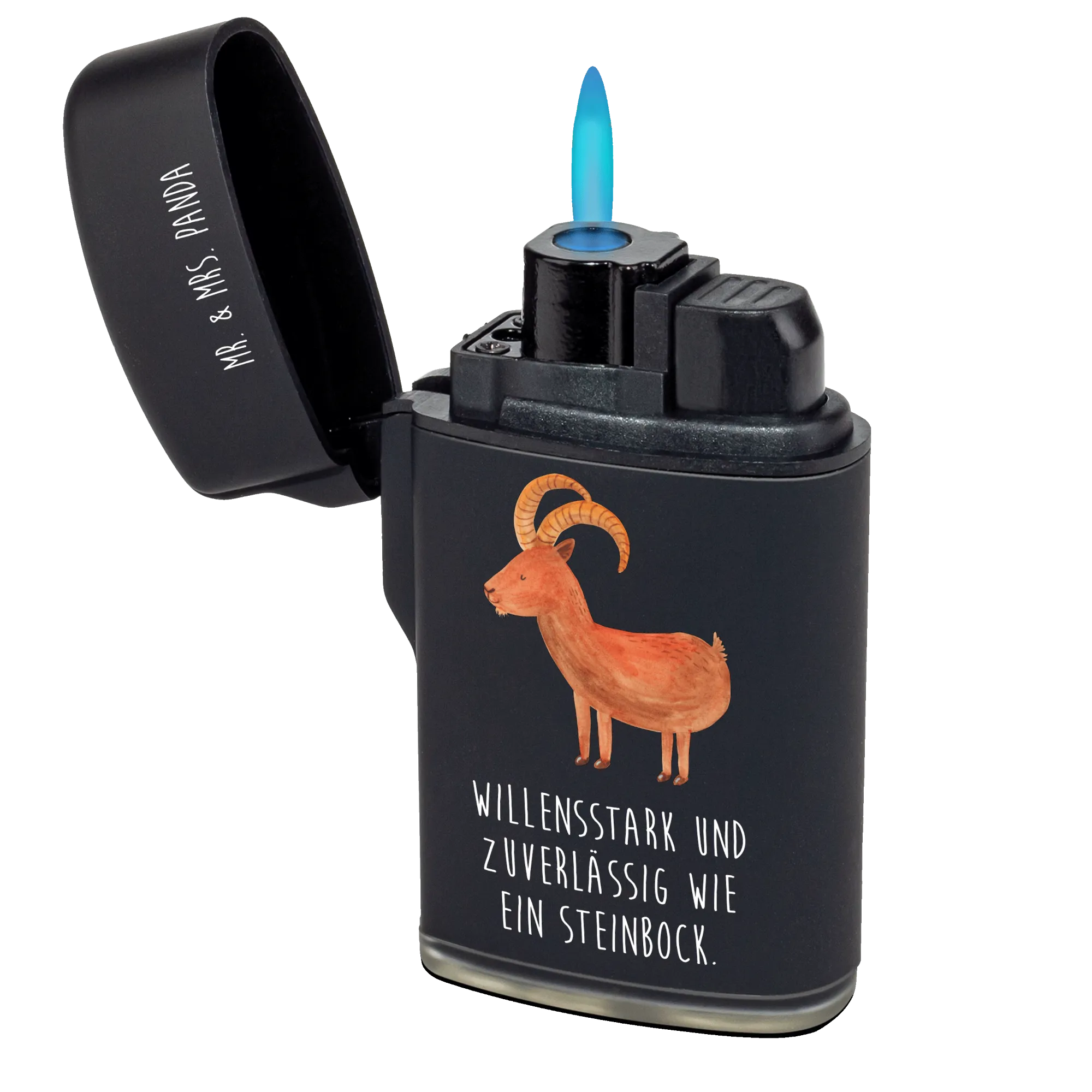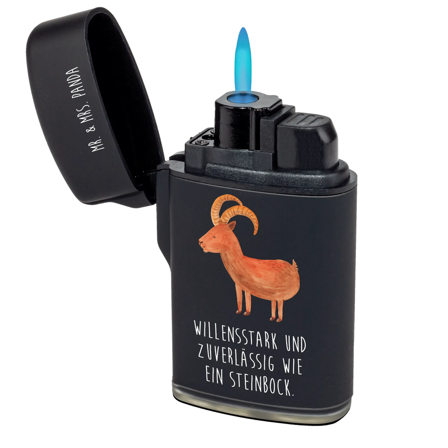 Jeder Steinbock wird sich über dieses coole Feuerzeug freuen, das die Eigenschaften seines Sternzeichens widerspiegelt. Der Spruch "Willensstark und zuverlässig wie ein Steinbock" bringt nicht nur ein Lächeln hervor, sondern gibt auch einen kleinen Einblick in die Charakterzüge von Steinböcken.