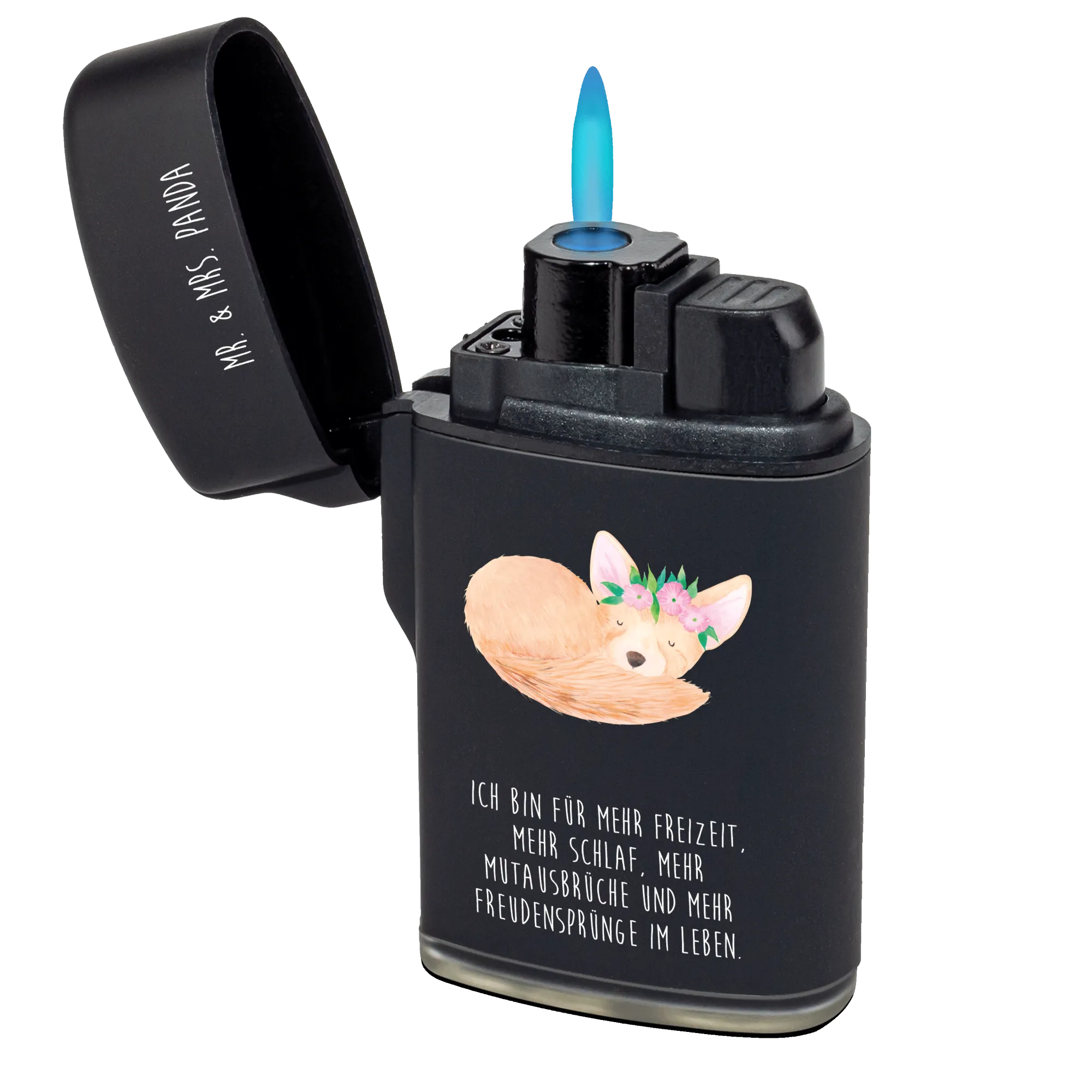 Feuerzeug Wüstenfuchs Blumenkranz - mit Spruch