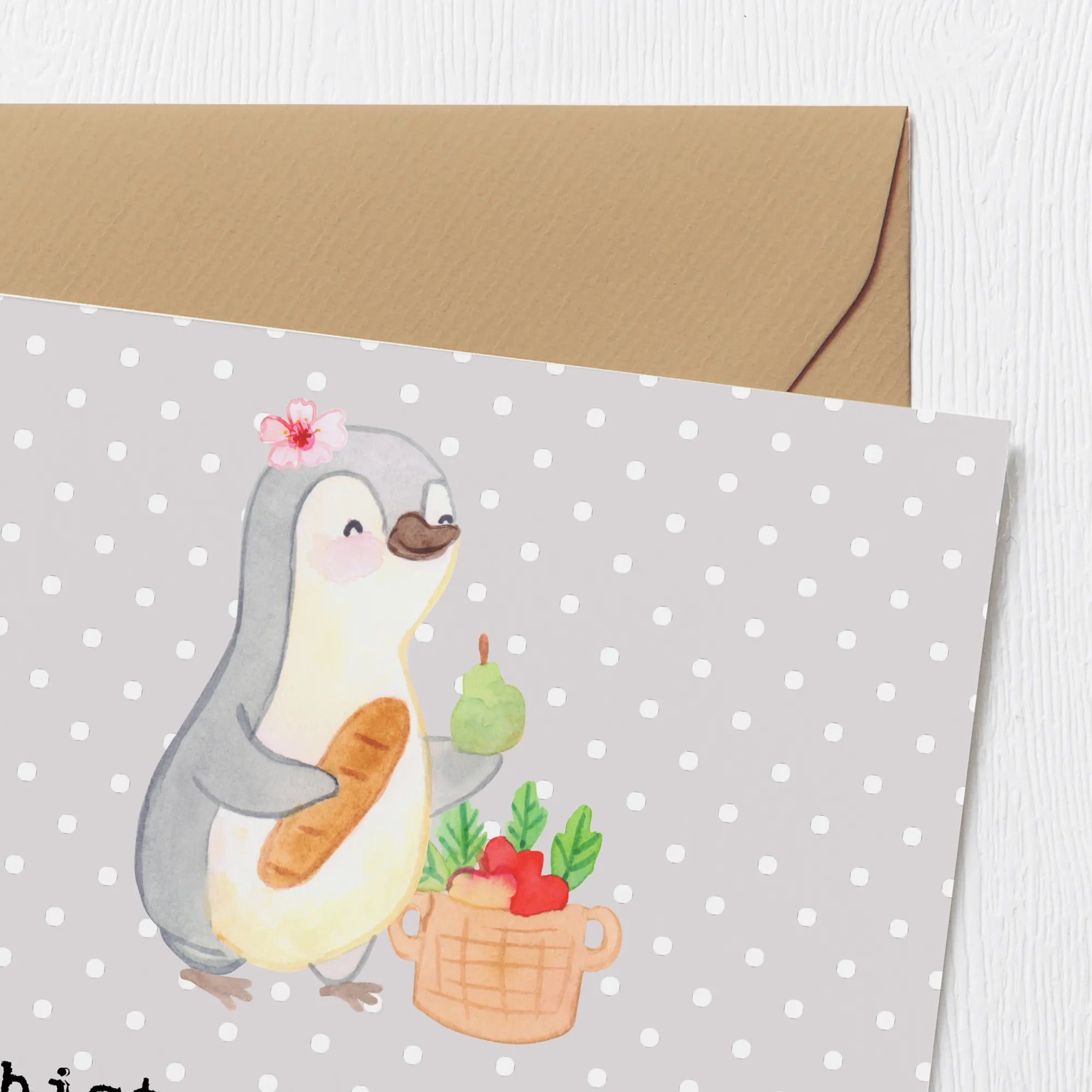 Karta Deluxe sprzedawczyni owoców serce - z napisem - Pastelowy szary