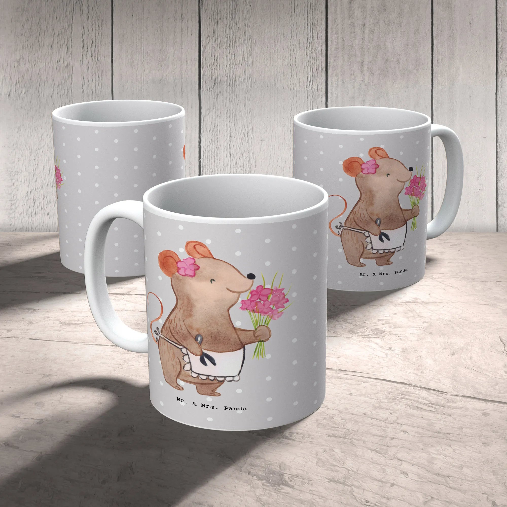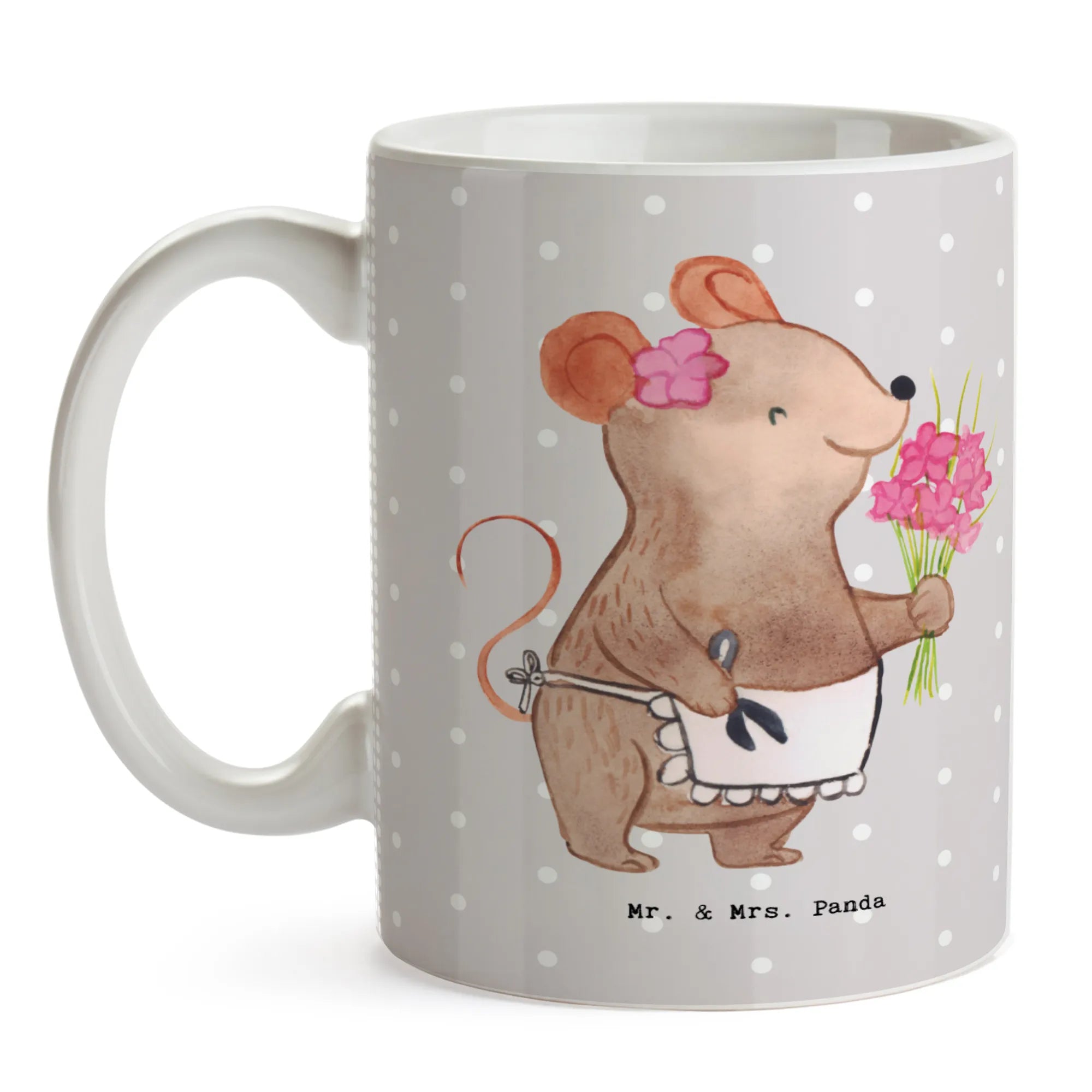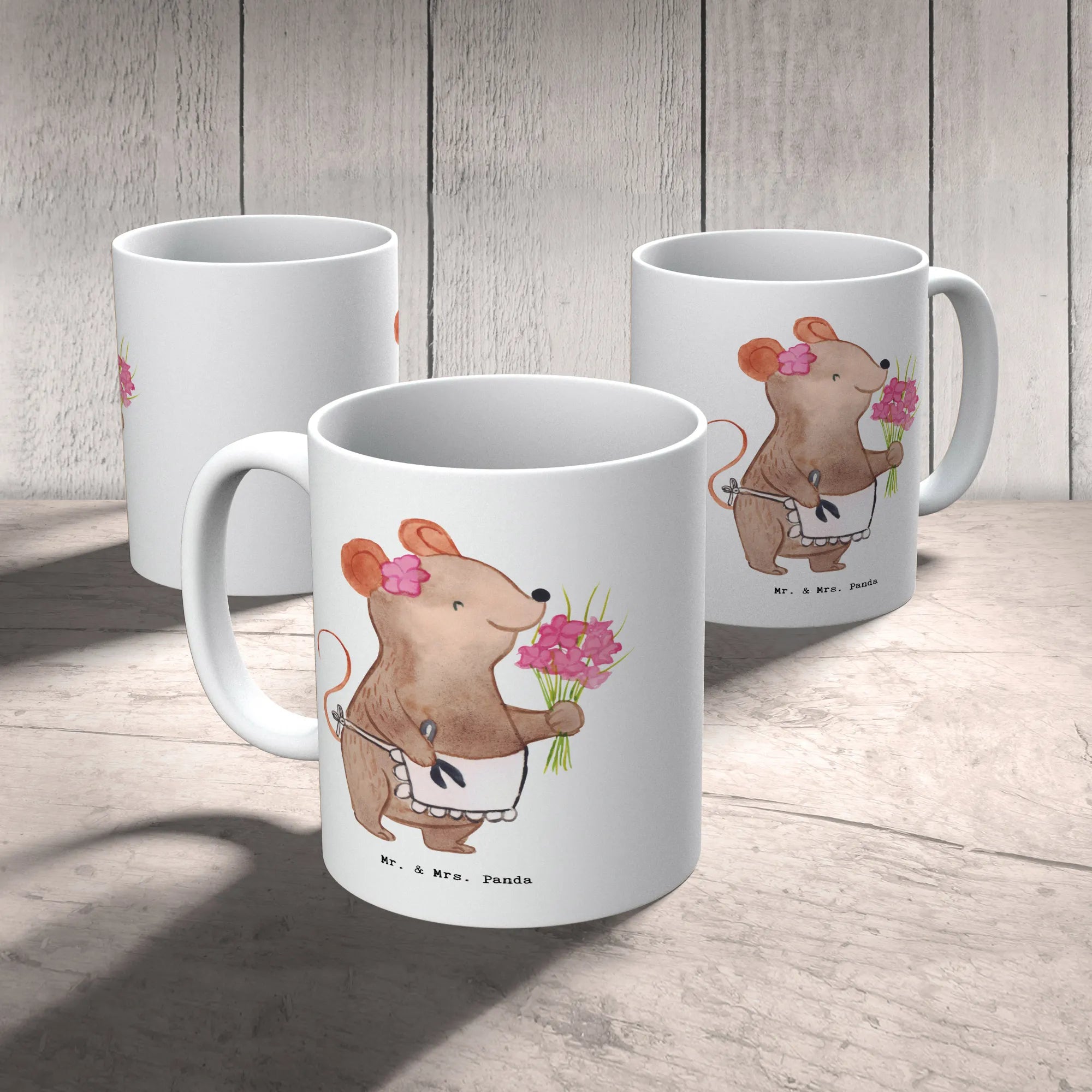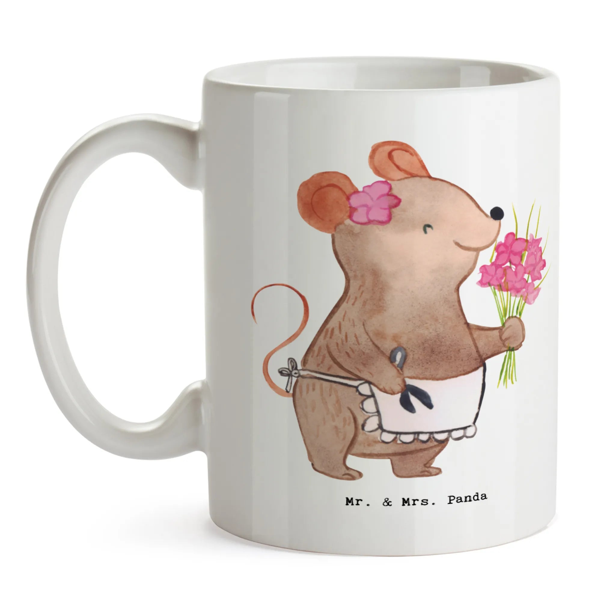 Kubek kwiaciarka serce Zawód, Wykształcenie, Jubileusz, Pożegnanie, Emerytura, Kolega, Koleżanka, Prezent, Dawać, Pracownik, Współpracownik, Firma, Dziękuję, Dziękuję bardzo