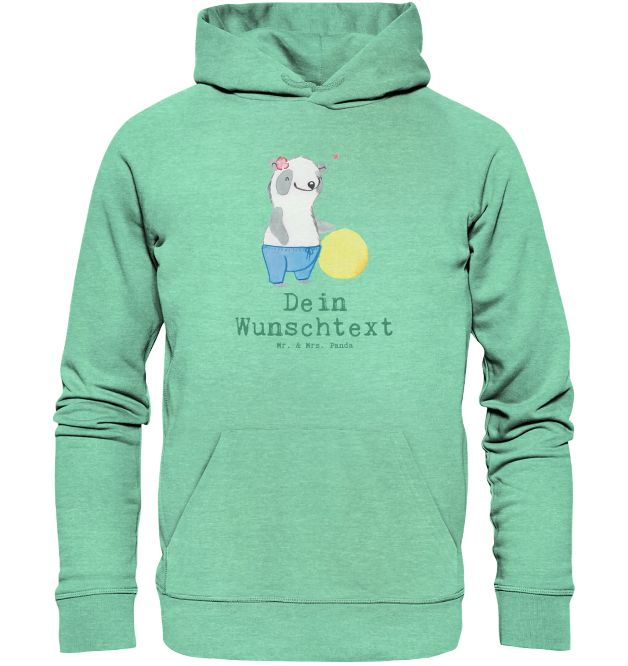 Der Hoodie aus 85 % Bio-Baumwolle und 15 % recyceltem Polyester sorgt nicht nur für einen tollen Tragekomfort, sondern zeigt auch deine Wertschätzung für die Menschen, die in diesem wichtigen Beruf Menschen helfen. Mit dem süßen Panda-Motiv, der einen Gymnastikball in der Hand hält, bringst du ein Lächeln auf die Gesichter deiner Freunde oder Kollegen.