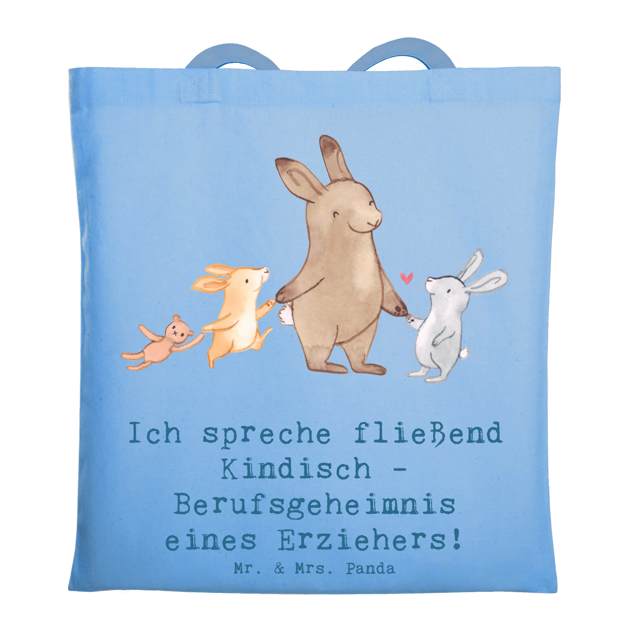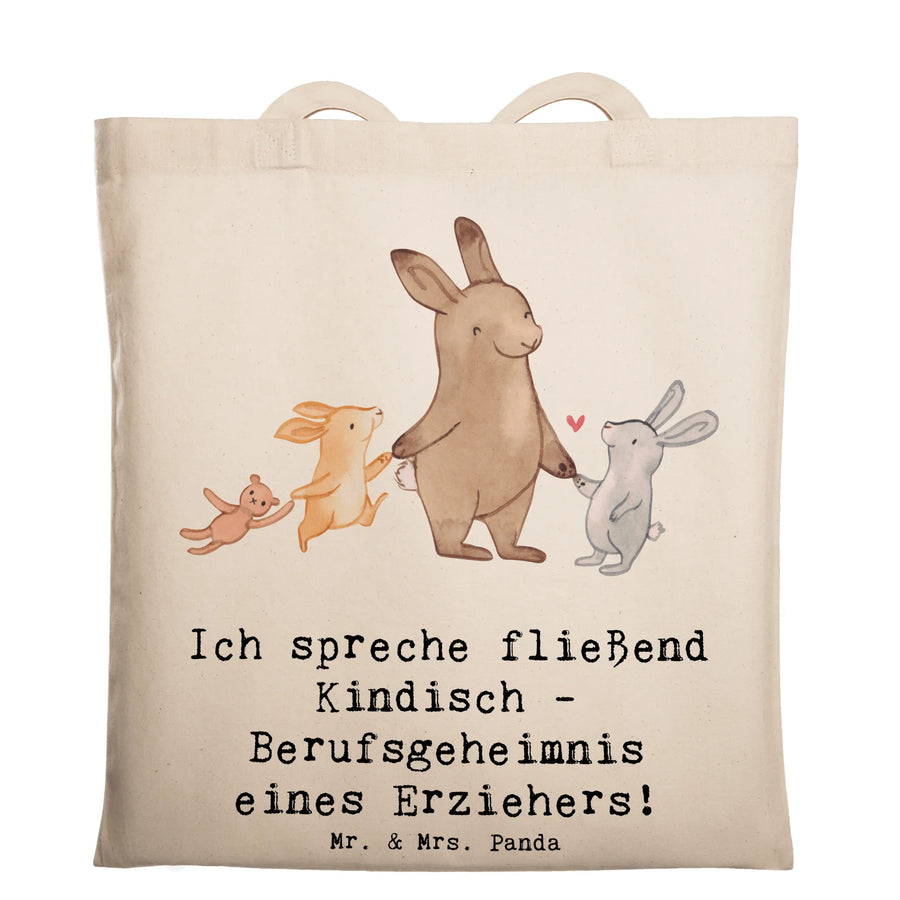 Suchst Du nach dem perfekten Geschenk für Erzieher oder Erzieherinnen? Dann ist unsere Tragetasche mit dem tollen Motiv "Ich spreche fließend Kindisch - Berufsgeheimnis eines Erziehers!" genau das Richtige für Dich! Diese hochwertige Stofftasche von Mr. & Mrs. Panda ist nicht nur praktisch, sondern bringt auch ein Lächeln in den Alltag. Egal, ob als Begleiter für den Kindergarten, beim Einkaufen oder für den nächsten Ausflug - diese Tragetasche ist vielseitig einsetzbar und ein echter Hingucker.