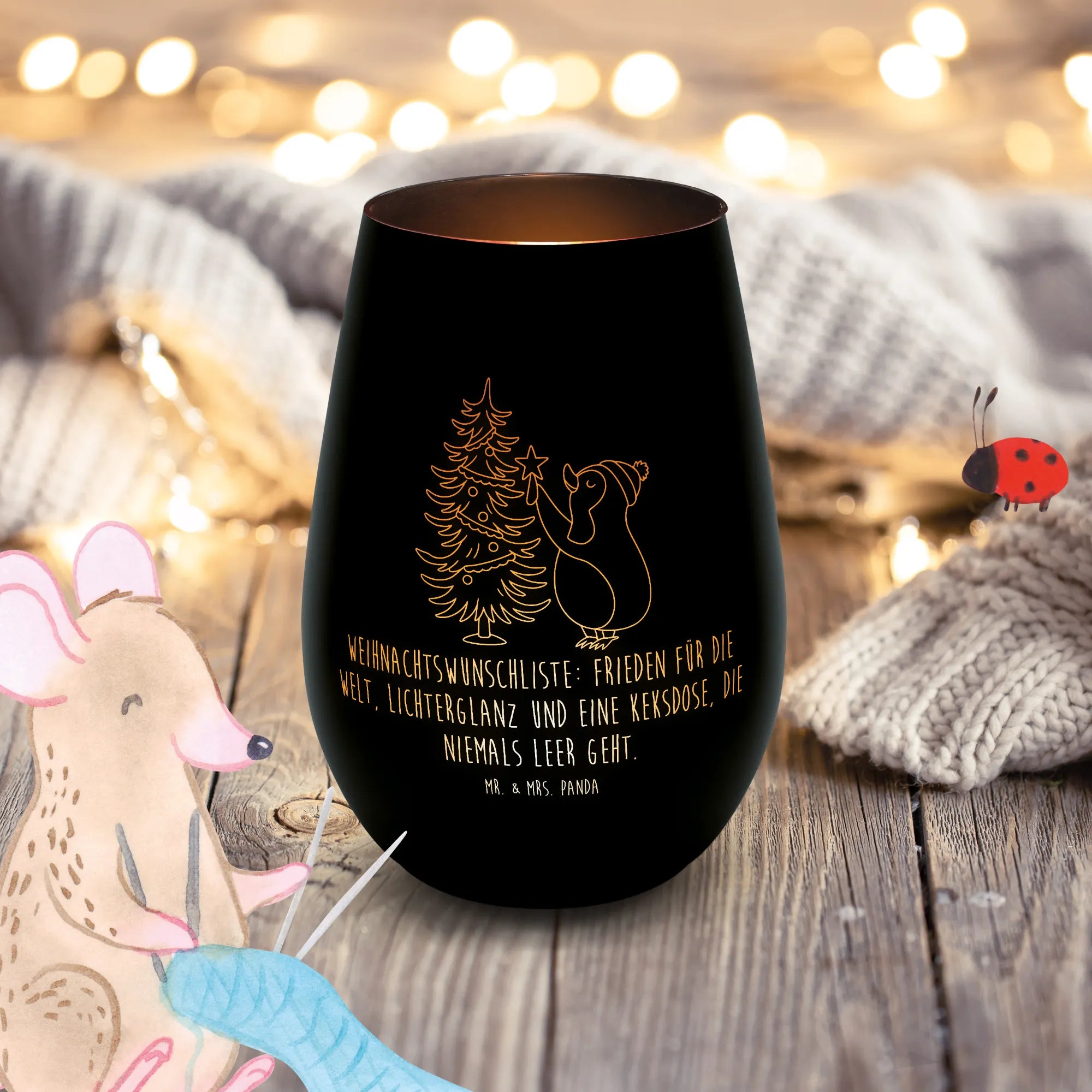 Gold Windlicht Pinguin Weihnachtsbaum - Schwarz