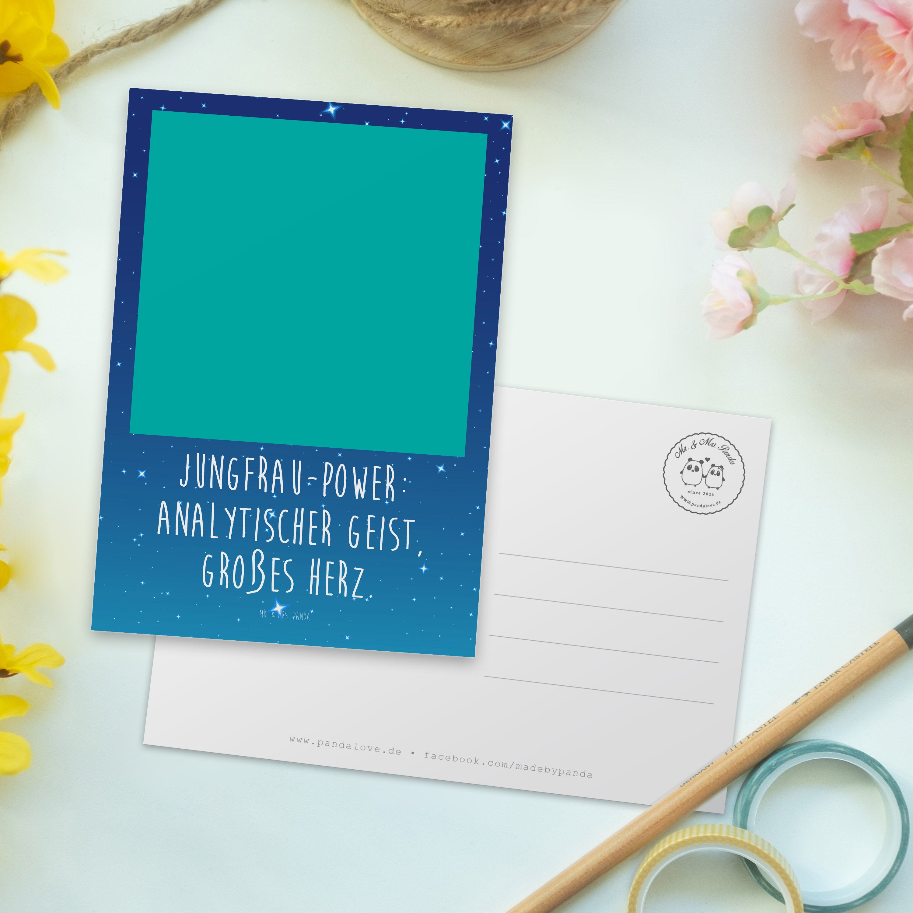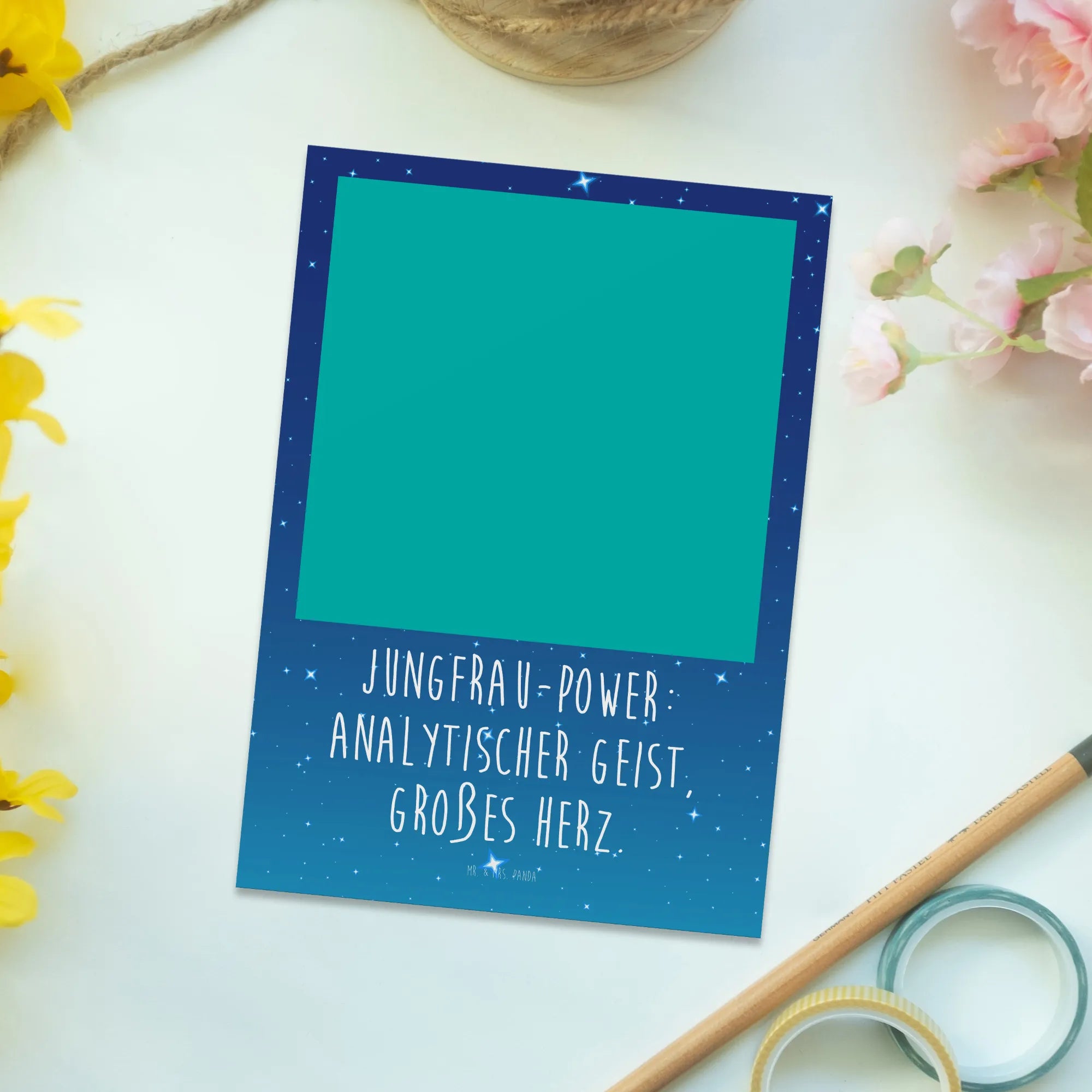 Umgeben von kleinen Herzen vermittelt das Design eine warme, positive Atmosphäre, perfekt für jeden, der das Sternzeichen Jungfrau schätzt. Die hochwertige Verarbeitung aus 300 Gramm Karton sorgt dafür, dass die Karte nicht nur schön aussieht, sondern auch lange hält.