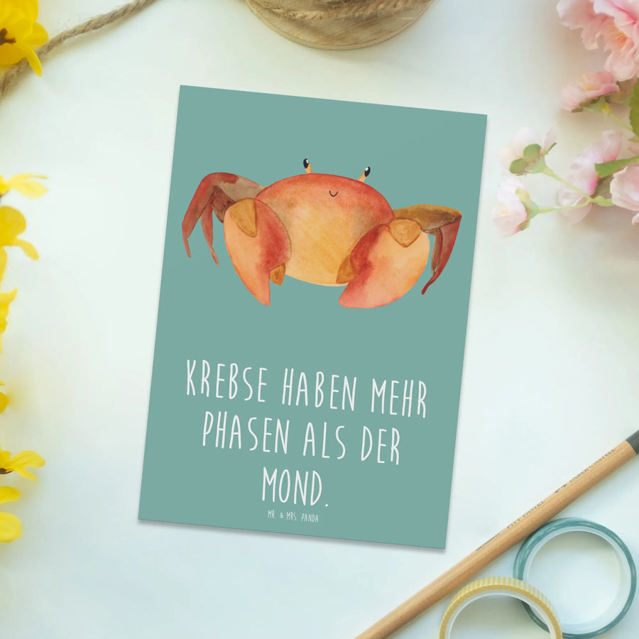 Lass die magische Welt der Sternzeichen mit dieser einzigartigen Karte für Krebs in dein Leben und das Leben deiner Liebsten einziehen. Perfekt sind auch weitere Artikel aus der Kollektion für ein rundum gelungenes Geschenk. Verschenke Freude und Charakter – die perfekte Wahl für alle, die an die besonderen Eigenschaften des Krebse glauben. Ideal für Freunde, Familie oder einfach zur Selbstbehaltung. Einzigartig, voller Charme und mit einem Hauch von Astrologie, das ist die Krebs-Postkarte von Mr. & Mrs. Panda.