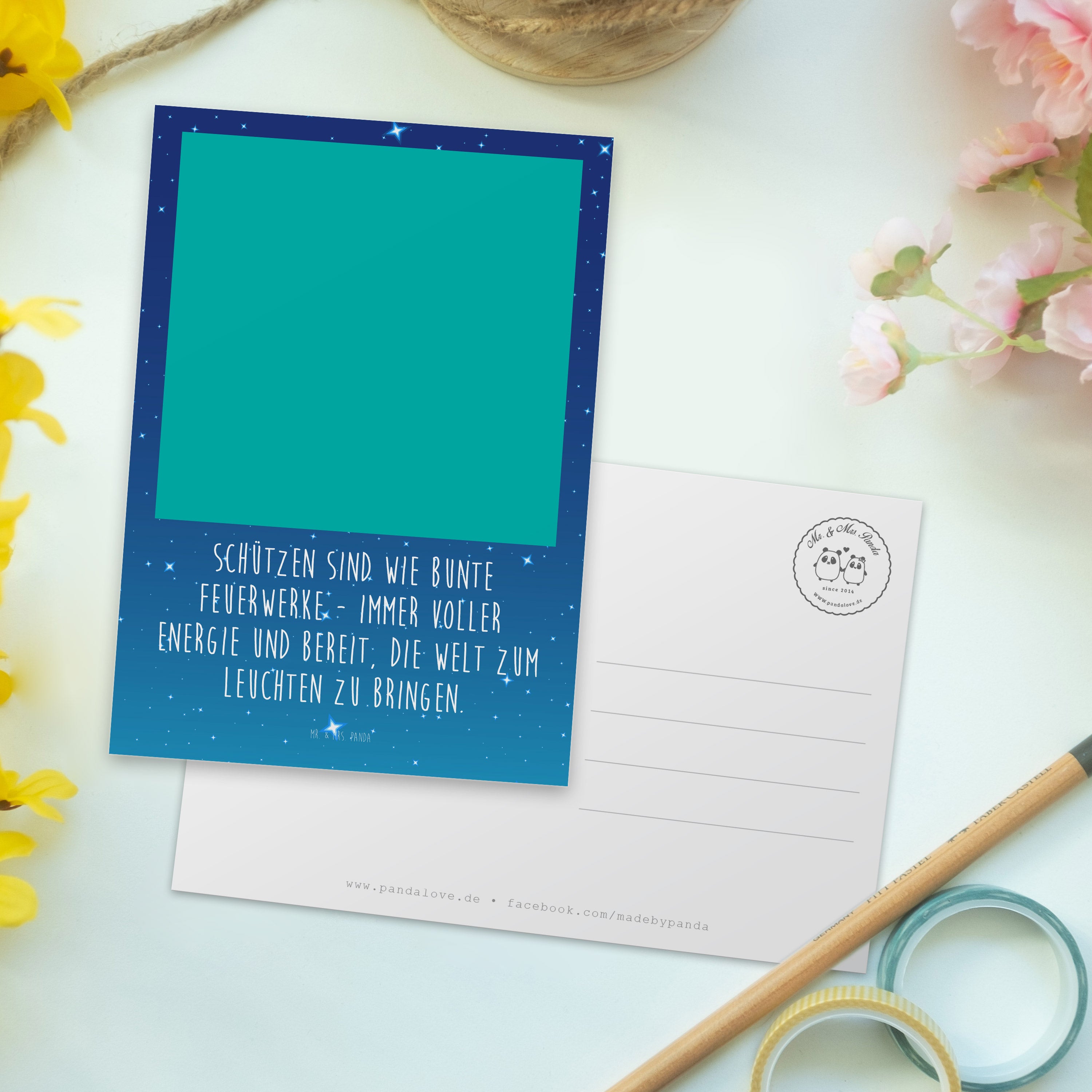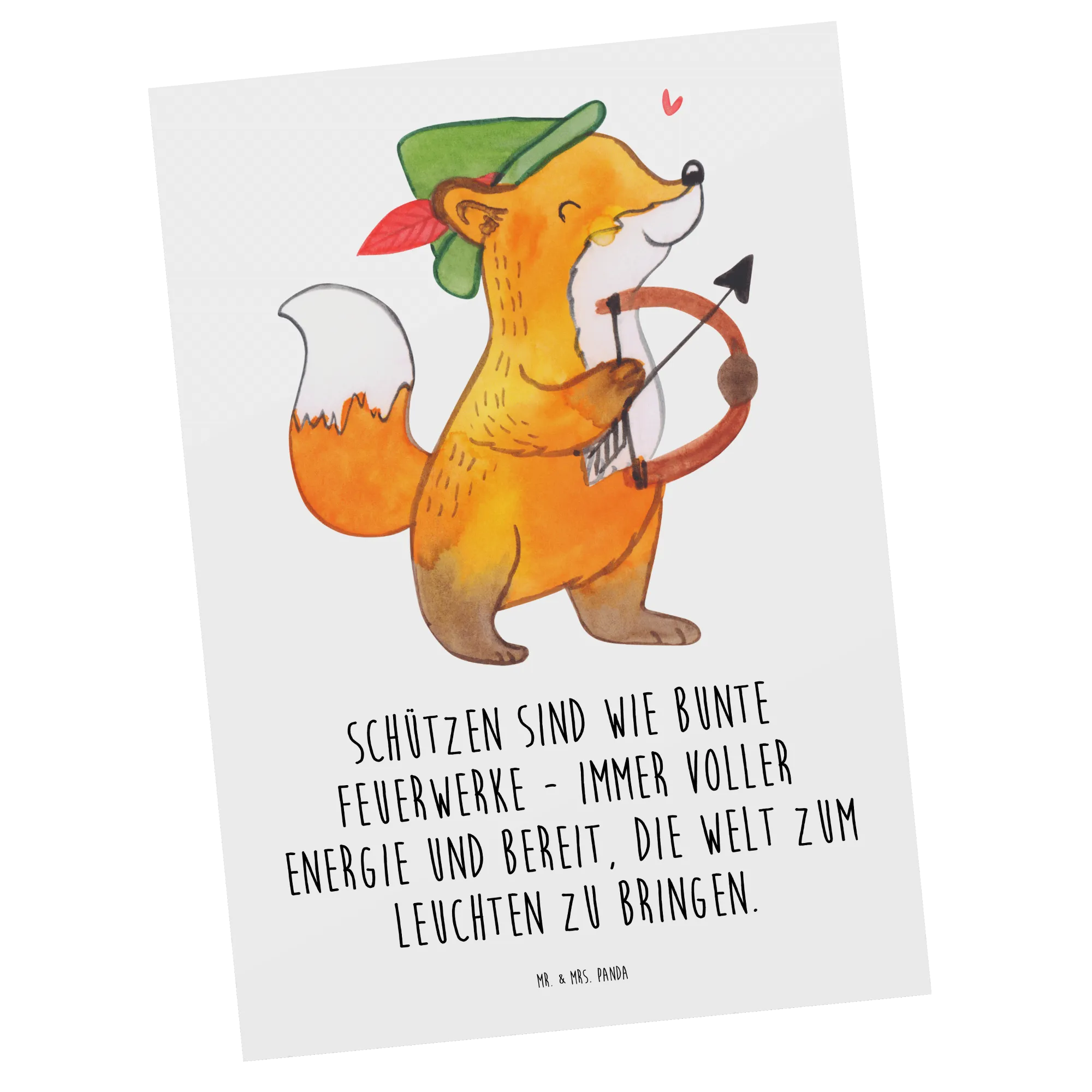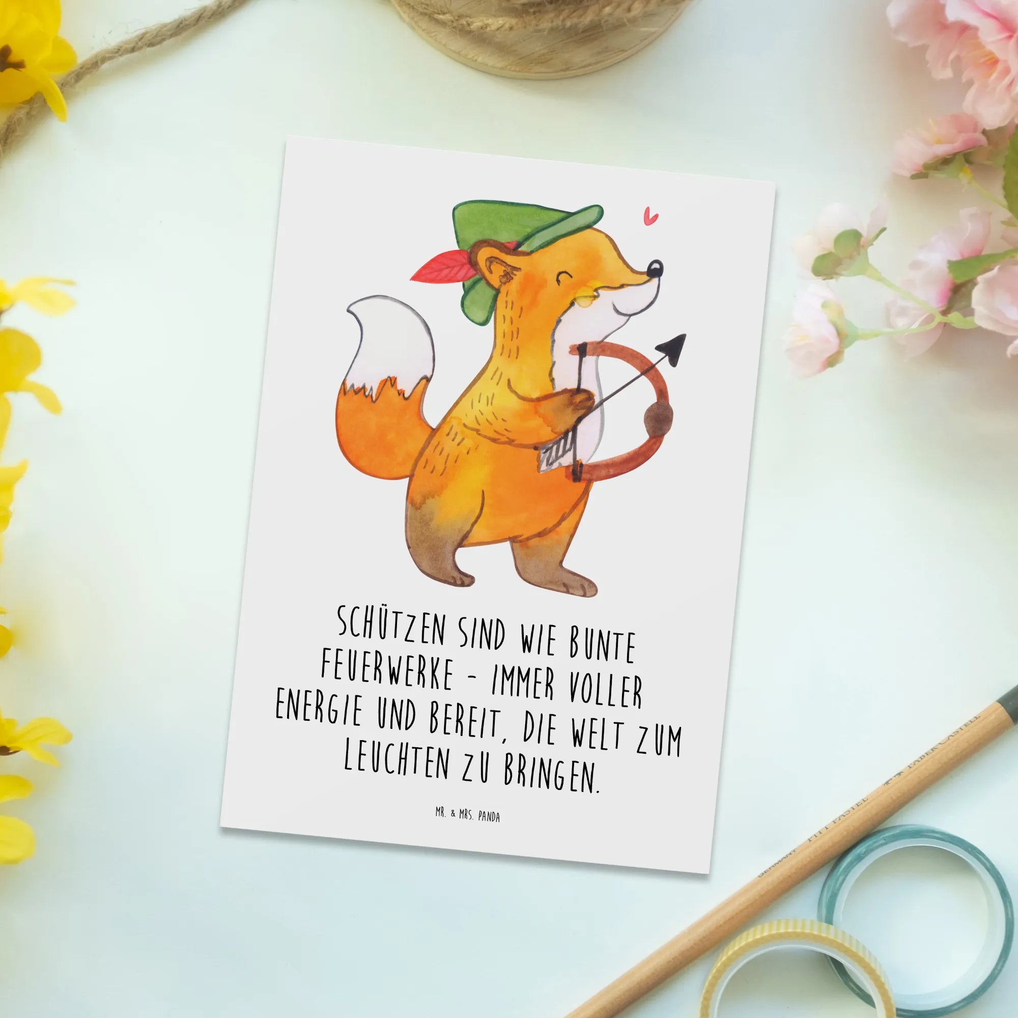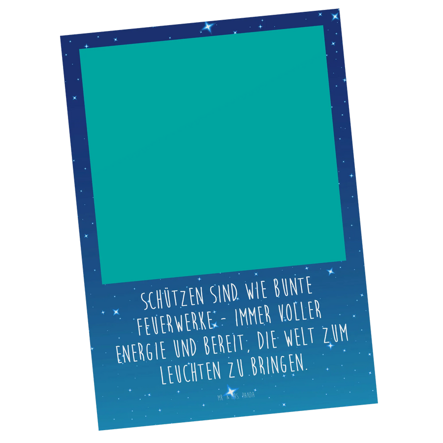 Entdecke die zauberhafte Postkarte Schütze Astrologie aus der einzigartigen Kollektion Sternzeichen von Mr. & Mrs. Panda! Diese liebevoll handgezeichnete Karte zaubert ein Lächeln auf jedes Gesicht und ist das perfekte Geschenk für alle, die das Sternzeichen Schütze lieben oder selbst unter diesem Zeichen geboren wurden.