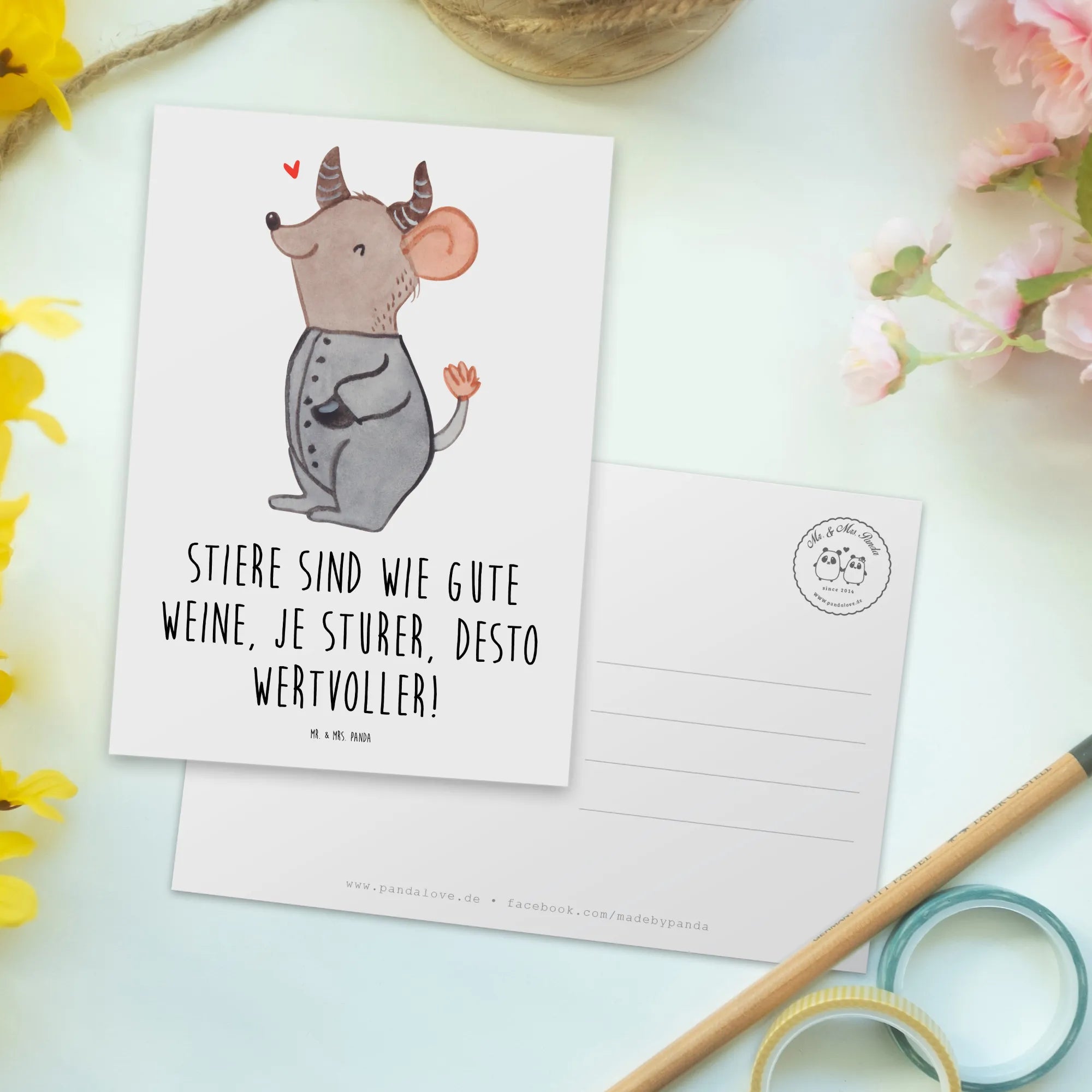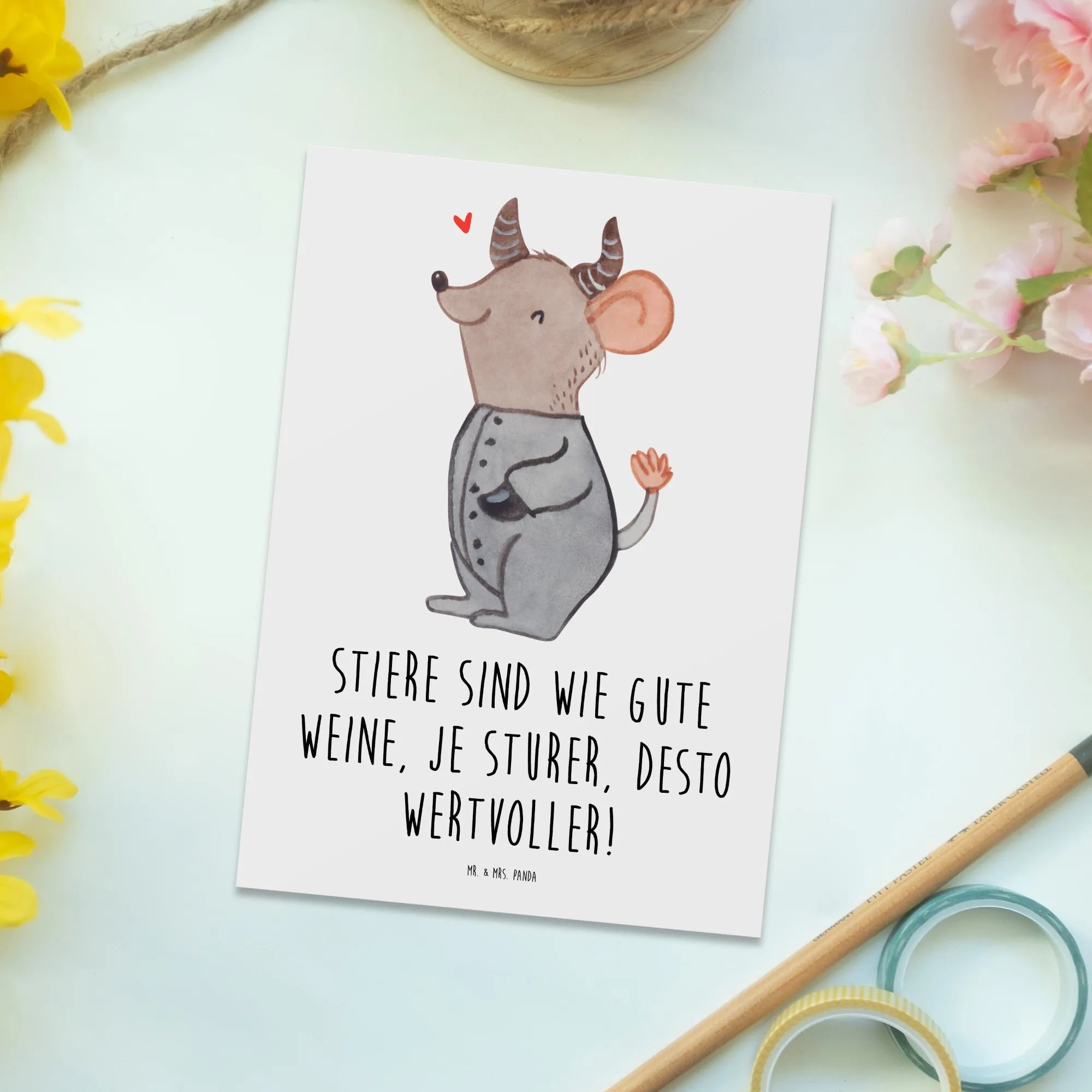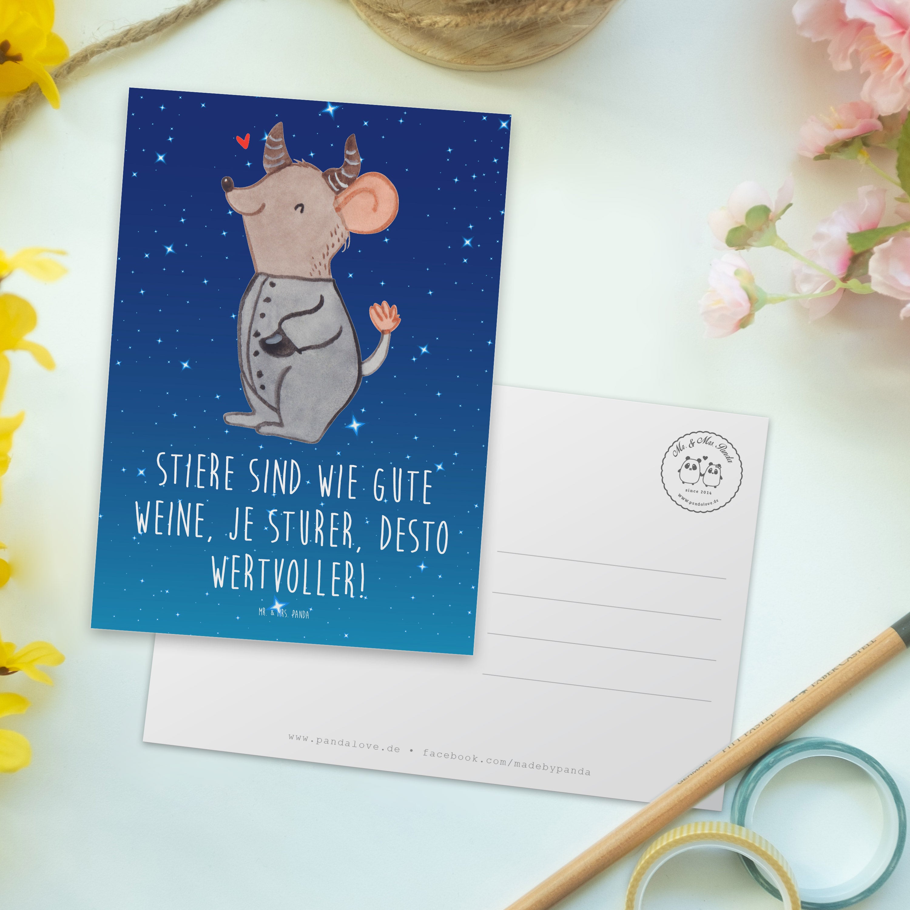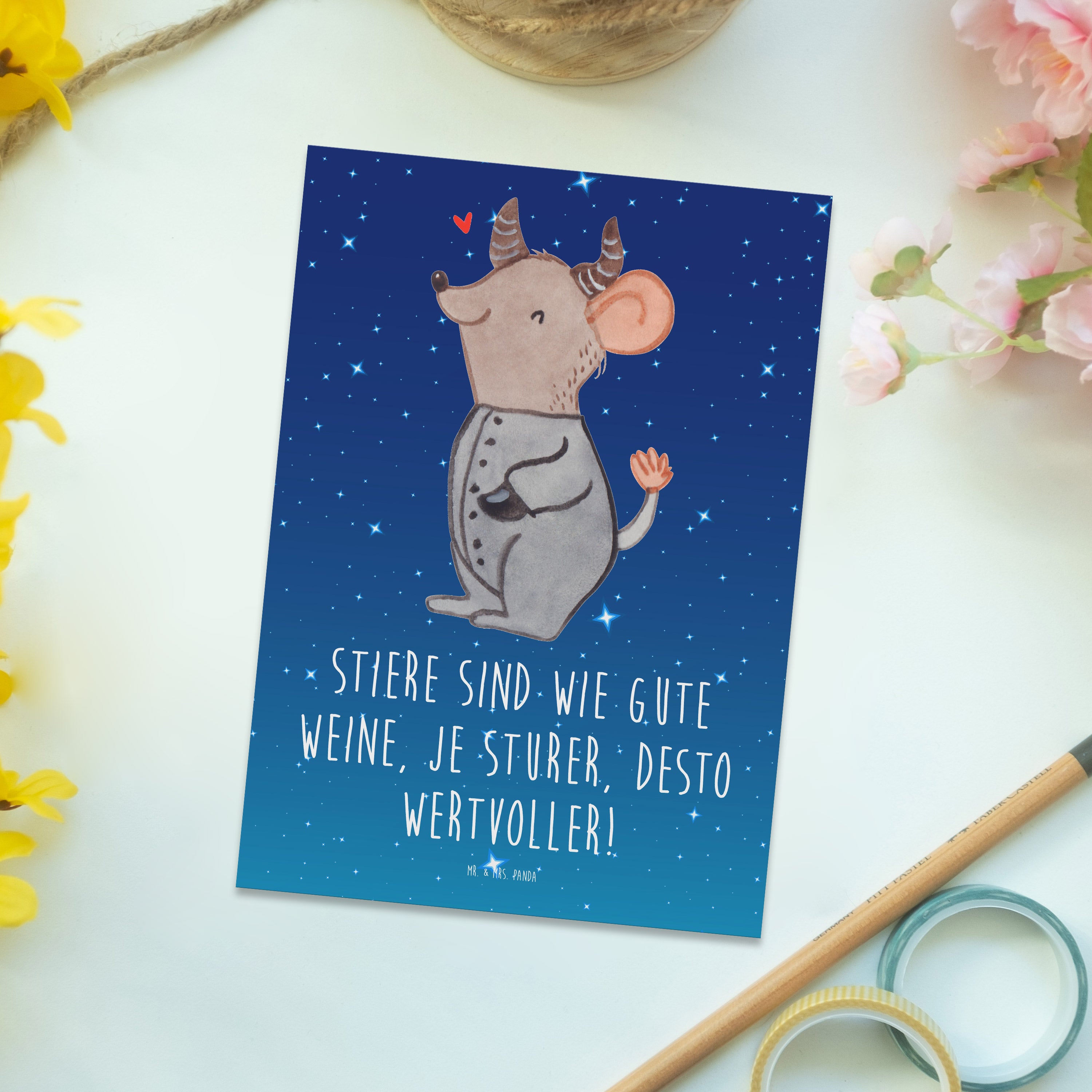 Postkarte Sturer Stier - Sternenhimmel Blau