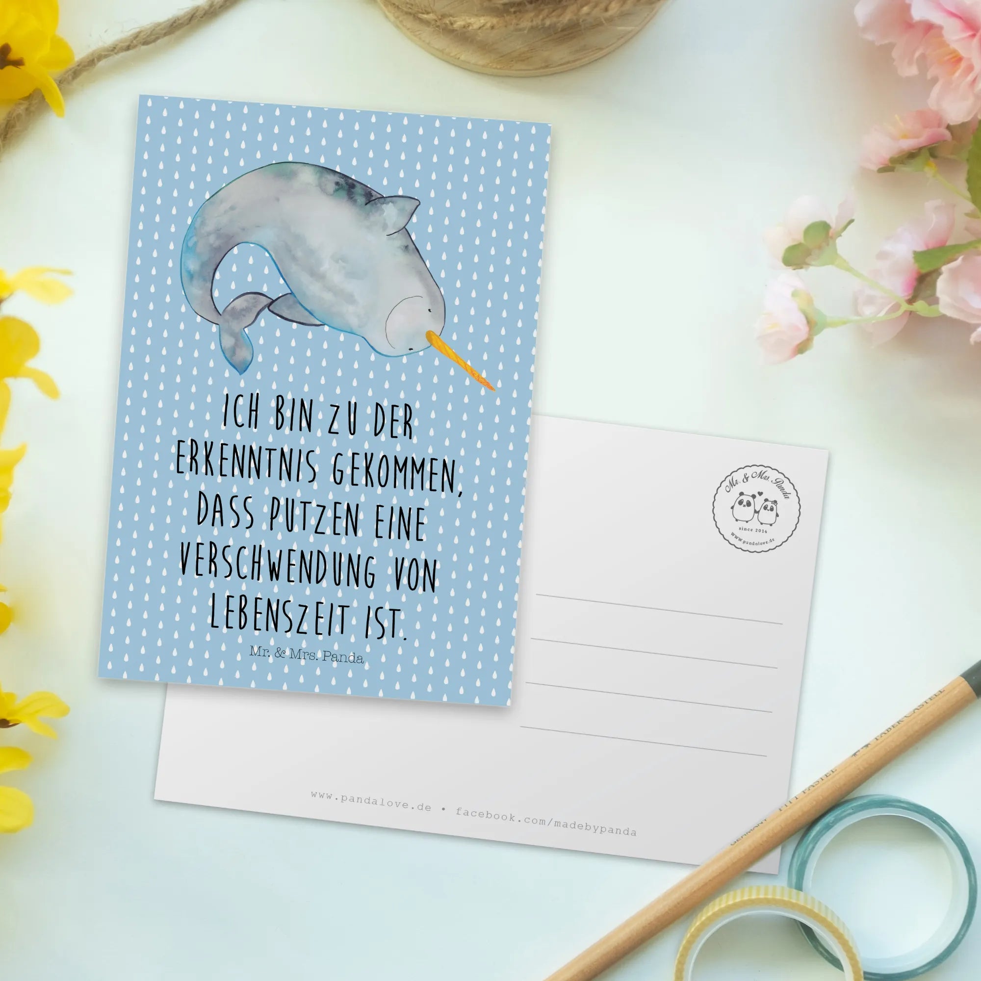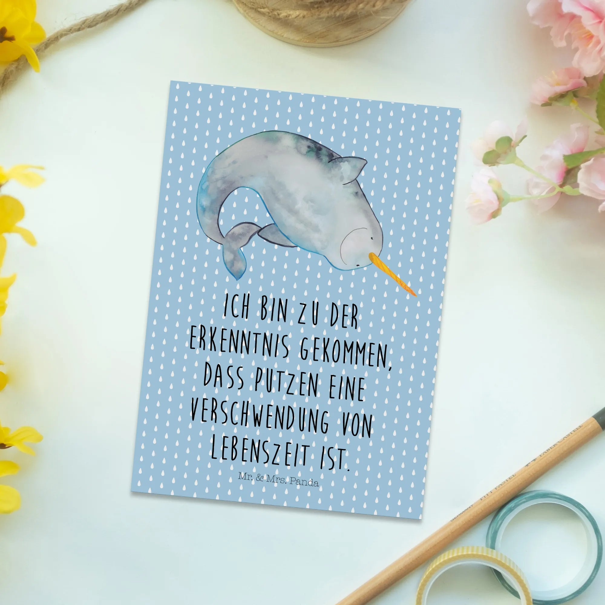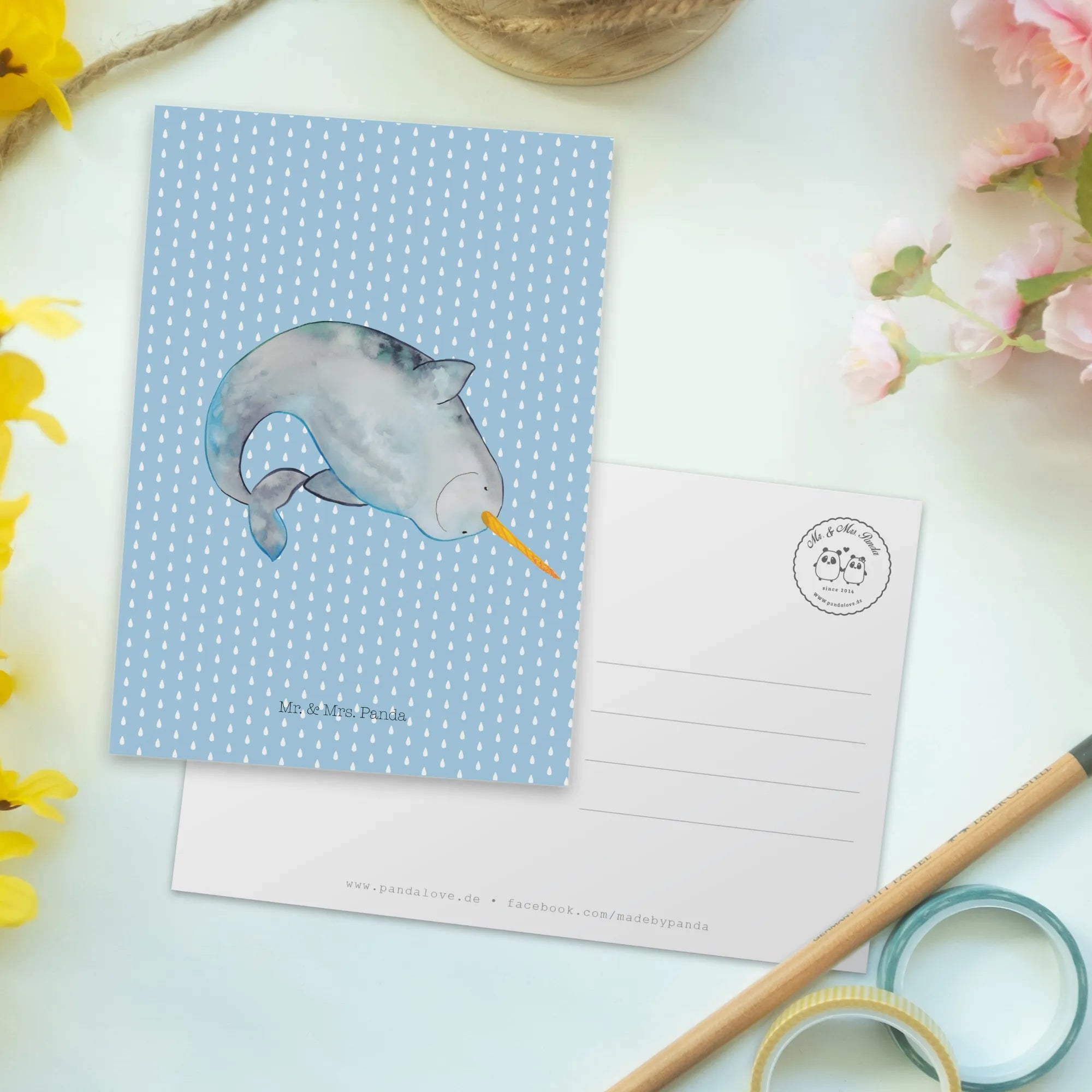 Pocztówka Narwal - z napisem - Pastelowy niebieski