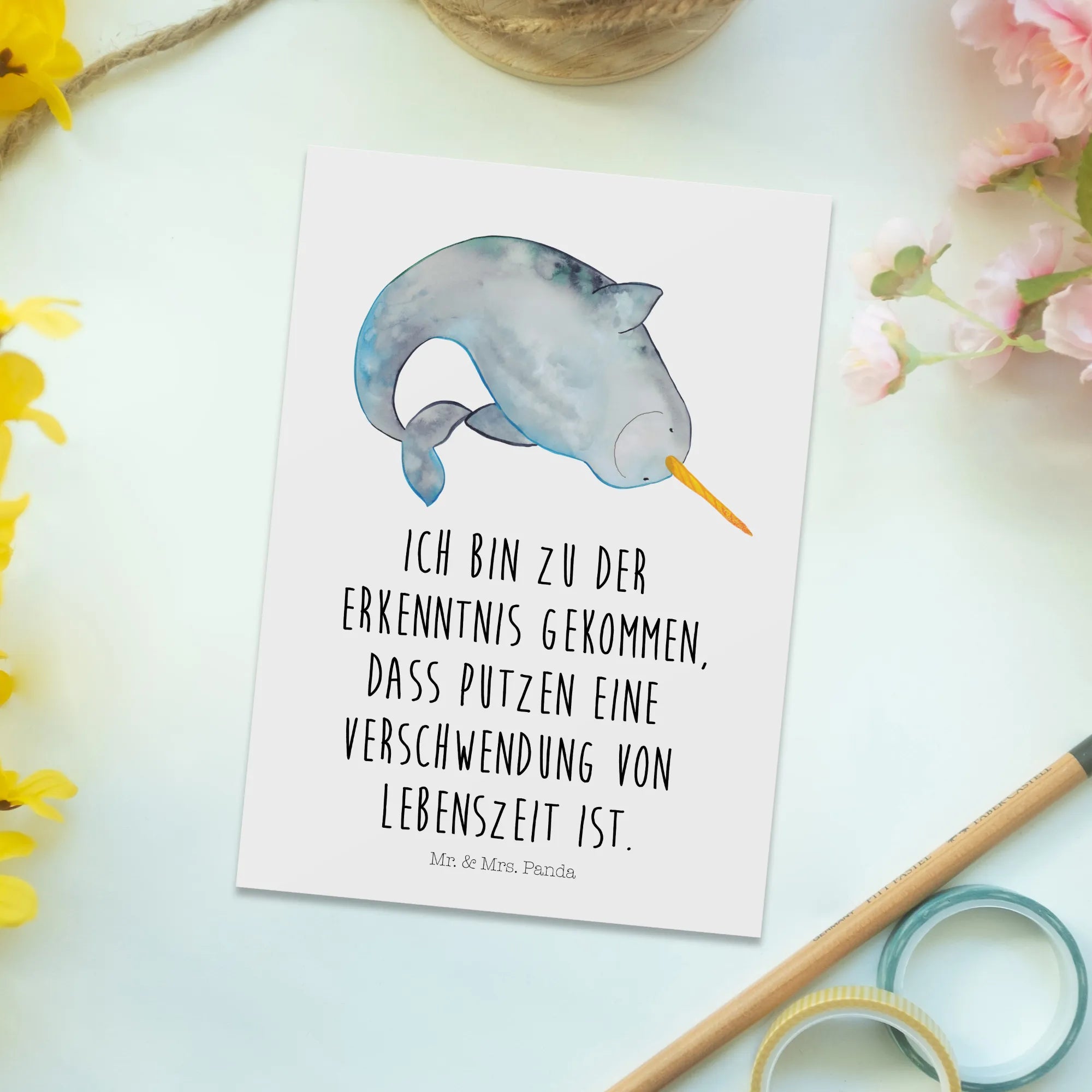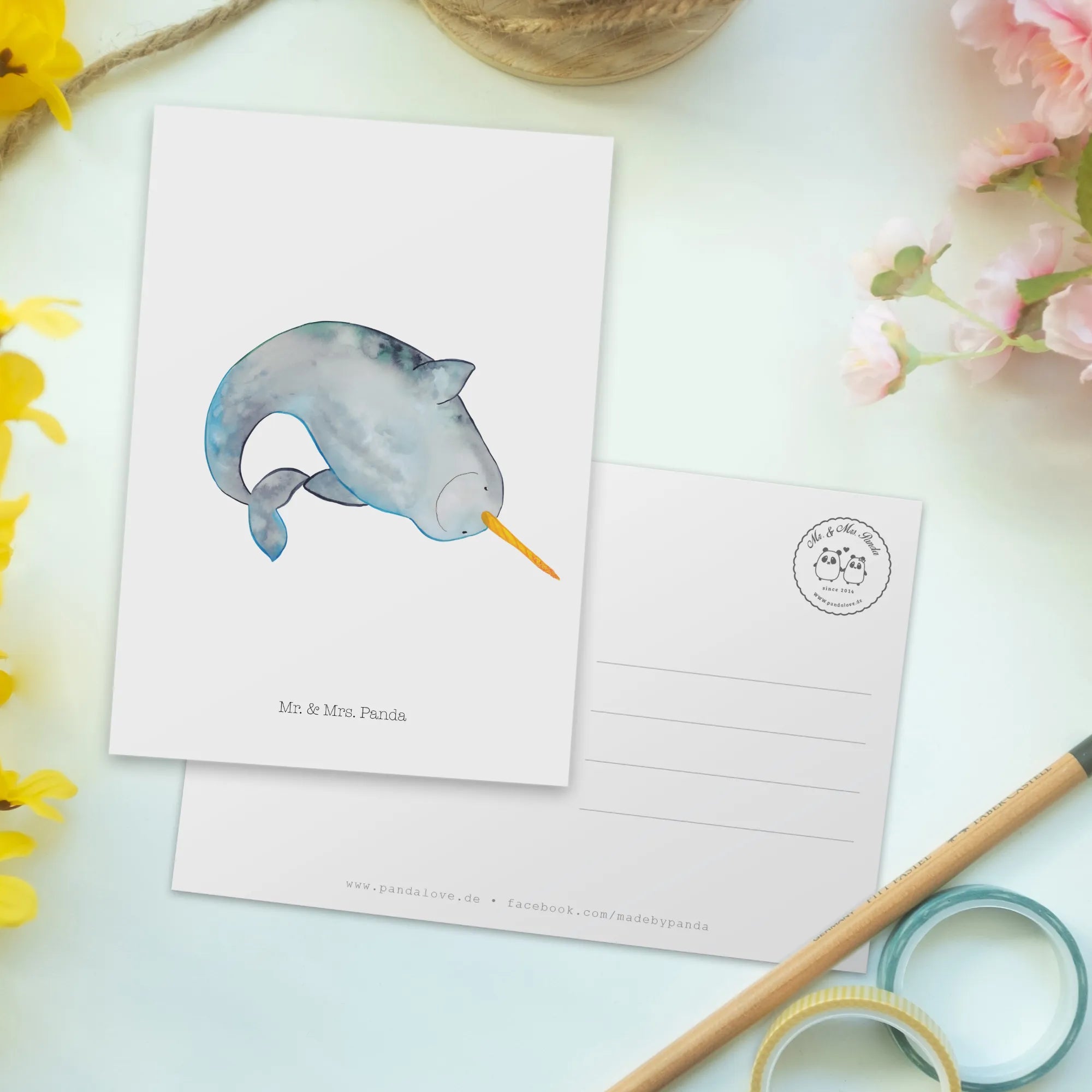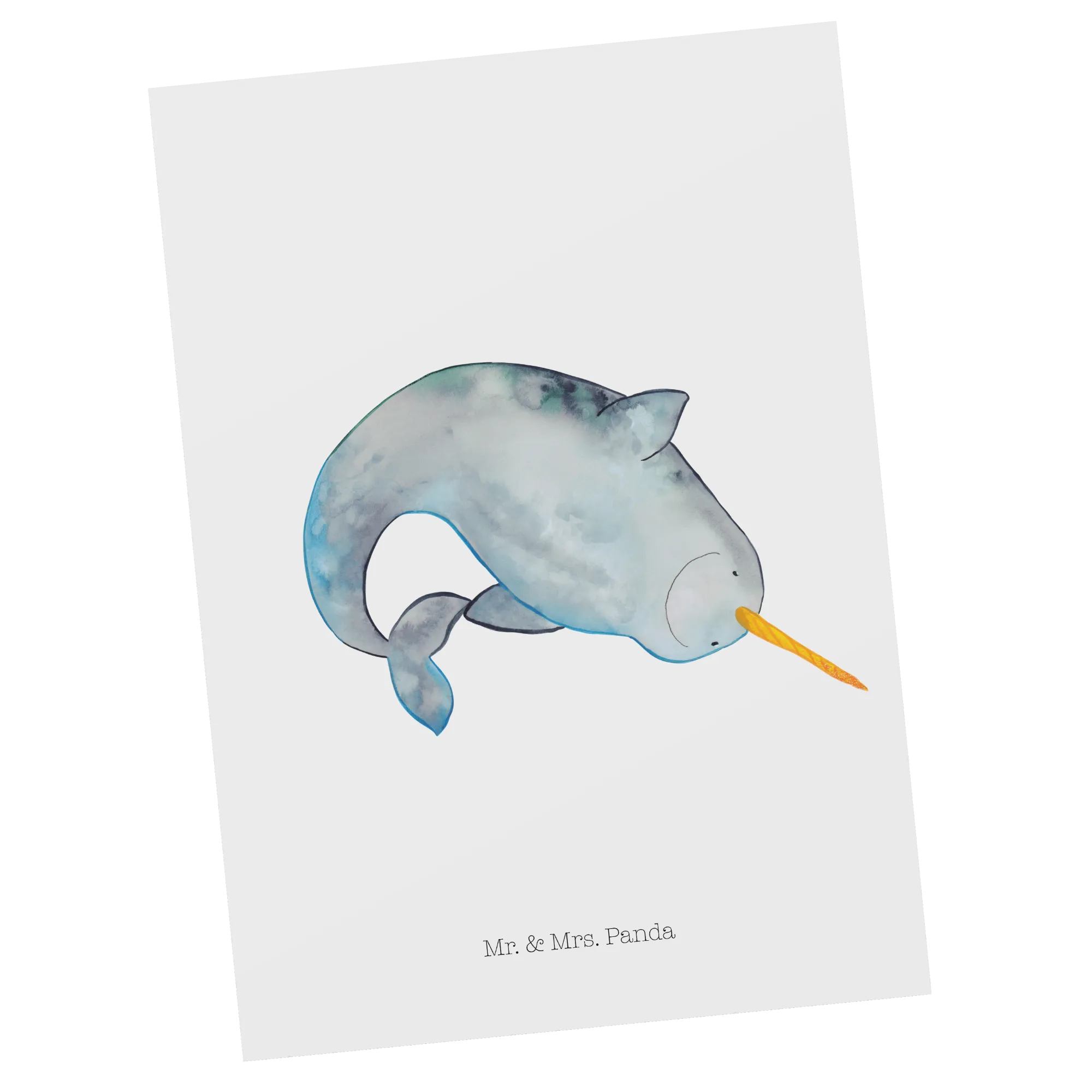 Pocztówka Narwal - z napisem - Pastelowy niebieski