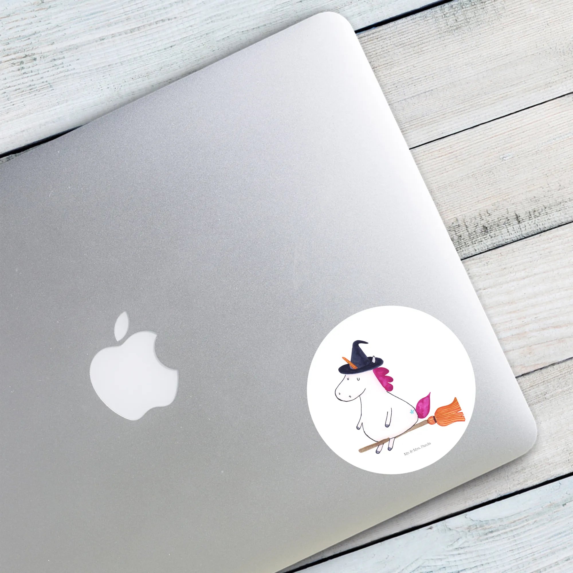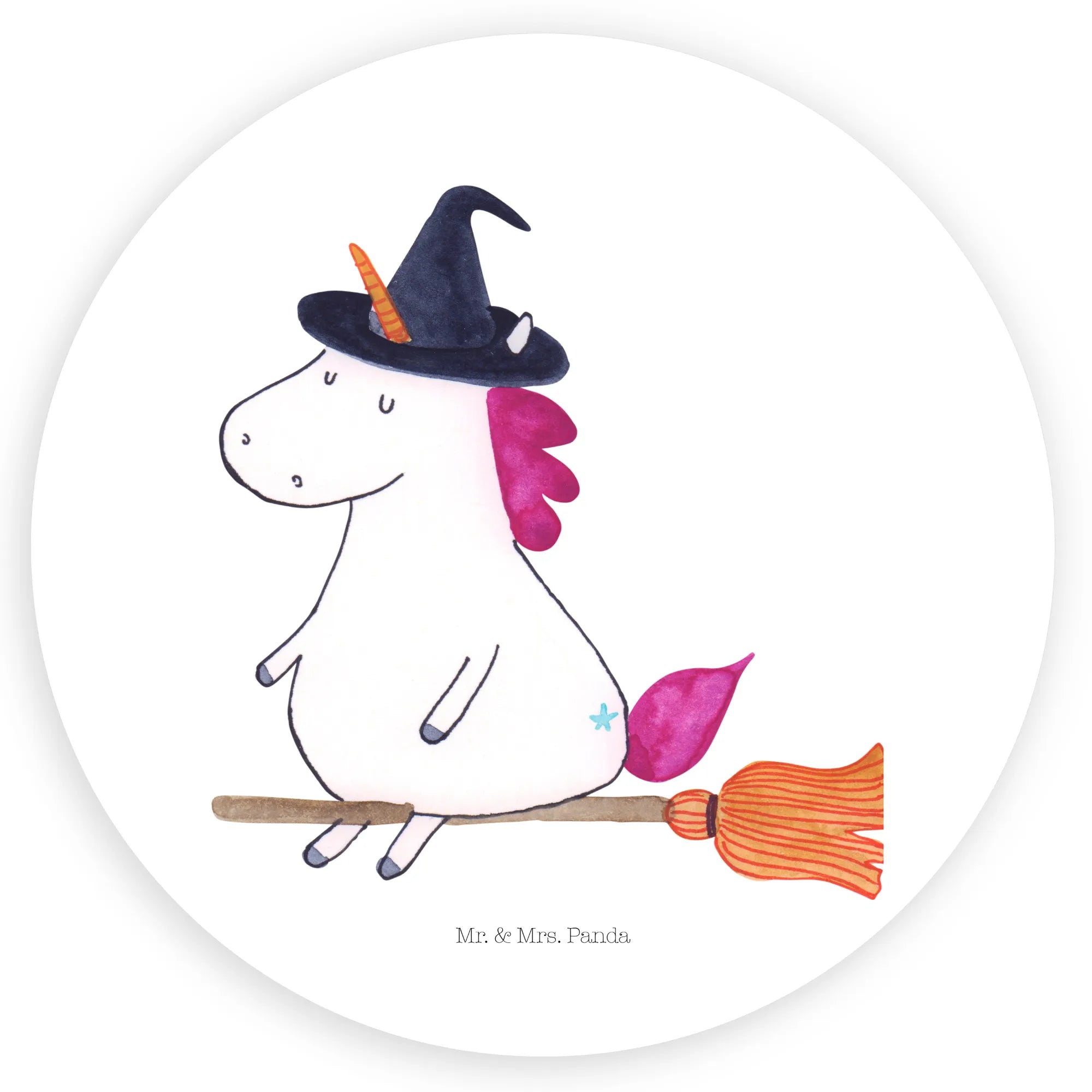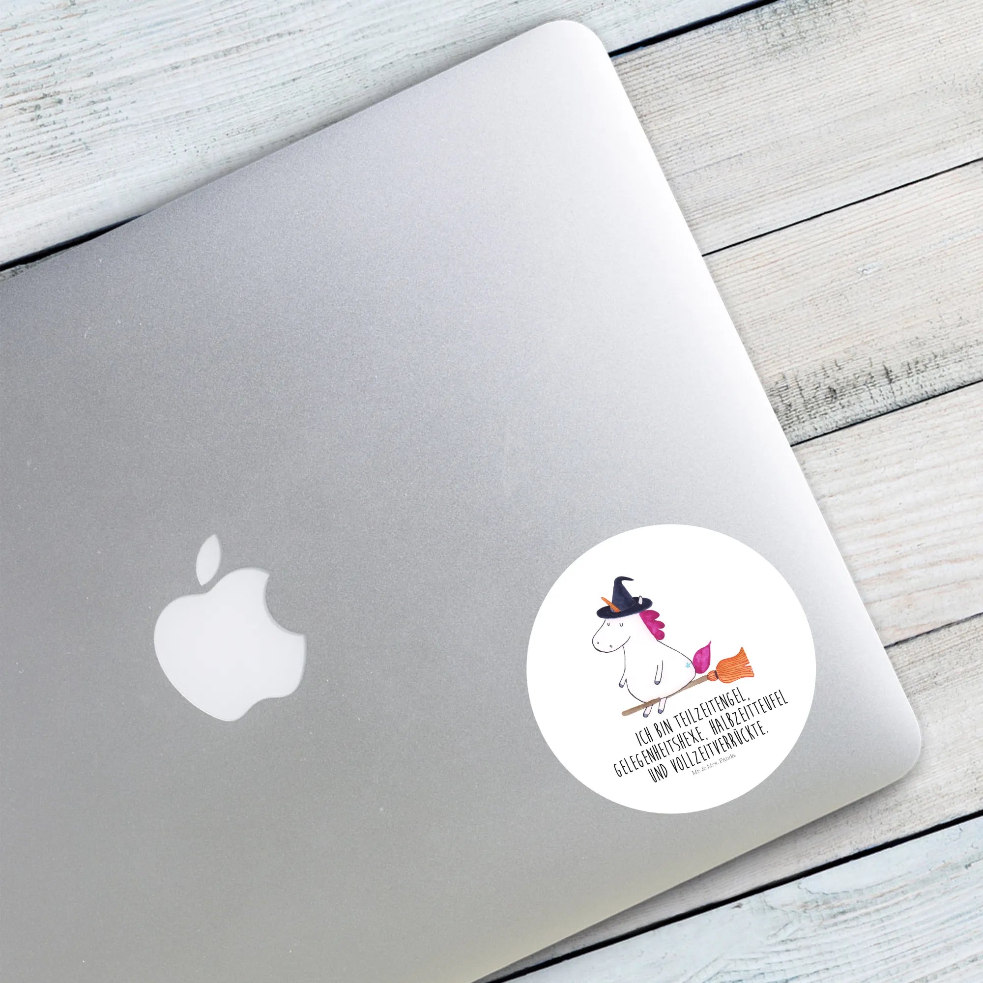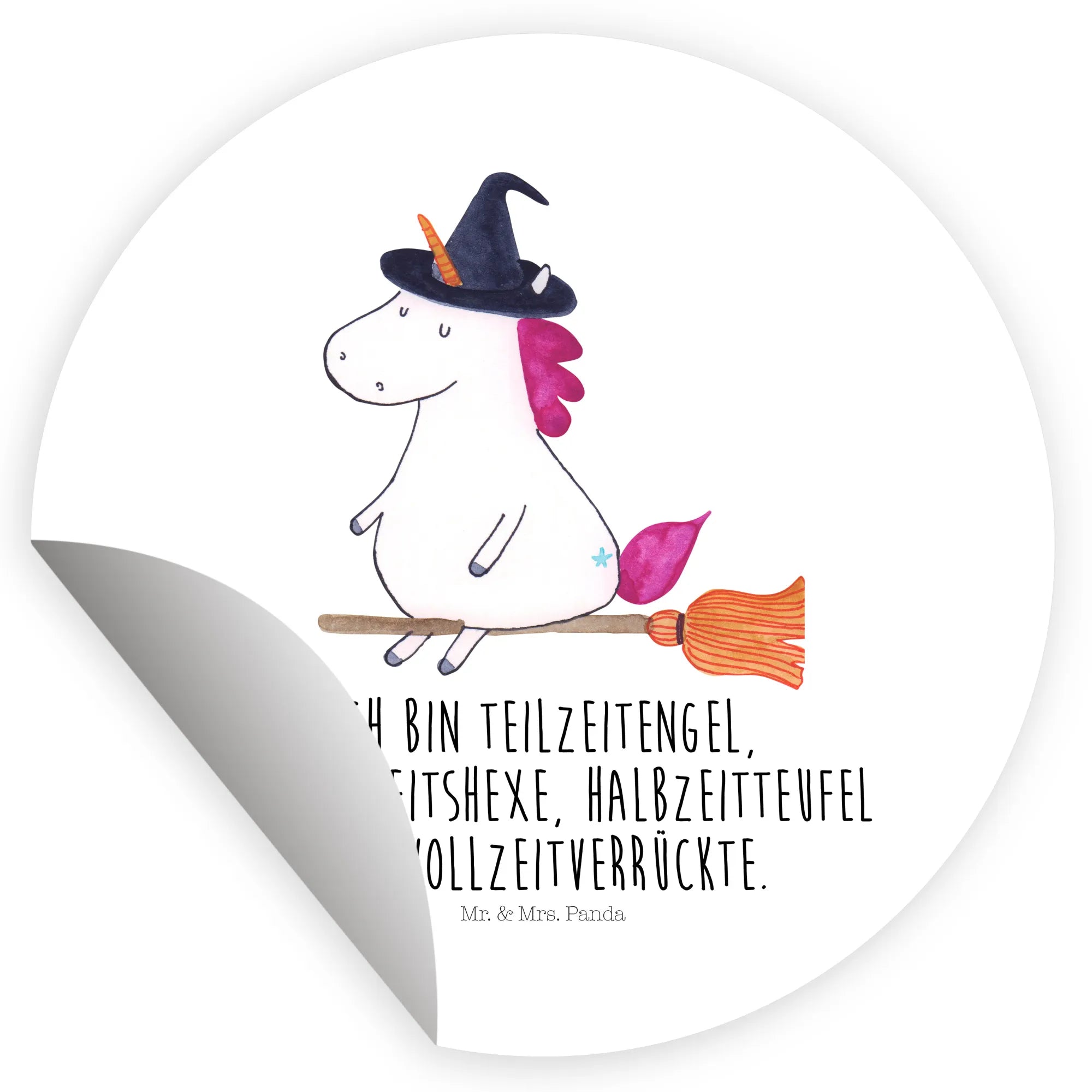 120mm okrągła naklejka jednorożec Czarownica - 80mm Rund Aufkleber - z napisem