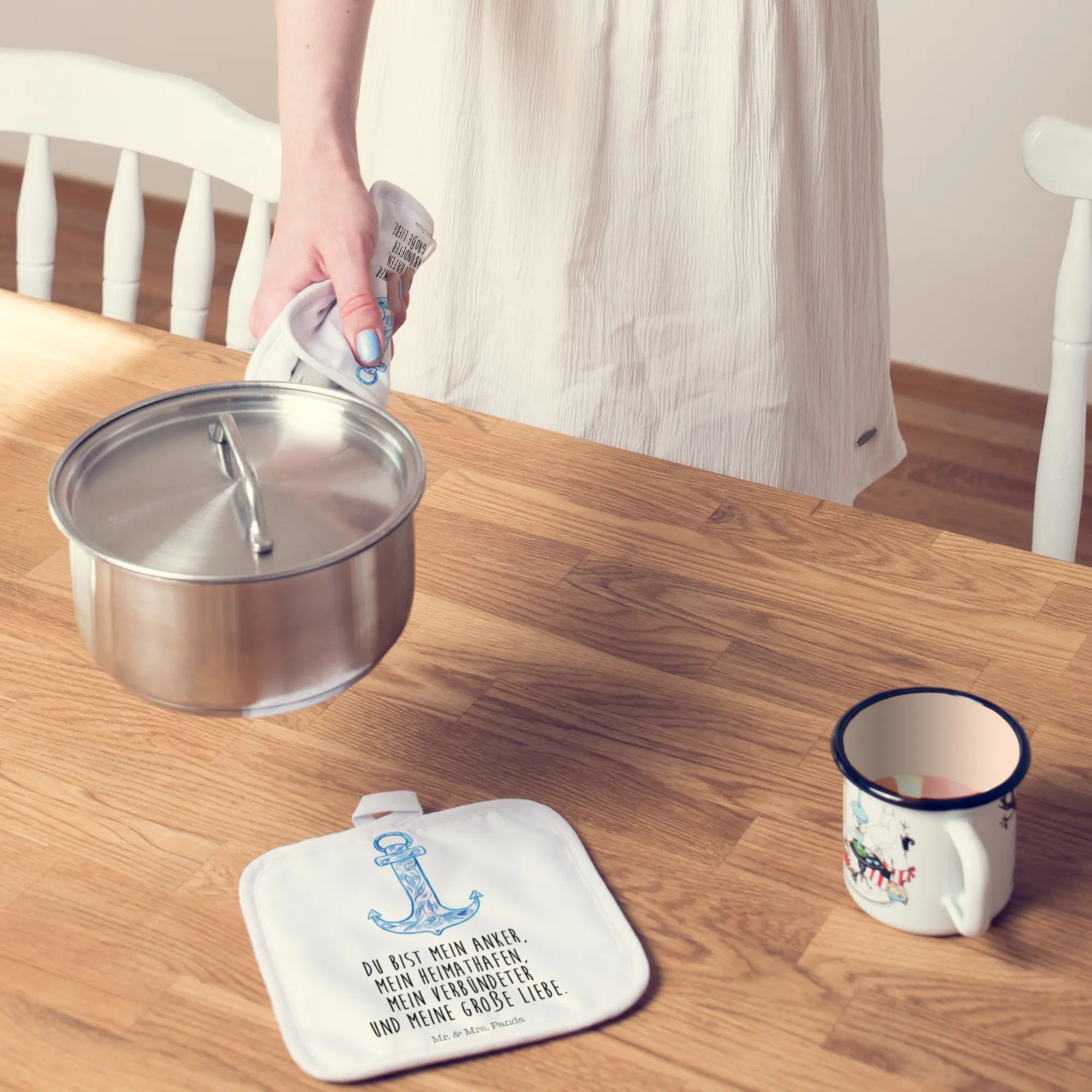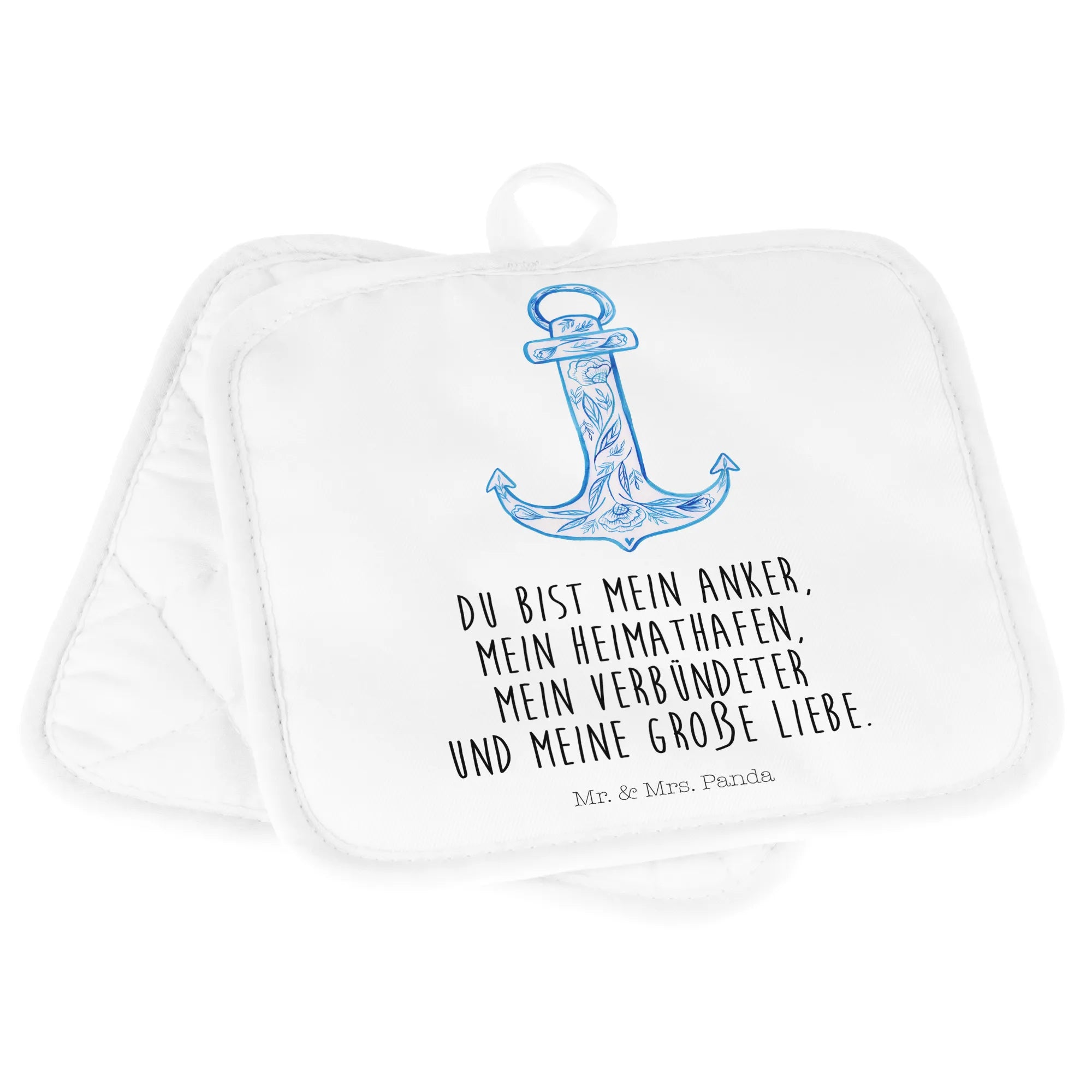 2-elementowy zestaw podkładek pod garnki kotwica Niebieski - z napisem - biały