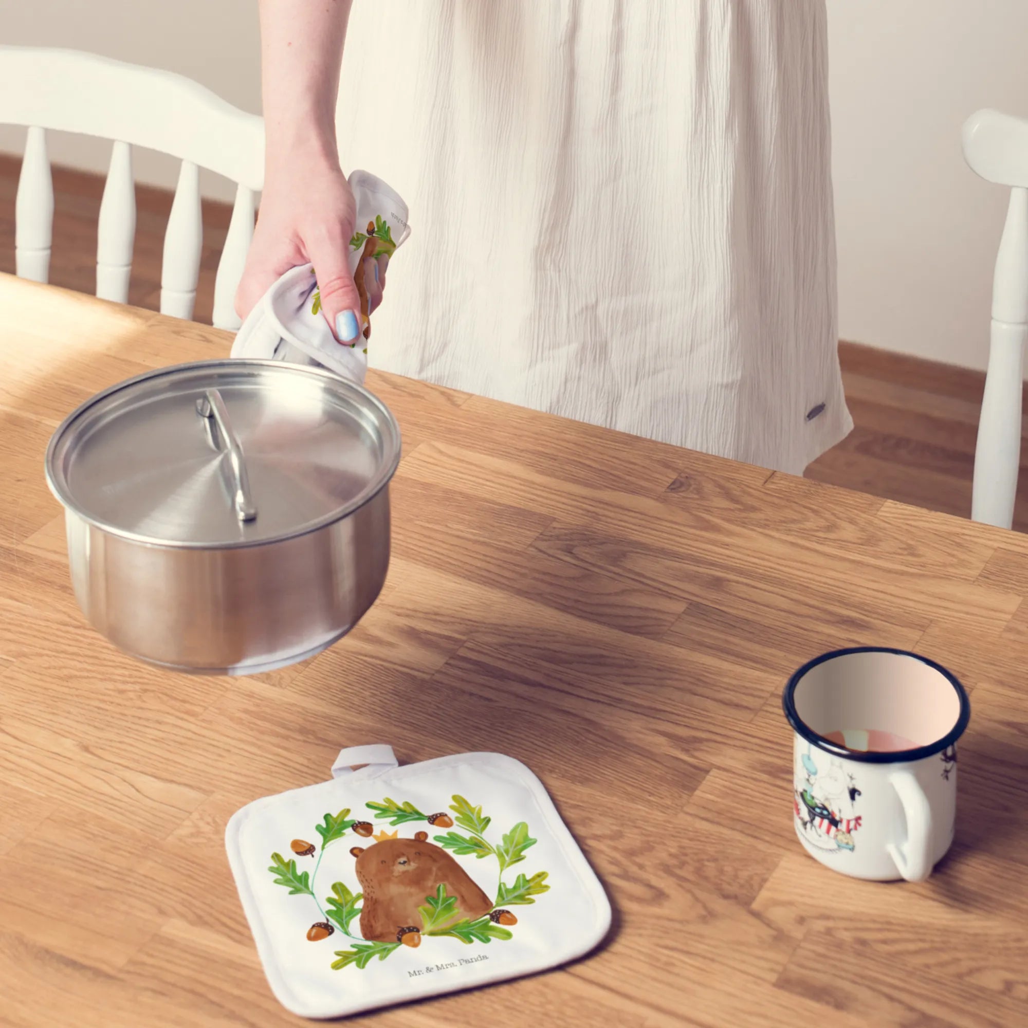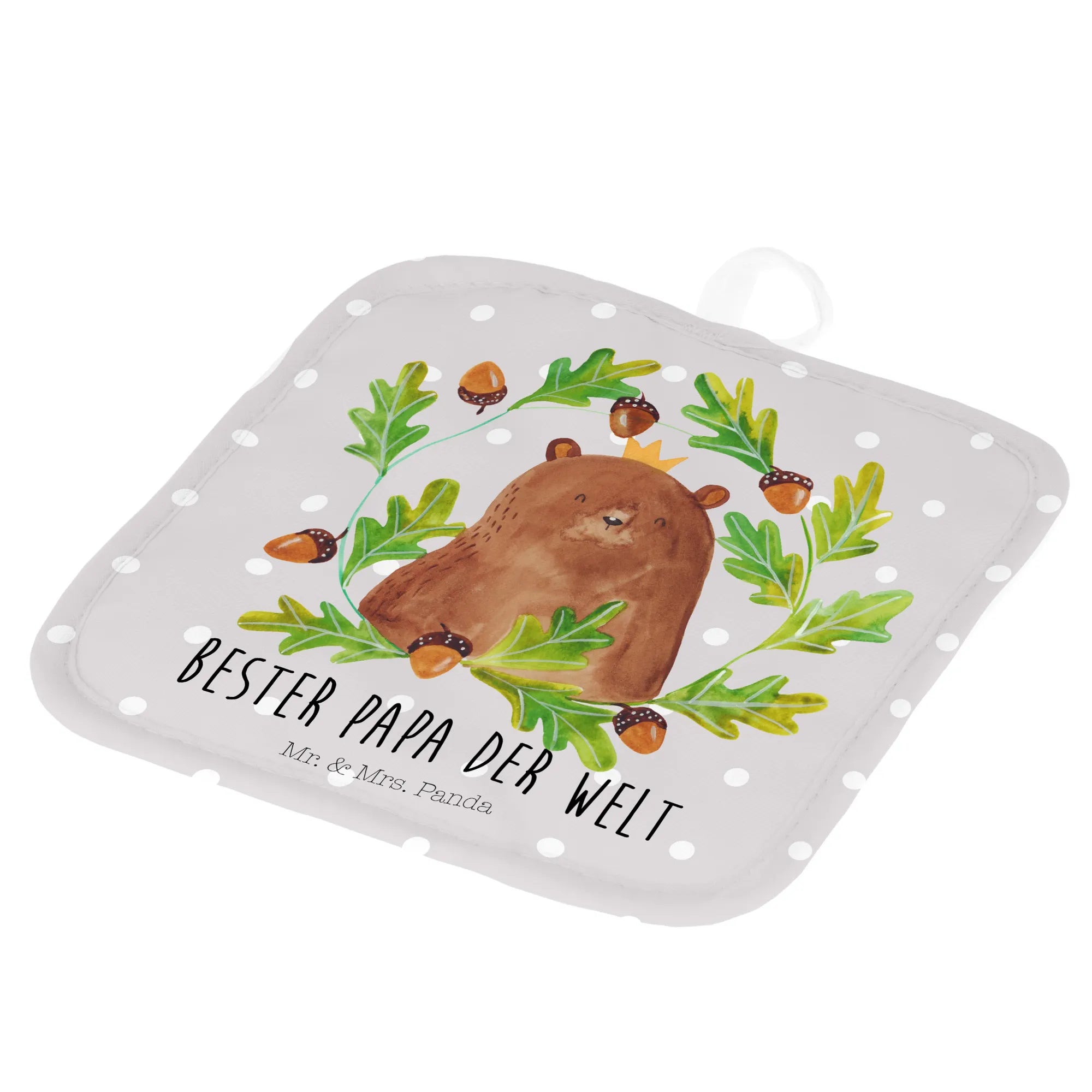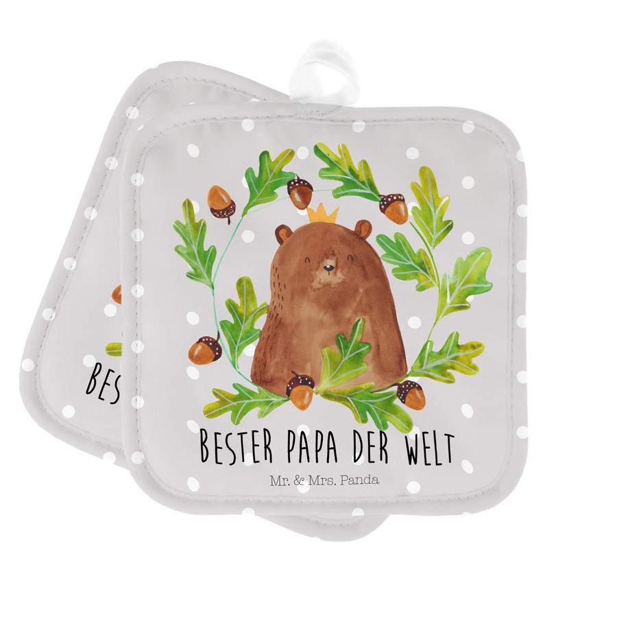 2-elementowy zestaw podkładek pod garnki Niedźwiedź król - z napisem - Pastelowy szary